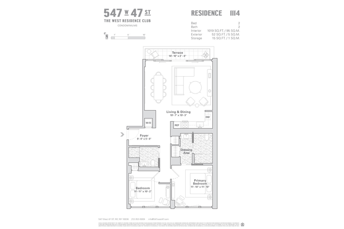 The West Residence Club welcomes you with a beautifully landscaped garden entrance and a 24-hour attended lobby. Residents enjoy over 30,000 square feet of premium amenities at 547 West 47th Street, including a glass-enclosed library with a fireplace, a comfortable lounge, and dedicated co-working spaces. The state-of-the-art indoor/outdoor fitness center-complete with a yoga studio-was curated by The Wright Fit to provide an inspiring environment for wellness. At the rooftop Pool Club, take in sweeping views of the Hudson River and Midtown skyline from the swimming pool, sundeck, outdoor kitchens, dining areas, and lounge spaces.