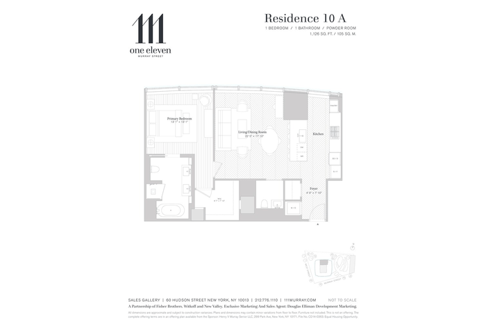 A world-class condominium tower located in Tribeca and developed by a partnership of Fisher Brothers, Witkoff, and New Valley, 111 Murray Street soars some 800 feet, offering 157 residences ranging from one-bedrooms to full-floor penthouses. 111 Murray Street is a collaboration between some of the best and brightest minds in architecture and design, with architecture by Kohn Pedersen Fox, residence interiors by David Mann, amenities and public spaces by David Rockwell, and landscape architecture by Edmund Hollander. Over 20,000 square feet of private indoor and outdoor spaces include two levels of state-of-the-art amenities including 2 pools and 3,000 sf fitness center, saunas and treatment rooms as well as stunning landscaped gardens, seamlessly integrating the interiors and the outdoors.