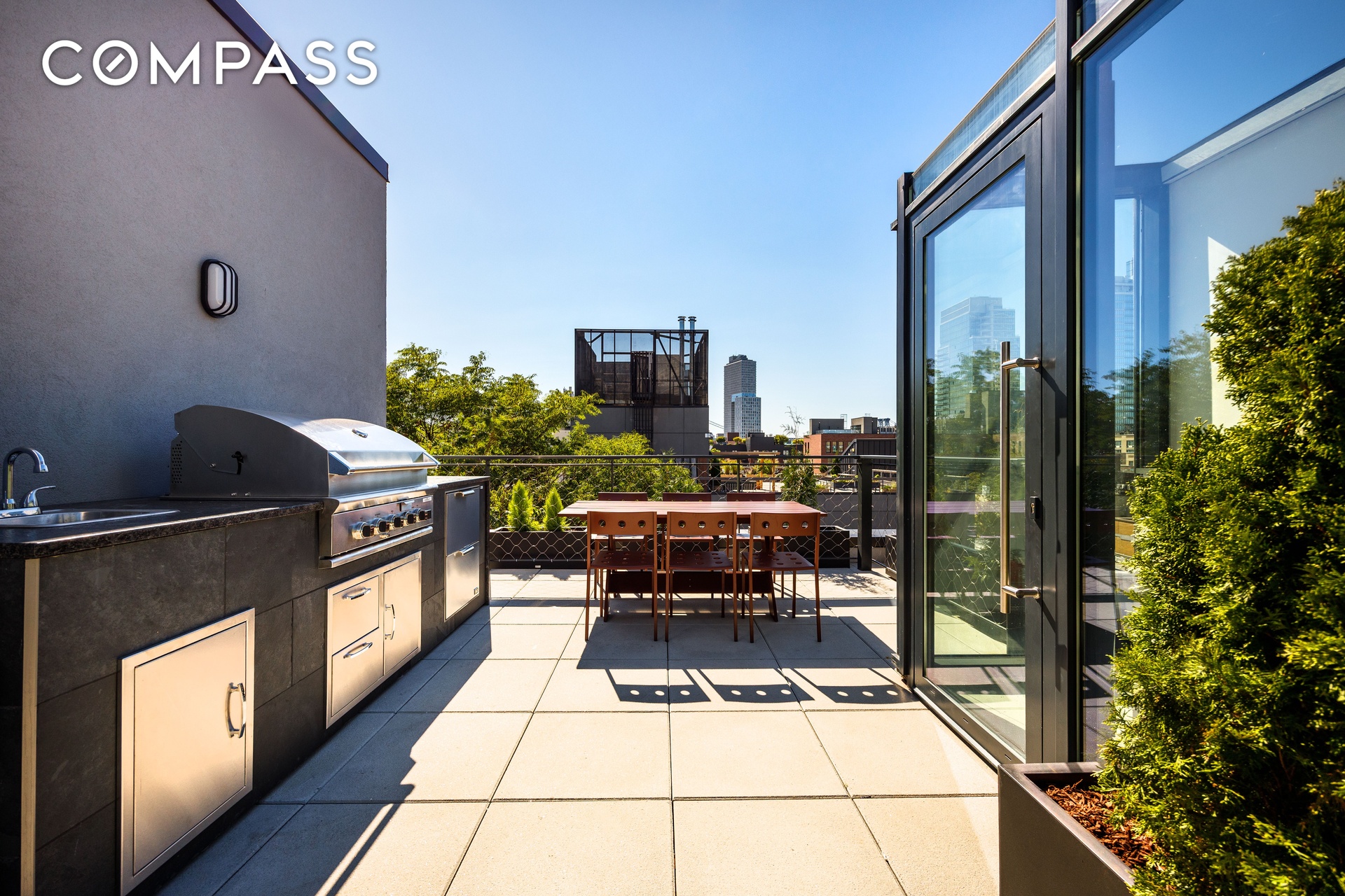 Above it all, a 665-square-foot private rooftop terrace offers sweeping skyline and river views. Landscaped planters frame multiple lounge areas, while a built-in outdoor kitchen equipped with DCS 36” grill and two-drawer refrigerator, makes it ideal for entertaining under the stars or enjoying quiet afternoons in the sun.