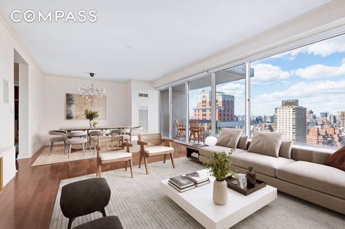 Welcome to 200 East 69th Street 29B, an expansive corner three bedroom, three bathroom residence perched high above the Upper East Side, offering sweeping panoramic views and refined modern living ...