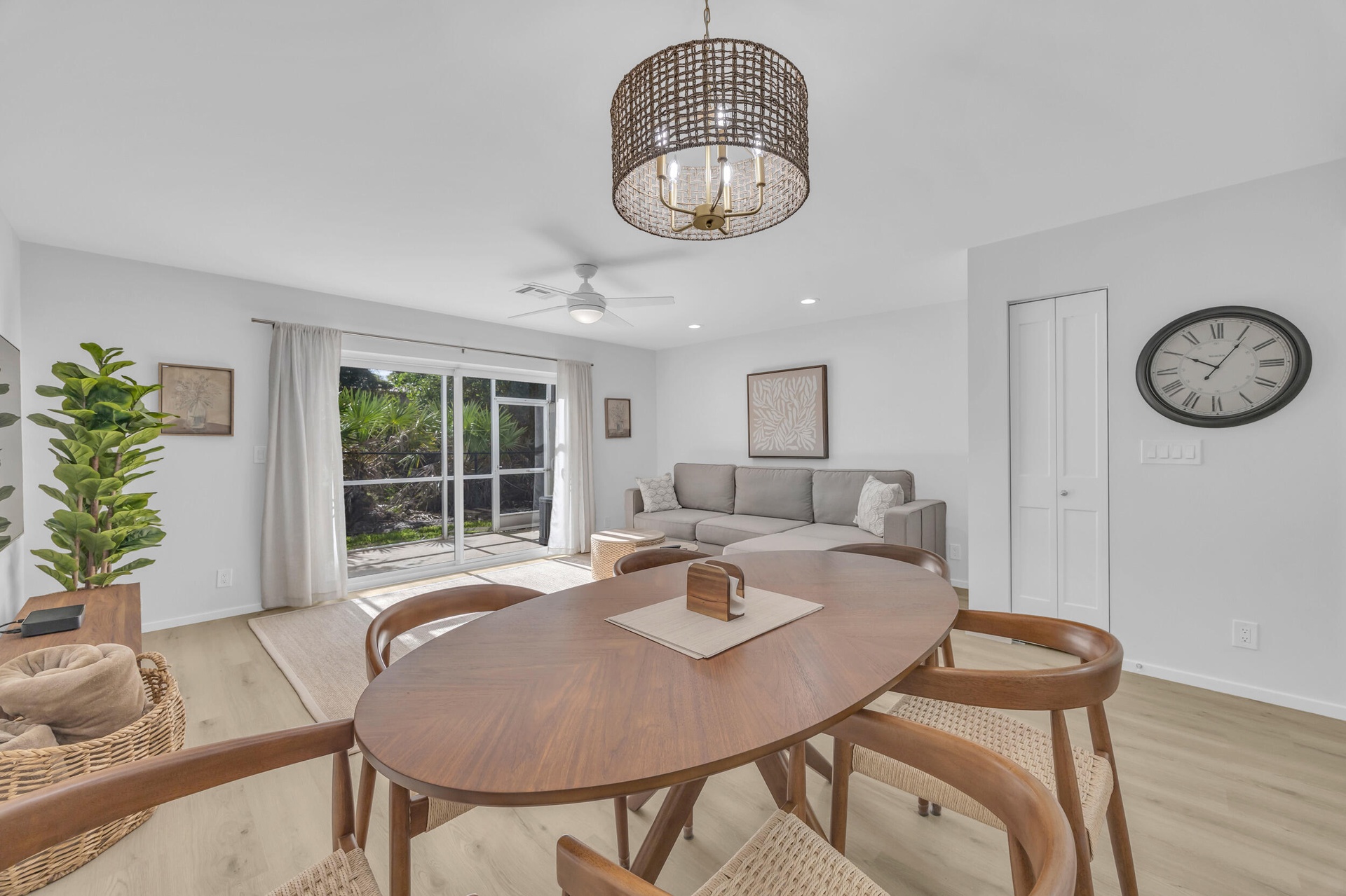 Welcome to 107 Wooden Mill Terrace, a beautifully reimagined two bedroom, two and a half bathroom townhome in the heart of Jupiter. Taken down to the studs and rebuilt with a Scandinavian-inspired contemporary aesthetic, this residence offers clean lines, timeless finishes and worry-free living with all-new systems and upgrades.Step inside and be greeted by fresh Benjamin Moore paint, luxury vinyl plank flooring and a bright open layout. The custom kitchen is a true showpiece featuring flat-panel cabinetry with birch interiors, Blum hardware and Hettich drawer slides. The sleek Lioher Cava-style doors are complemented by striking Carrara quartz countertops with elegant brown veining and brand new stainless steel appliances.