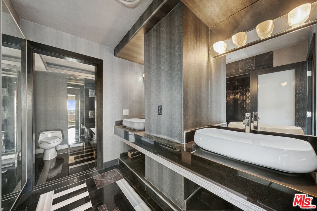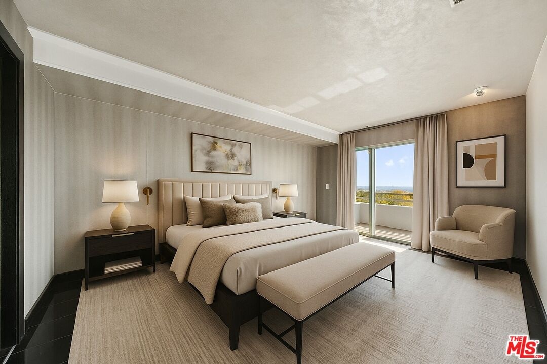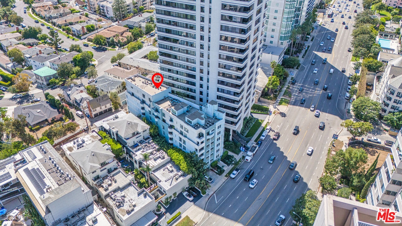 Exclusive Penthouse Living on the Wilshire Corridor - Step into a penthouse as distinctive as you are a modern retreat perched high above the city, offering striking style and undeniable presence. The boutique Beverly Westwood Building welcomes you with its signature blue faade, lush greenery, and private, secure entrance, setting the tone for an intimate living experience. Inside, this top-floor residence blends bold design with effortless comfort. Dramatic high ceilings with geometric detailing draw the eye upward, while walls of floor-to-ceiling glass flood the space with natural light and showcase captivating city views.Glossy black tile floors with sleek white inlays add a touch of modern glamour, setting the stage for both lively gatherings and quiet evenings at home. The open living and dining areas flow seamlessly into a chef-inspired kitchen, perfect for everything from intimate dinners to grand entertaining.Encompassing 1,573 square feet, this rare 3-bedroom, 3-bathroom penthouse offers a lifestyle of privacy and sophistication. The primary suite serves as a serene escape with custom closets and a spa-like ensuite bath. Two additional bedrooms offer flexibility for welcoming guests, working from home, or creating a personal wellness space.Perfectly positioned along the prestigious Wilshire Corridor, this exclusive residence places you minutes from Beverly Hills, Westwood Village, and UCLA. Enjoy secure building access, two dedicated parking spaces, and the prestige of owning one of Los Angeles' most coveted addresses.