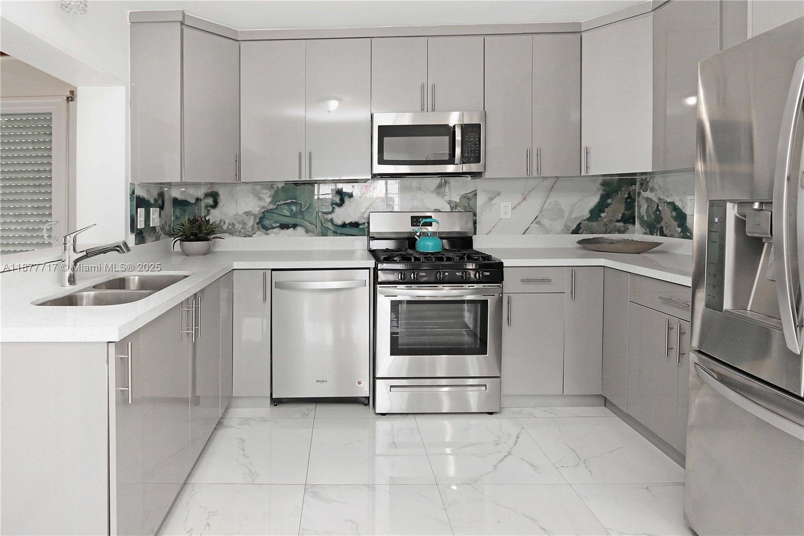 Charming and versatile 3-bedroom, 2-bath home on a flexible layout with guest quarters or easy single-family use. Additional den for work or relaxation. New roof and A/C. Beautifully updated kitchen with quartz countertops, grey cabinetry, stainless steel appliances, and gas stove. Porcelain tile throughout, with wood-look porcelain in the living areas. Bathrooms finished with porcelain walls and walk-in shower. Alley-access parking for four cars, two-car carport, circular driveway, and fenced backyard with space for a pool. Well-maintained property offering style, comfort, and potential.
