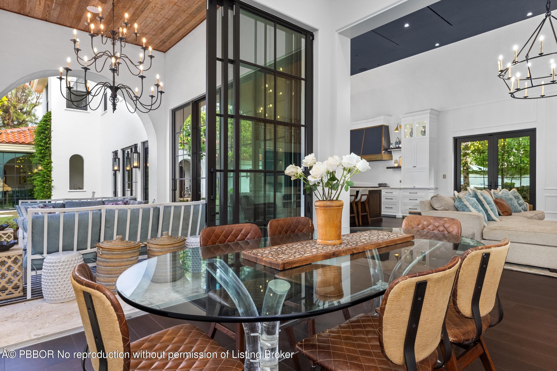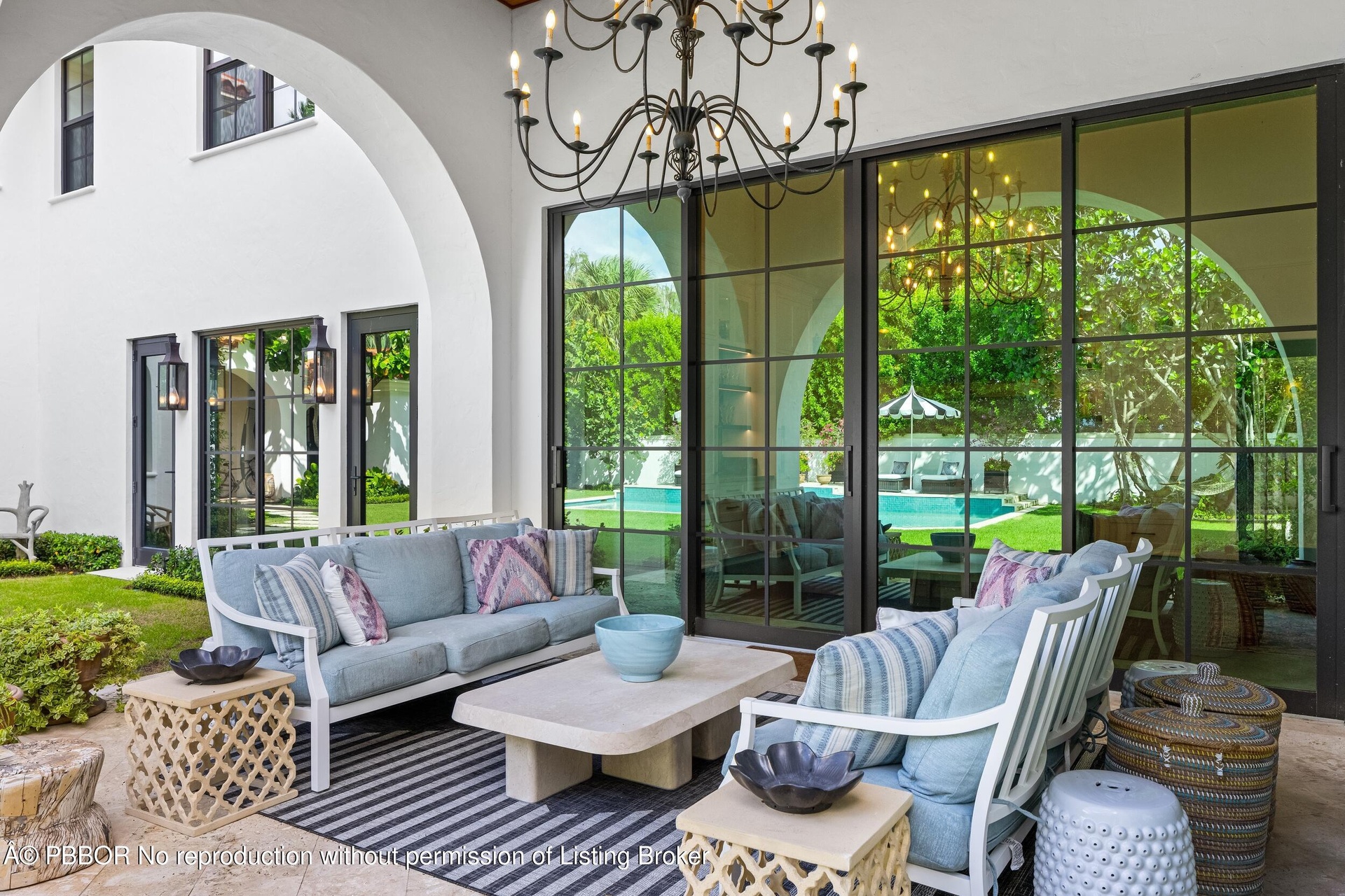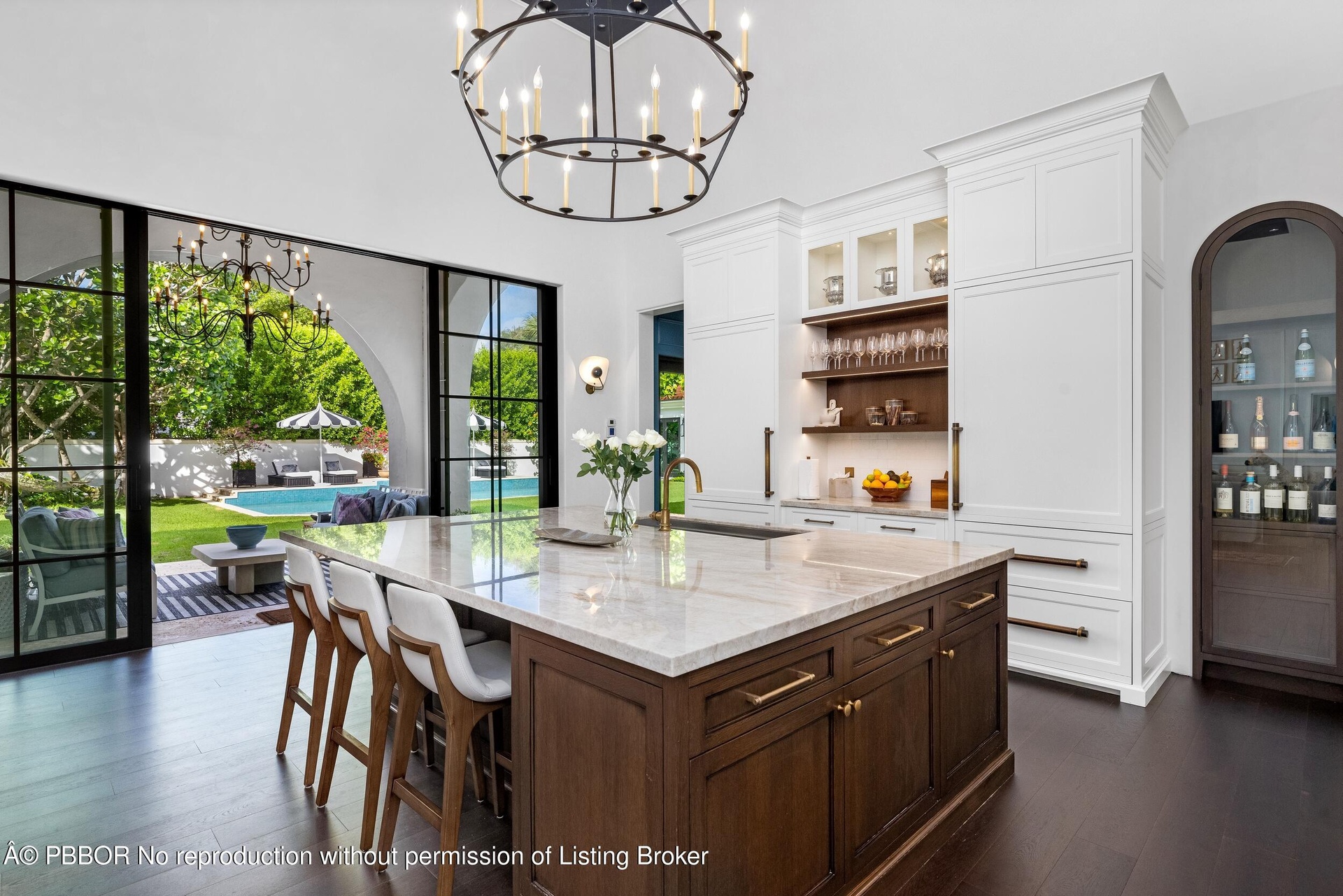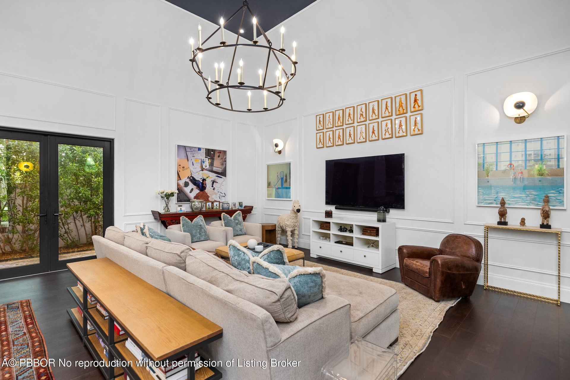 Completely reimagined 6BR/7.1BA estate with beautiful designer finishes throughout. This stunning Courtyard home is located on the highly desirable Wells Road on the Sunny South Side of the street offering an abundance of natural light. Situated on an oversized lot, the home was beautifully renovated in 2024. The welcoming front entry opens to a breathtaking and serene courtyard that feels like your own private oasis complete with beautiful, updated landscaping, covered dining loggia, and large swimming pool. Charming stone path leads to the inviting entry foyer with marble slab flooring. The interiors feature soaring 15' ceilings in most rooms, stunning flooring, and Crestron lighting and sound systems. Elegant formal dining room with built in buffet and China cabinets and gorgeous herringbone wood floors. Gourmet kitchen with top-of-the-line appliances including Blue Star 60'' range with French top, dual Miele dishwashers, and Sub Zero refrigerator, freezer, and refrigerator drawers. Leeds cabinets, custom hardware, and temperature-controlled wine display. Oversized chef's island features sink with Waterworks faucet and seating for four. Fantastic open floor plan, perfect for entertaining, with the kitchen open to the family room and breakfast area. Spacious primary suite with striking detailing, two large walk-in closets, stunning dual bathrooms, and private patio. Additional guest suites with en-suite bathrooms. Fabulous office/additional guest suite. The custom Leeds bathrooms also feature Paris Ceramic and Waterworks tile and hardware. Second floor addition features convenient separate entry, guest suite, and large gym with sauna. Fabulous pool cabana with full bath and kitchenette complete with Sub Zero beverage center and Miele dishwasher and ice maker. Additional highlights include full house generator, newly installed irrigation system, and so much more.