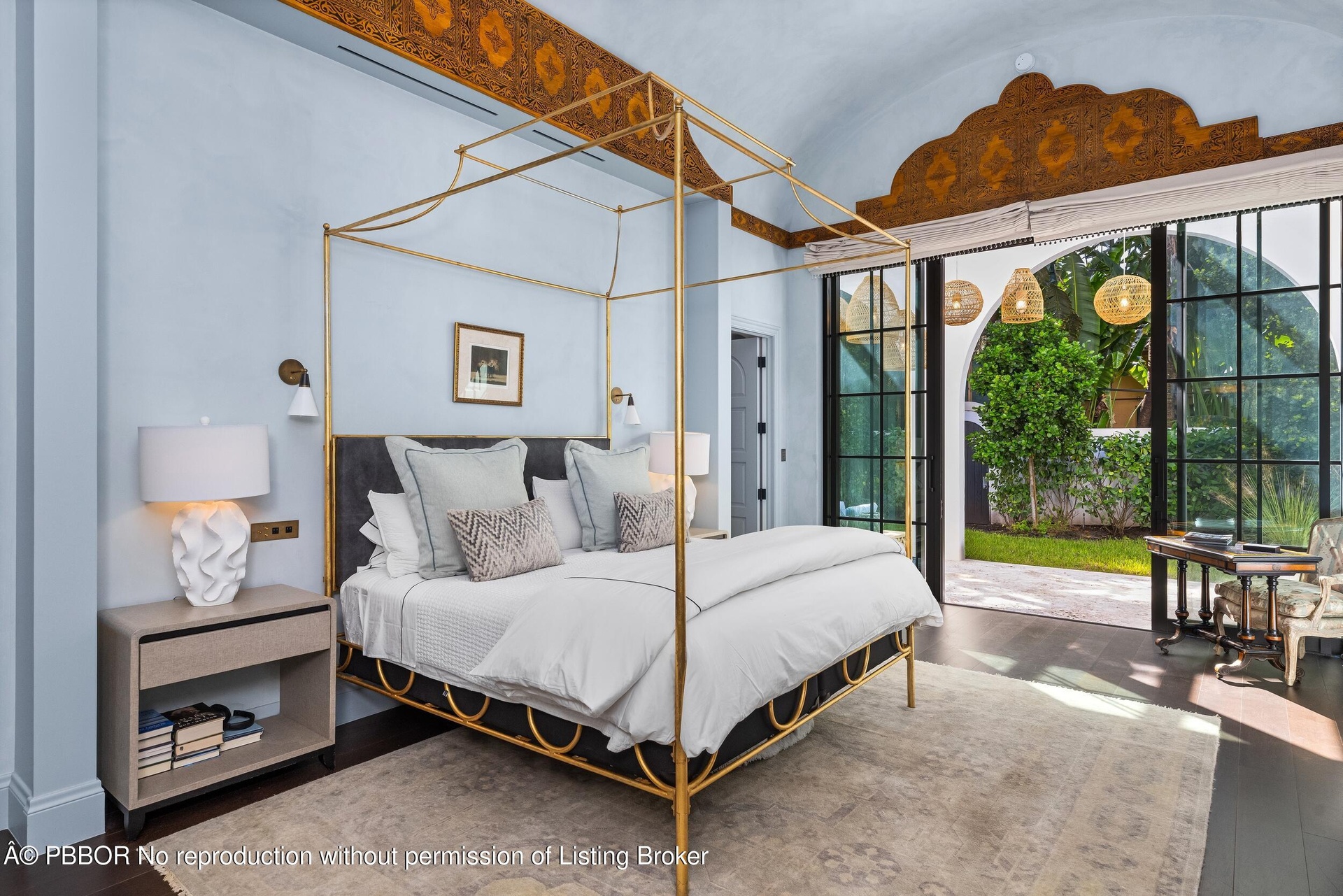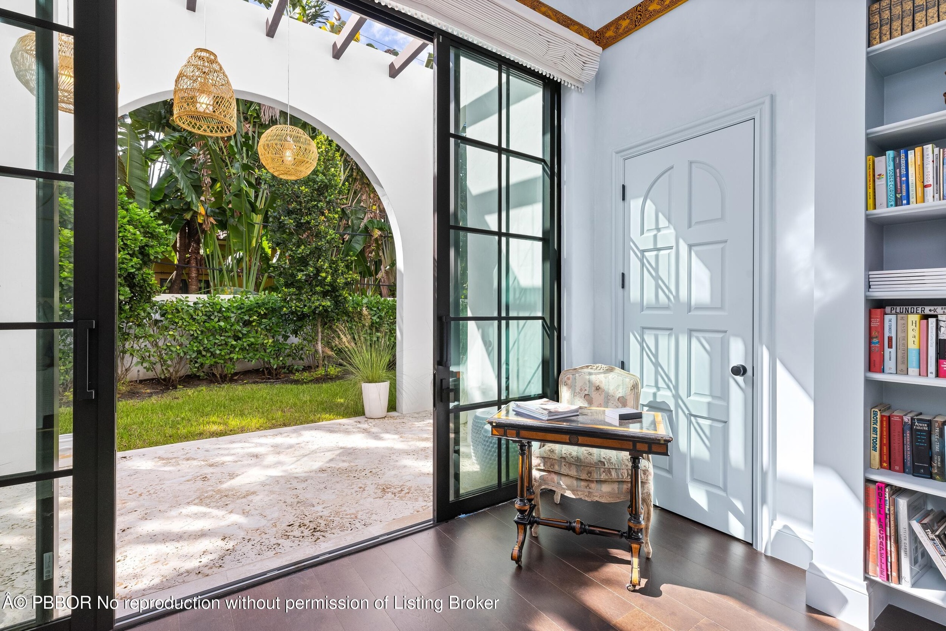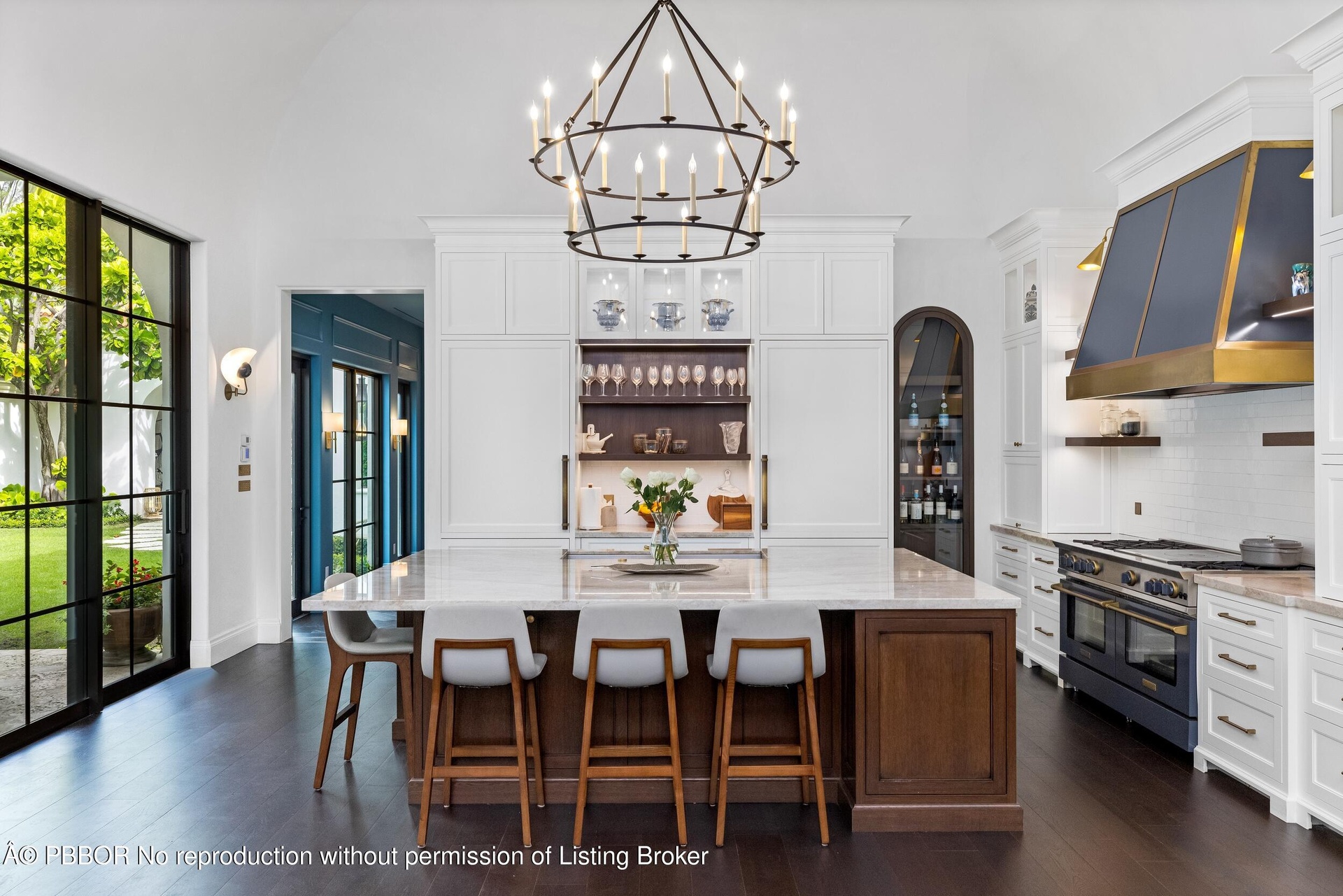 Completely reimagined 6BR/7.1BA estate with beautiful designer finishes throughout. This stunning Courtyard home is located on the highly desirable Wells Road on the Sunny South Side of the street offering an abundance of natural light. Situated on an oversized lot, the home was beautifully renovated in 2024. The welcoming front entry opens to a breathtaking and serene courtyard that feels like your own private oasis complete with beautiful, updated landscaping, covered dining loggia, and large swimming pool. Charming stone path leads to the inviting entry foyer with marble slab flooring. The interiors feature soaring 15' ceilings in most rooms, stunning flooring, and Crestron lighting and sound systems. Elegant formal dining room with built in buffet and China cabinets and gorgeous herringbone wood floors. Gourmet kitchen with top-of-the-line appliances including Blue Star 60'' range with French top, dual Miele dishwashers, and Sub Zero refrigerator, freezer, and refrigerator drawers. Leeds cabinets, custom hardware, and temperature-controlled wine display. Oversized chef's island features sink with Waterworks faucet and seating for four. Fantastic open floor plan, perfect for entertaining, with the kitchen open to the family room and breakfast area. Spacious primary suite with striking detailing, two large walk-in closets, stunning dual bathrooms, and private patio. Additional guest suites with en-suite bathrooms. Fabulous office/additional guest suite. The custom Leeds bathrooms also feature Paris Ceramic and Waterworks tile and hardware. Second floor addition features convenient separate entry, guest suite, and large gym with sauna. Fabulous pool cabana with full bath and kitchenette complete with Sub Zero beverage center and Miele dishwasher and ice maker. Additional highlights include full house generator, newly installed irrigation system, and so much more.