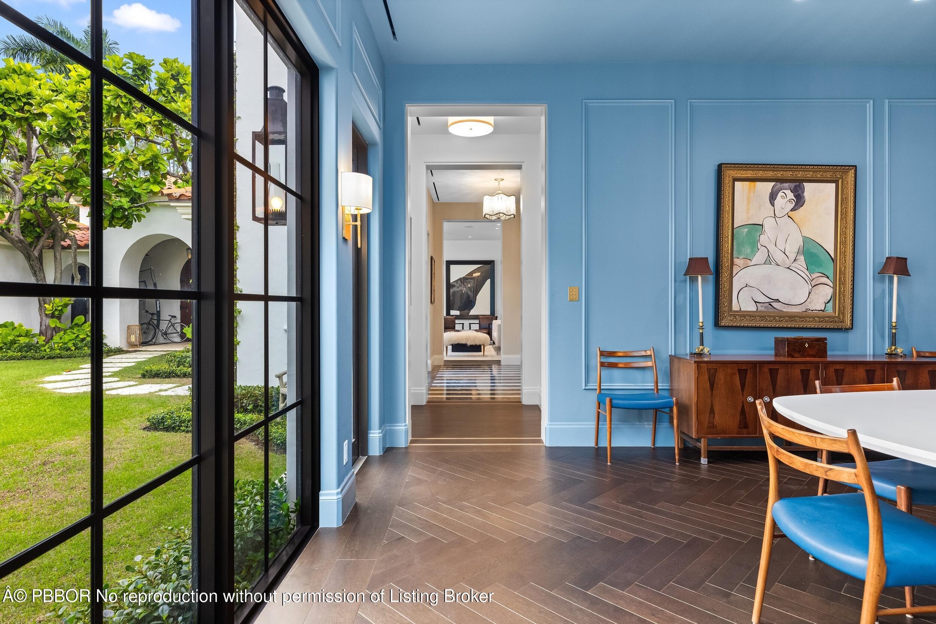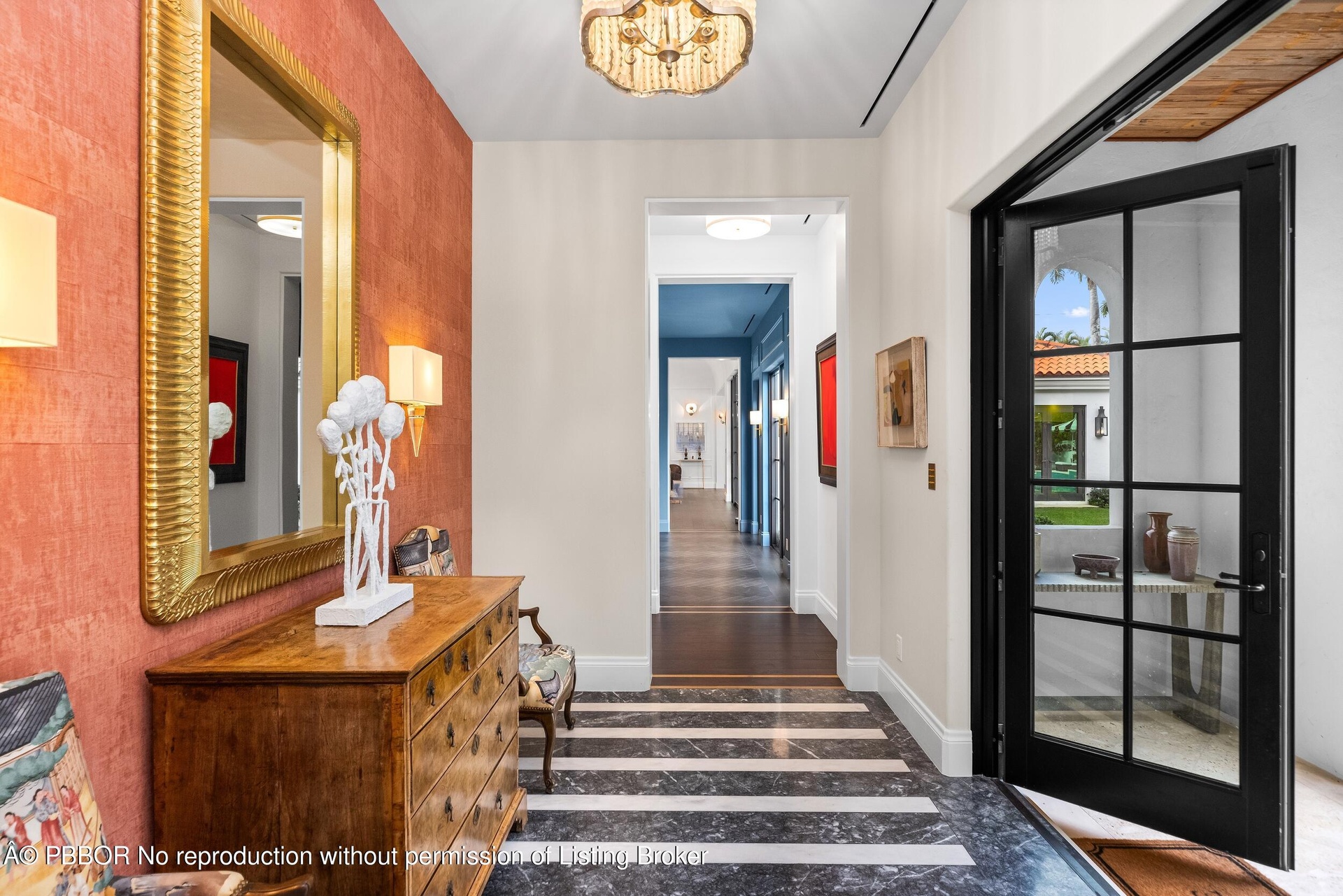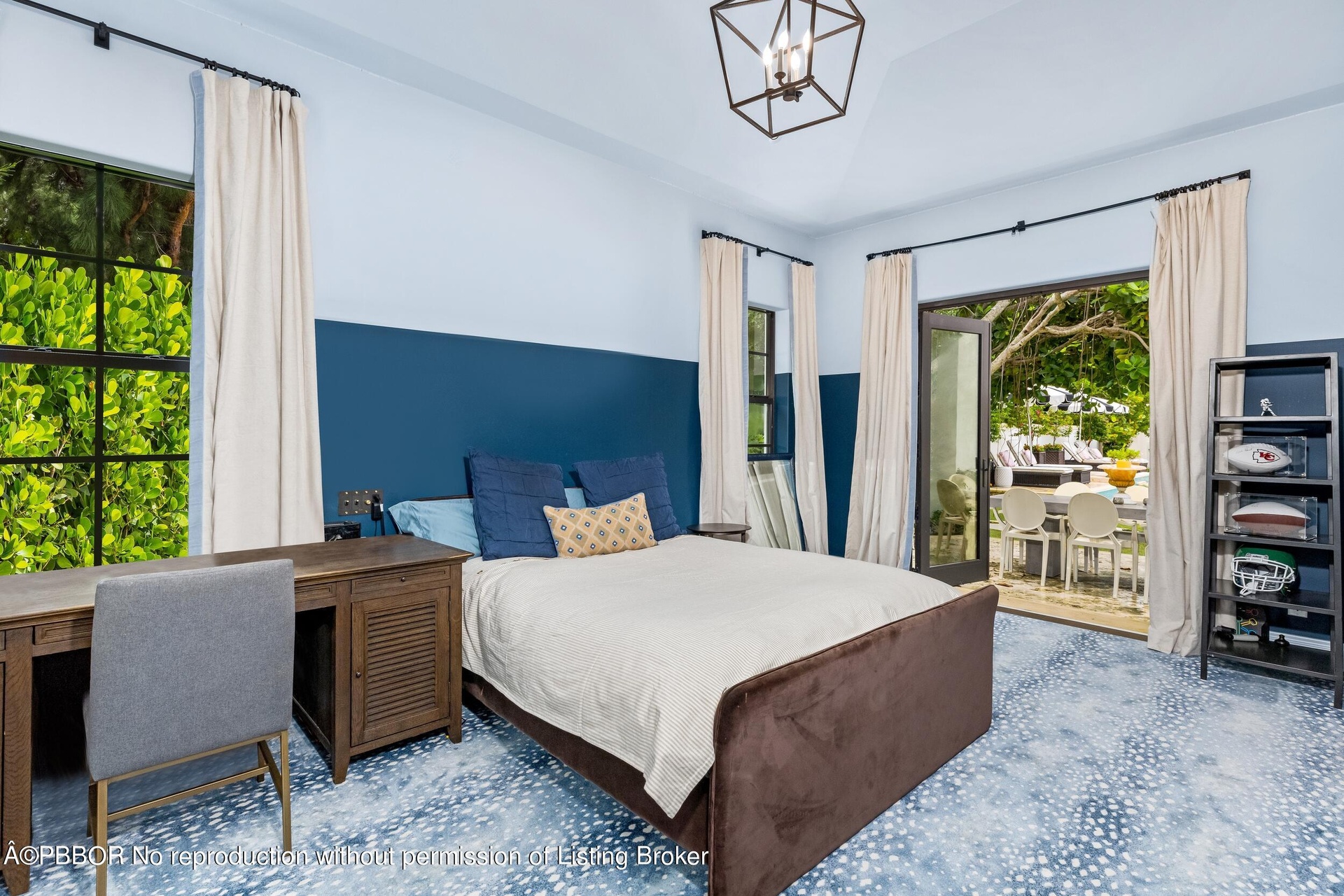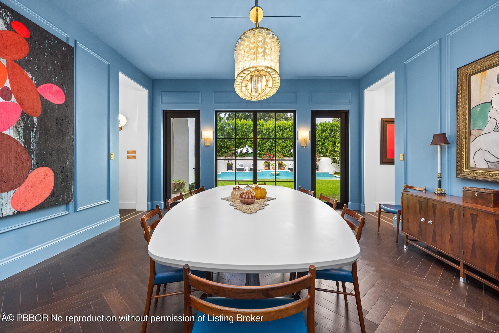 Completely reimagined 6BR/7.1BA estate with beautiful designer finishes throughout. This stunning Courtyard home is located on the highly desirable Wells Road on the Sunny South Side of the street offering an abundance of natural light. Situated on an oversized lot, the home was beautifully renovated in 2024. The welcoming front entry opens to a breathtaking and serene courtyard that feels like your own private oasis complete with beautiful, updated landscaping, covered dining loggia, and large swimming pool. Charming stone path leads to the inviting entry foyer with marble slab flooring. The interiors feature soaring 15' ceilings in most rooms, stunning flooring, and Crestron lighting and sound systems. Elegant formal dining room with built in buffet and China cabinets and gorgeous herringbone wood floors. Gourmet kitchen with top-of-the-line appliances including Blue Star 60'' range with French top, dual Miele dishwashers, and Sub Zero refrigerator, freezer, and refrigerator drawers. Leeds cabinets, custom hardware, and temperature-controlled wine display. Oversized chef's island features sink with Waterworks faucet and seating for four. Fantastic open floor plan, perfect for entertaining, with the kitchen open to the family room and breakfast area. Spacious primary suite with striking detailing, two large walk-in closets, stunning dual bathrooms, and private patio. Additional guest suites with en-suite bathrooms. Fabulous office/additional guest suite. The custom Leeds bathrooms also feature Paris Ceramic and Waterworks tile and hardware. Second floor addition features convenient separate entry, guest suite, and large gym with sauna. Fabulous pool cabana with full bath and kitchenette complete with Sub Zero beverage center and Miele dishwasher and ice maker. Additional highlights include full house generator, newly installed irrigation system, and so much more.