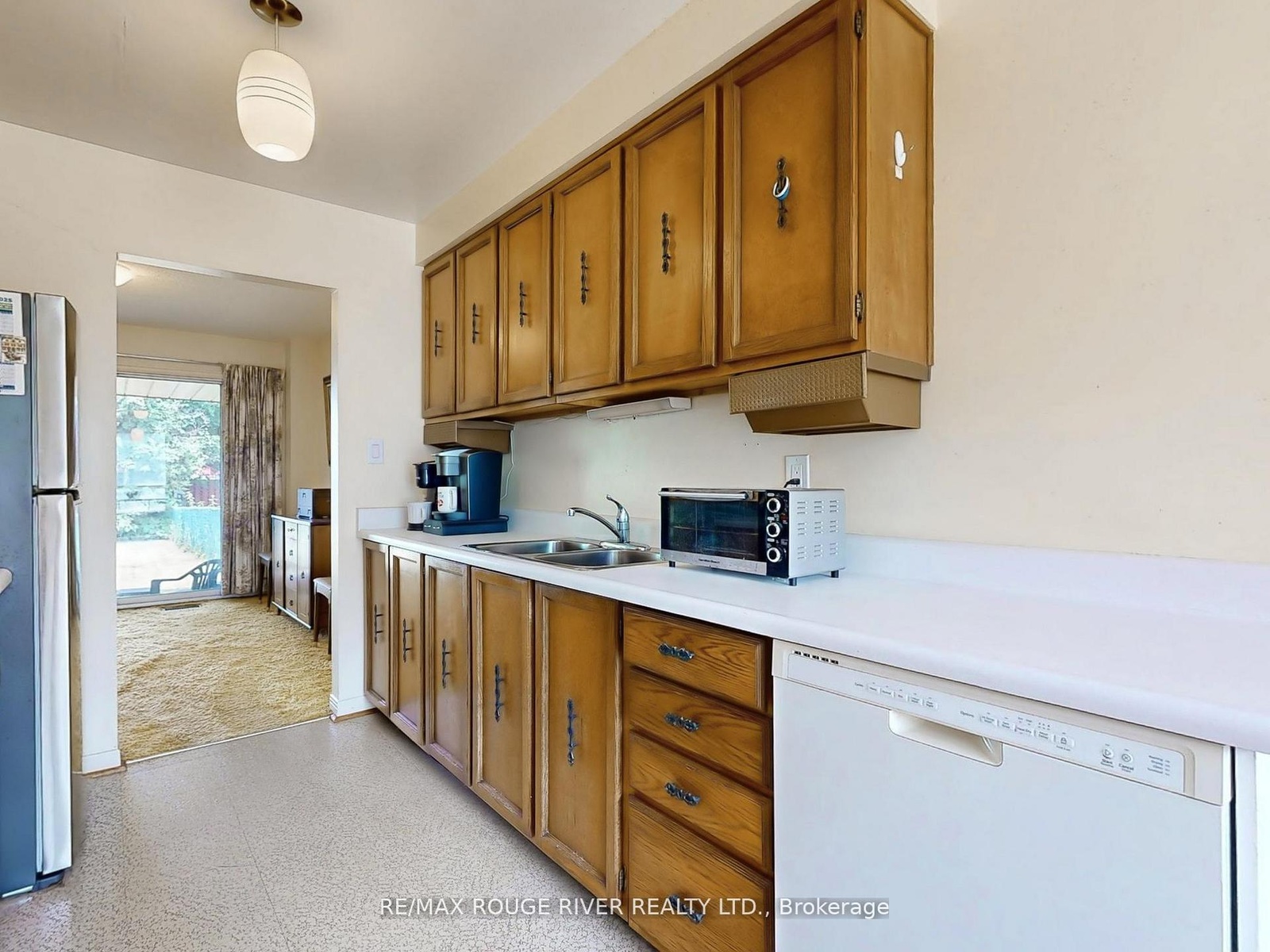 4 SPACIOUS BEDROOMS, SIDE DOOR ENTRANCE possible In-Law, Great location, Quiet crescent location, terrific opportunity for affordable home ownership, New 2025 100 amp. Electric breaker panel, Clean, original condition, 5 major appliances. Newer Garage Door, Extra deep lot, Walk to Grocery Store via gate in yard, Walk to Library, Close to schools, Centennial College, U of Toronto Scarborough campus, transit, and 401. Fenced lot. Direct gate to Sheppard, flexible closing date.