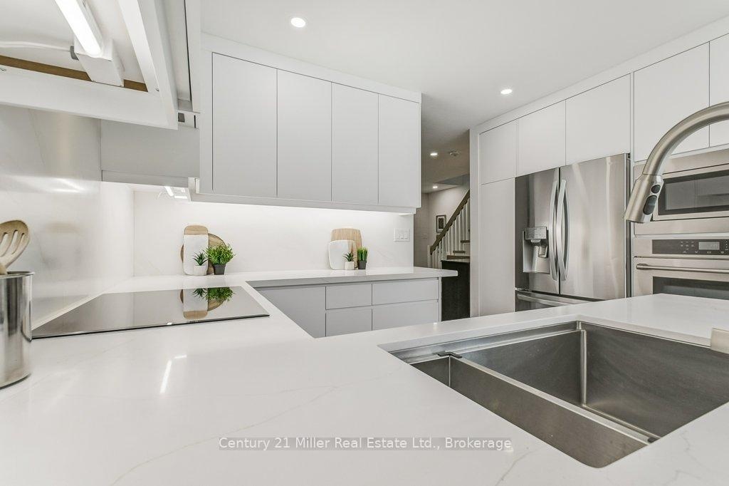 Executive Style Renovated Townhouse - Minutes from Oakville GO. Escape the downtown Toronto bustle and enjoy this fully renovated 3-bedroom, 2.5-bath executive style townhouse in Oakville's sought-after neighborhood. The home offers abundant natural light, creating a warm and inviting ambiance throughout. Highlights include a custom kitchen with high-end appliances, open-concept living and dining areas with an elegant fireplace, and a low-maintenance backyard perfect for entertaining or relaxing. Upstairs, the primary suite offers a gorgeous ensuite and a walk-in closet, while two additional bedrooms provide great space for family or guests. The home also includes an attached garage plus two additional parking spaces, ensuring convenience for commuters and visitors alike. Located just 6 minutes from Oakville GO Station, with easy access to shopping, dining, parks, and top-rated schools, this property combines modern style, practicality, and an unbeatable location. Move-in ready and designed for comfortable executive style living. Check out the virtual tour and floor plan. Book a showing today!