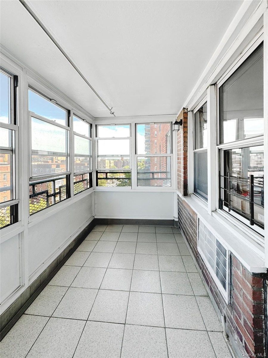 - Unfurnished sunroom with a city view and baseboards