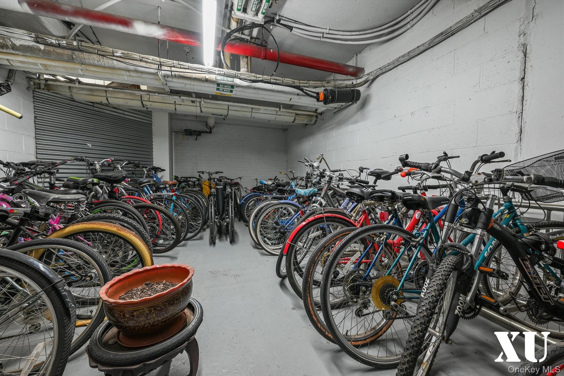 - Garage with bike storage and concrete block wall