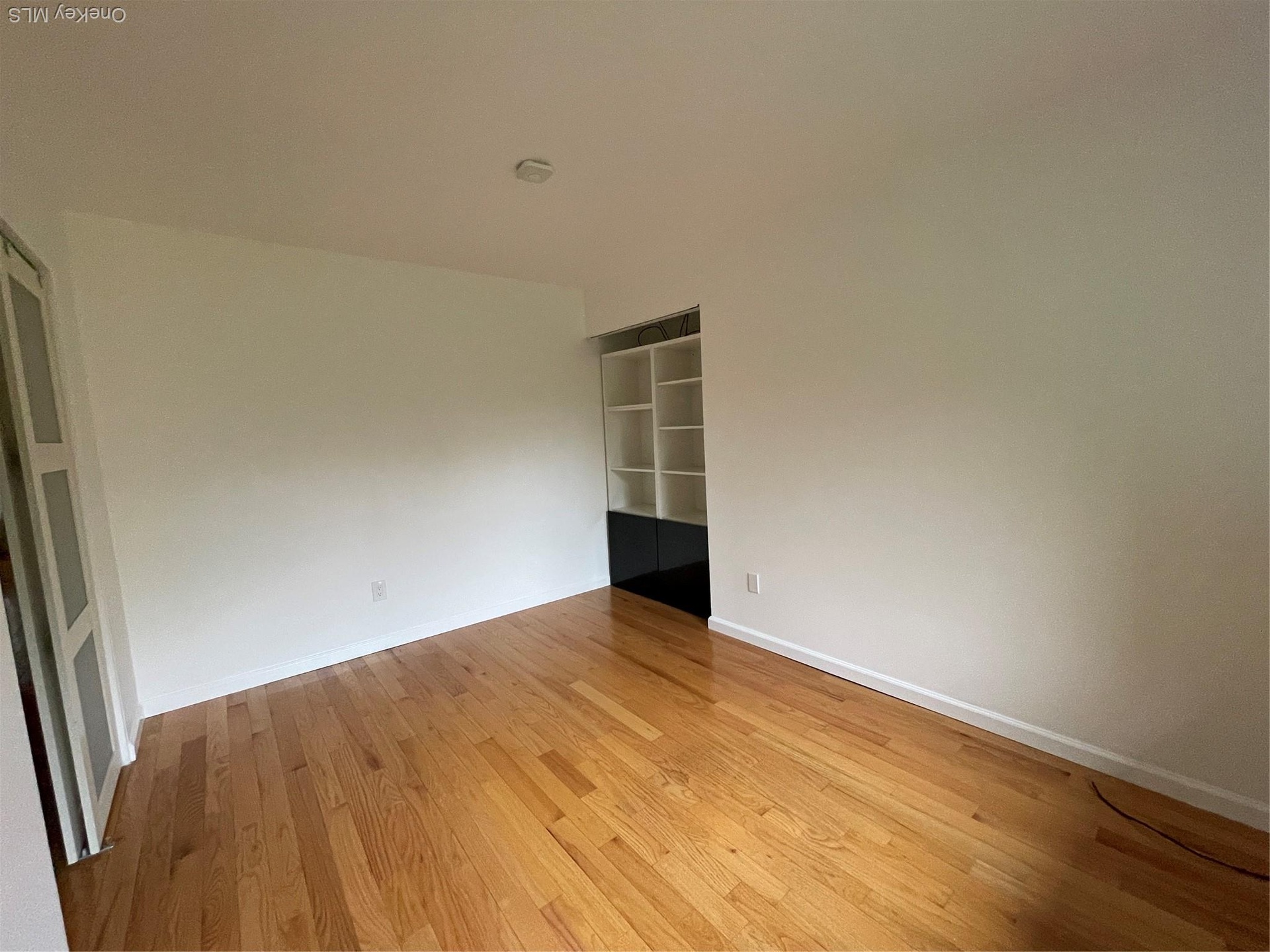 - Unfurnished dining area with light wood-style flooring and baseboards