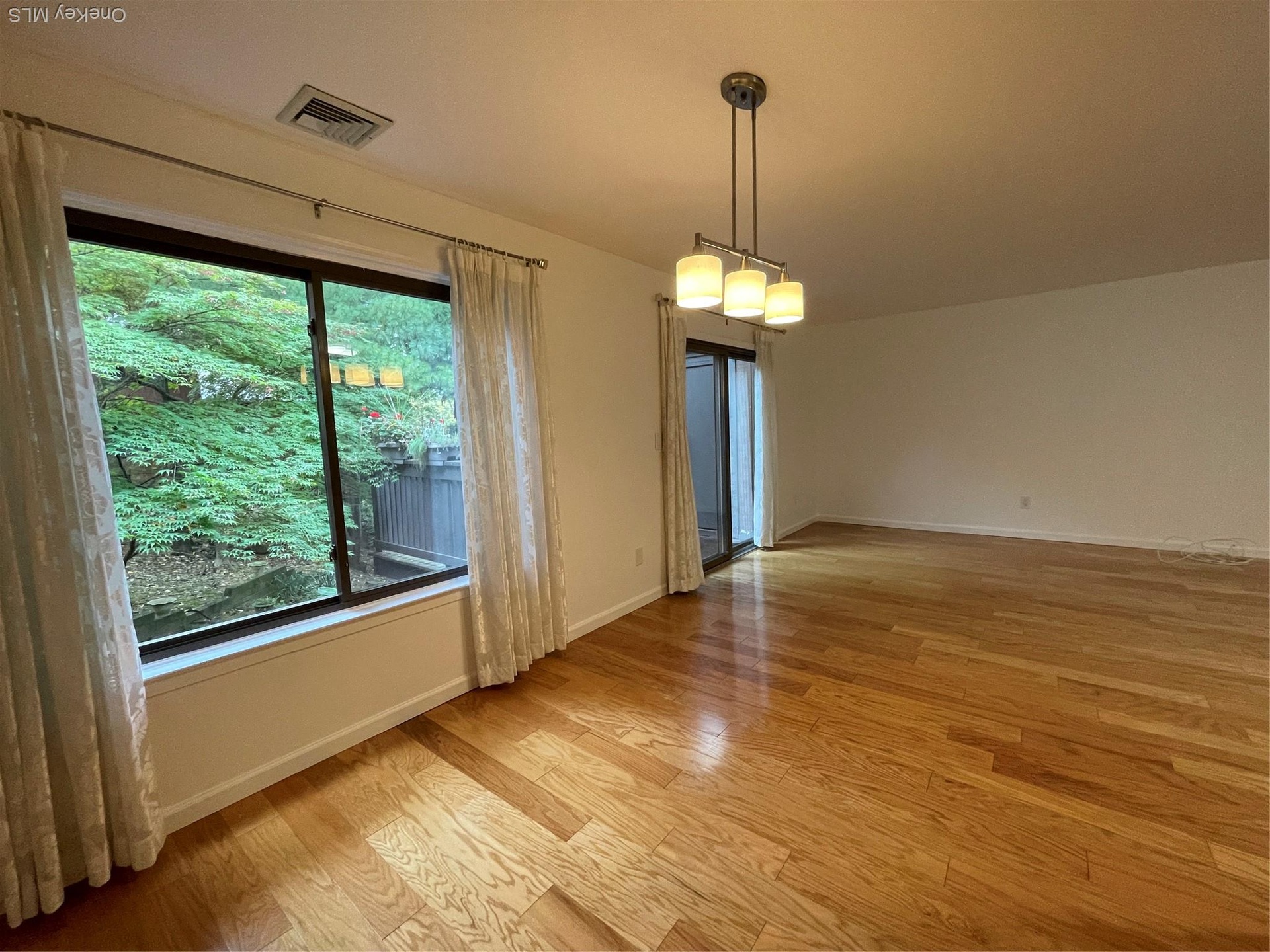 This condo is an upper level end unit and locates in desired Edgemont Community in Tarrytown. The renovated unit with a master suite and spacious 2nd bedroom, plus a room for 3rd bedroom or office/library. The whole unit is recently fresh painted. Hardwood floor through the entire unit. Large living room and dining area with sliding door to deck outside. Kitchen with updated appliances and breakfast area, New refrigerator 2024. The master suite has one big bedroom, walk-in closet and a full bath with a closet. The 2nd bedroom is spacious with 2 closets. Amenities: One detached garage designed for 2 small cars tandem parking space. Right now is one car space and a big storage room. Unassigned visiter parking lots.