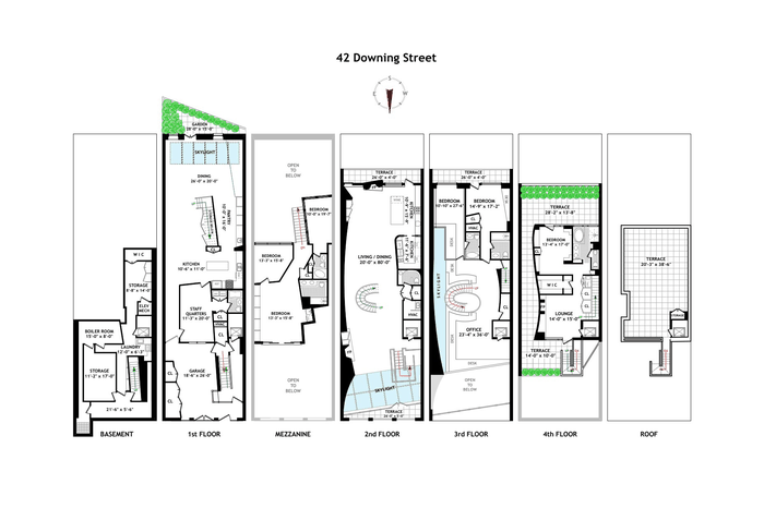 Sun flooded West Village House! Boasting 29 feet of frontage onto Downing Street, including a curb cut and private garage, this fabulous 9,000 square foot home features double height ceilings, six outdoor spaces, walls of windows and an elevator that services the basement to the fabulous roof deck. A beautiful blend of West Village charm and contemporary design, every room has wonderful natural light, so rare in a house.