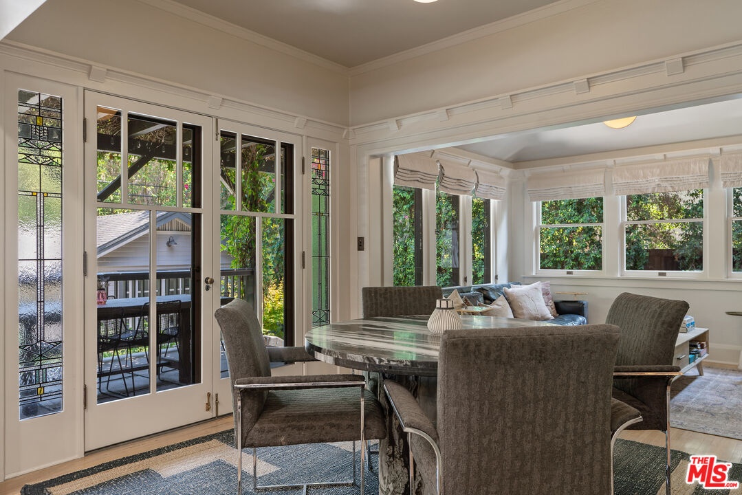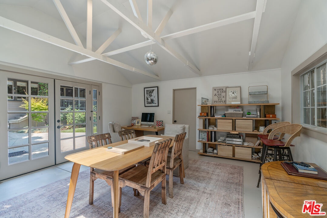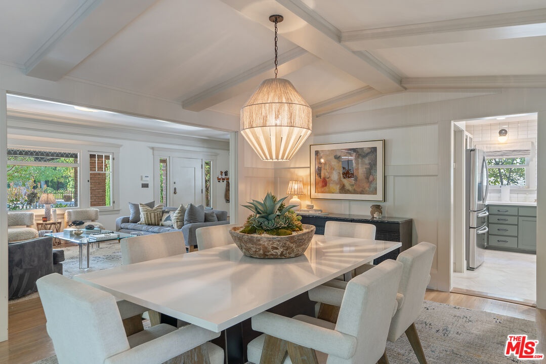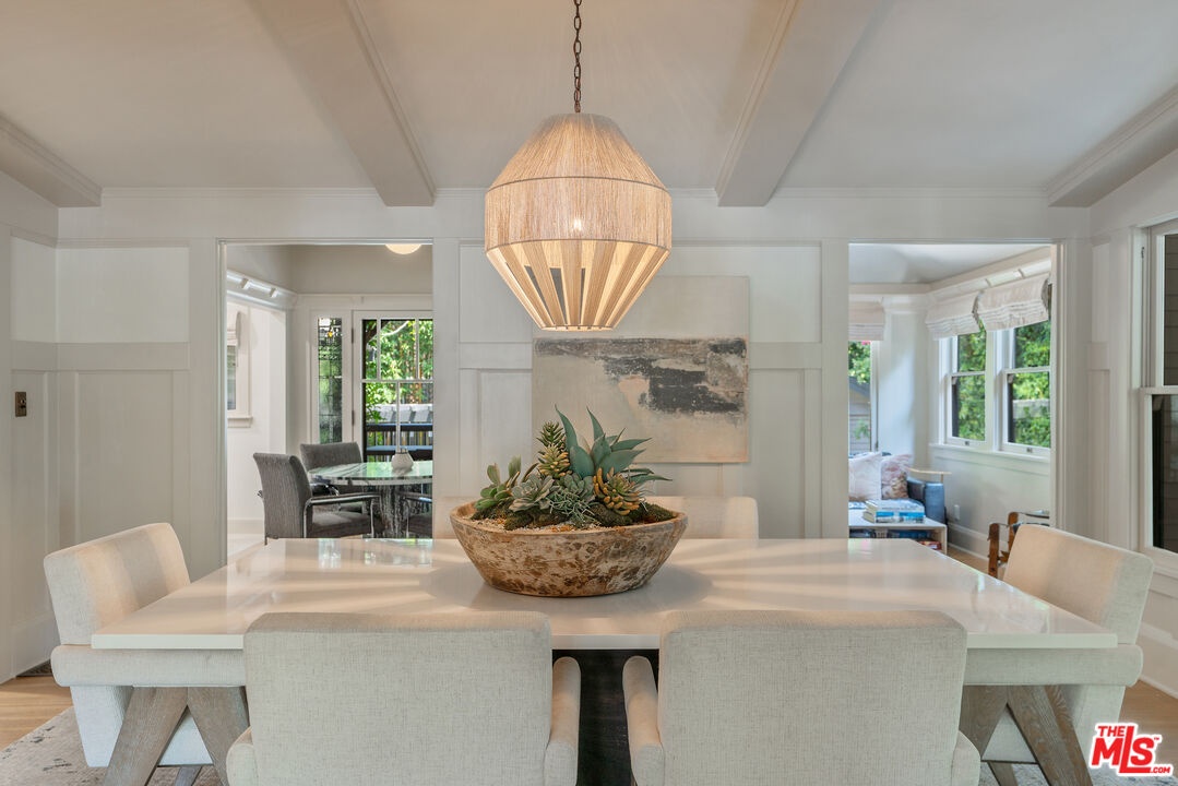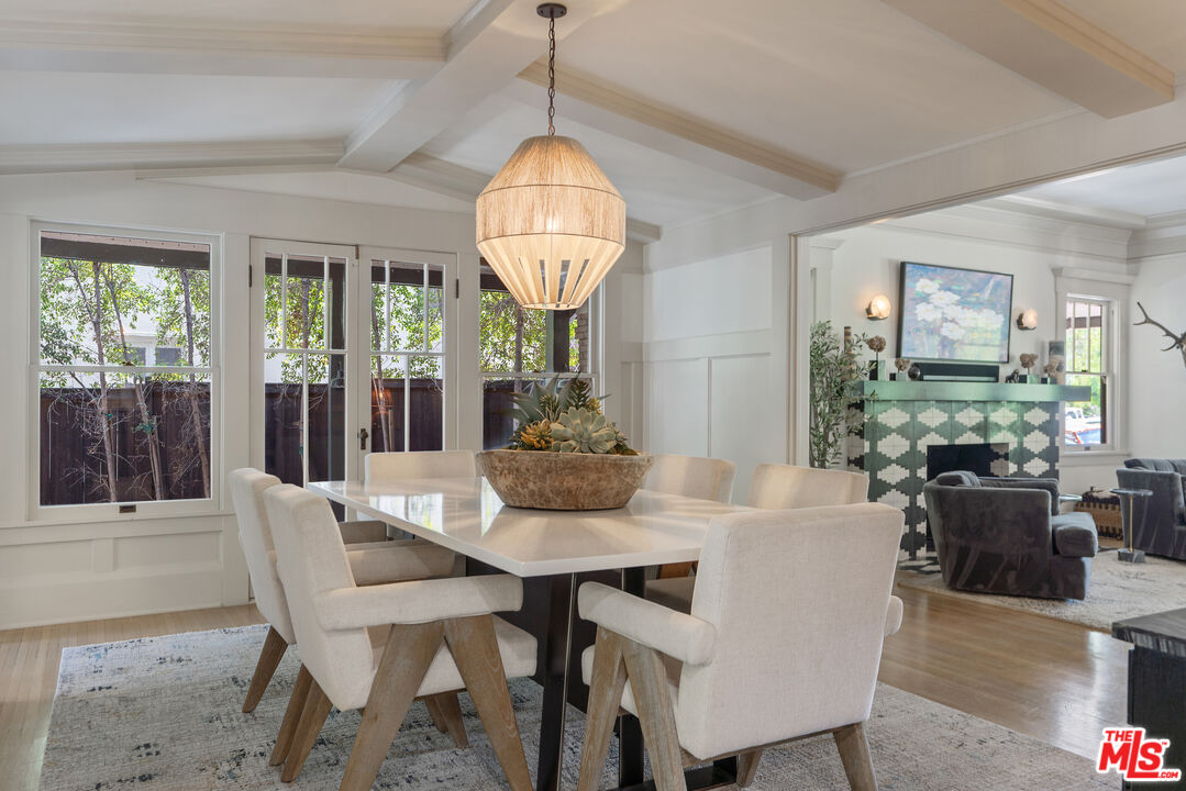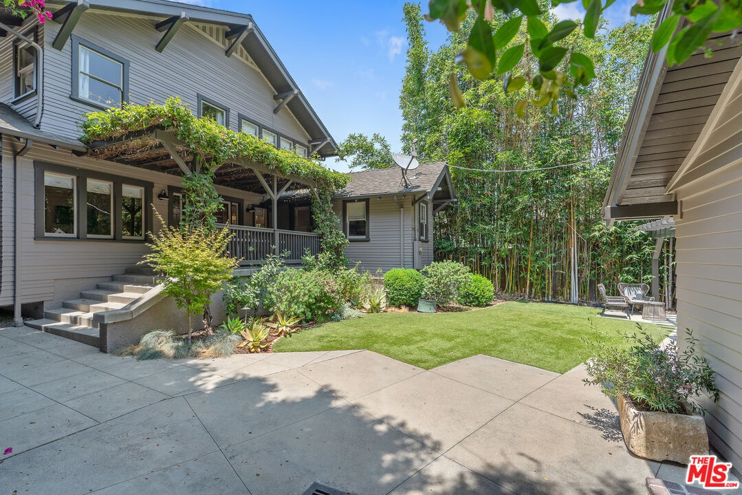 DescriptionThis stunning Craftsman blends original character with thoughtful modern updates. Step into the spacious living room, filled with rich wood trim and timeless charm. The formal dining room features wood-beamed ceilings and classic wainscoting, opening seamlessly to a cozy den, a breakfast room, and a beautifully updated kitchen with an island and modern appliances. A walk-in pantry, laundry/storage room, and a convenient half bath complete the main floor. Upstairs, a charming staircase leads to the large primary suite with a gorgeous new bathroom featuring double sinks and access to a private rooftop deck. Two additional guest bedrooms share a character-filled hall bath, and there's a versatile playroom, office, or optional fourth bedroom.The backyard is an entertainer's dream with a covered dining patio overlooking the private garden. The detached garage (an additional 500 sq.ft.) has been converted into a flexible office, playroom, or hobby space, with an attached gym. Property has been updated with newer central air and heat, copper plumbing, and electrical. Nestled on a picturesque tree-lined street surrounded by beautifully restored homes, this is a rare opportunity to own a true piece of architectural history (HPOZ). Active neighborhood community with yearly Halloween party.NeighborhoodMore listings: