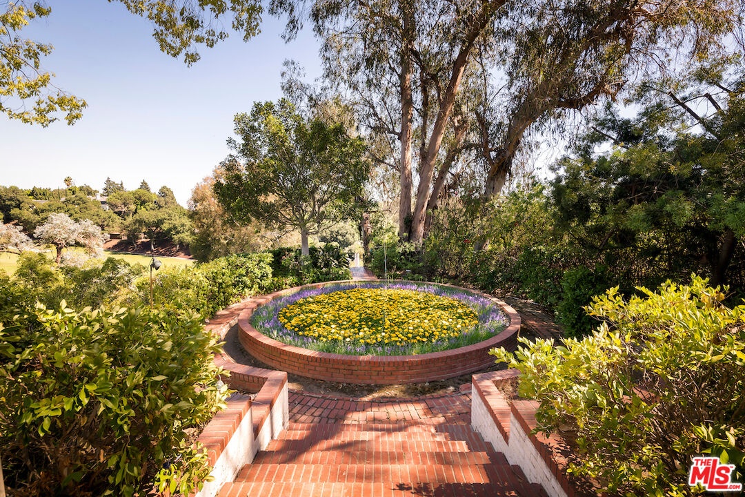 "Casa Contenta" FIRST TIME ON THE MARKET IN THREE QUARTERS OF A CENTURY. Situated on nearly two acres, "mostly usable" (three legal lots) in prime lower Bel Air, this distinguished championship tennis court estate is privately positioned behind gates and located up a city-block-long private driveway. The property offers total seclusion, with expansive views of the esteemed Bel Air Country Club Golf Course, overlooking the 15th green. This championship tennis court estate features a circular motor court, swimmer's pool, screening room, two guest houses, and a staff wing all of the attributes of a proper world-class estate. With a reputation that precedes it, this Casa Contenta has hosted royalty, presidents, politicians, and notables for decades. Built with exceptional attention to detail and scale, the estate truly epitomizes classic Bel Air Regency architecture while providing a remarkable opportunity to reimagine. The main residence, spanning just under 8,200 square feet, offers a grand formal living room, library, magnificent dining room adorned with marble floors, a gourmet chef's kitchen with a butler's pantry, second-story den with a bar, and nine bedrooms. Separately tucked away is a two-bedroom guest house on the upper level and a stately ballroom on the lower level once home to lavish gatherings and screenings totaling just over 2,700 square feet of additional living space. An additional guest house and greenhouse are framed by lush greenery. The park-like grounds include an expansive patio with a barbecue, impeccable brick-lined pathways, and abundant floral displays.
