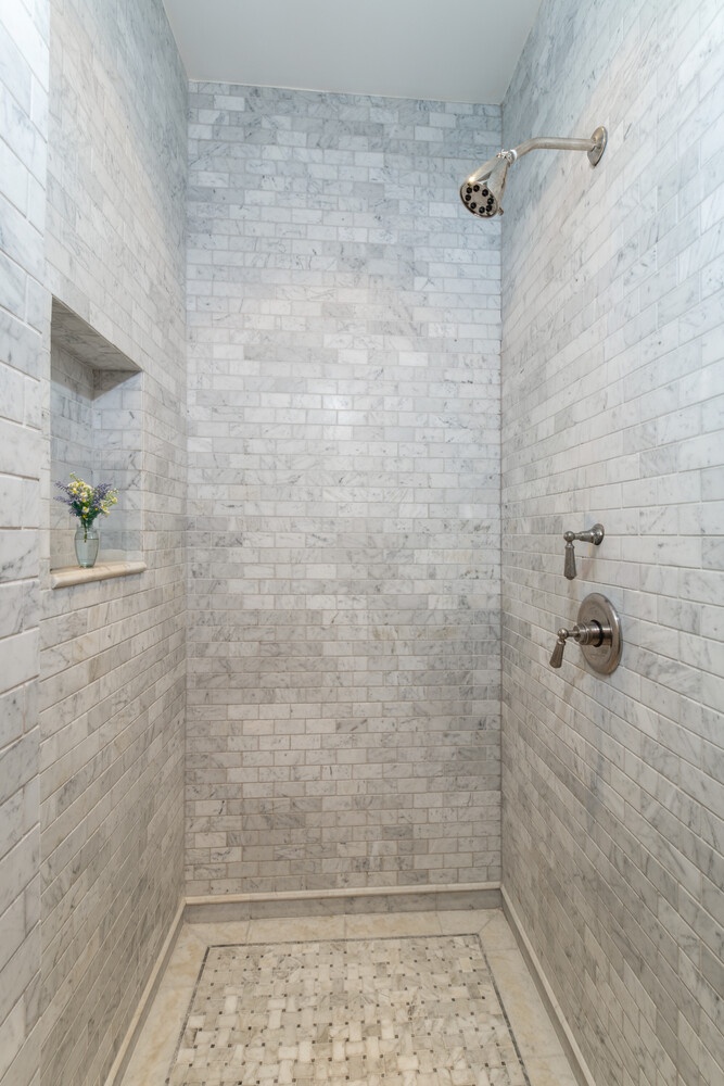 Two large bedrooms are located along a short hallway just off the foyer offering extra privacy from the living area. The master bedroom boasts the same western exposure as the living room thru two large windows offering the sweeping views up and down Park Avenue along with two extra large closets. Adjacent to the bedroom the primary bath features a large marble tiled shower complented by marble picture framing outlining a gray and white basketweave shower floor. Commodious mahogany storage cabinetry surrounds a sizable marble countered basin. A second bedroom offers three closets and a black and white marble basketweave floor and a striking black marble slab encased soaking tub. Polished Nickel fixtures round out the bath offering continuity among the kitchen and both baths.