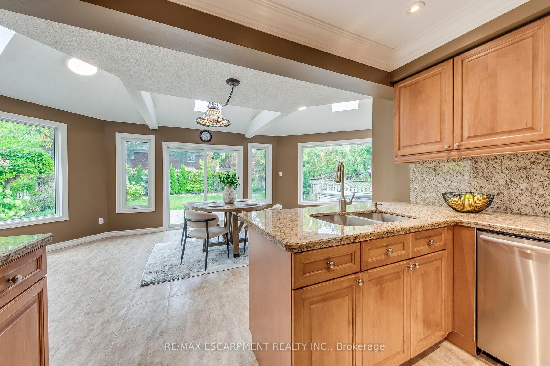 Welcome to 1246 Saddler Circle, a beautifully updated home nestled in one of Oakville's most sought-after neighbourhoods and placed on a large lot with a frontage of 56 feet and 125 feet deep. This move-in ready property combines thoughtful upgrades, and an unbeatable location close to schools, parks, and every amenity your family could need. Finished in timeless brick, stone and stucco interior and clad in new black triple pane windows (2023). Offering 4 Large bedrooms, 4 Baths, 3,161 sqft of above-ground living space and a massive finished basement. Large foyer opens to the extra wide staircase, closet, main floor laundry/mud room and a powder room. Both the living room and family room feature large fireplaces. Well-equipped kitchen features stainless-steel appliances, tons of counter space and opens to a large sun-filled breakfast area with cathedral ceilings and 4 sky-lights. The over-sized dining room has a built-in wet-bar and large windows. The Luxurious primary suite features a spa-like ensuite, two walk-in closets and a built-in hallway vanity. Three other spacious rooms share a renovated bath with glass walk-in shower. Finished basement is home to a large reg-room and a second living room with small kitchenette and two piece bath, perfect for an in-law suite.Walking distance to highly rated elementary and secondary schools.Steps from lush green spaces, playgrounds, and walking paths where kids can play and families can stay active. Shopping, dining, and everyday essentials are minutes away, including Oakvilles vibrant Uptown Core and easy access to highways & GO Transit. Upgrades include: Interior renovation (2014), Triple Pane Windows (2023), Furnace (2022), Washer&dryer (2024), Hot water heater (2020), Range hood (2022), Insulation (2020), Lawn sprinkler (2020)