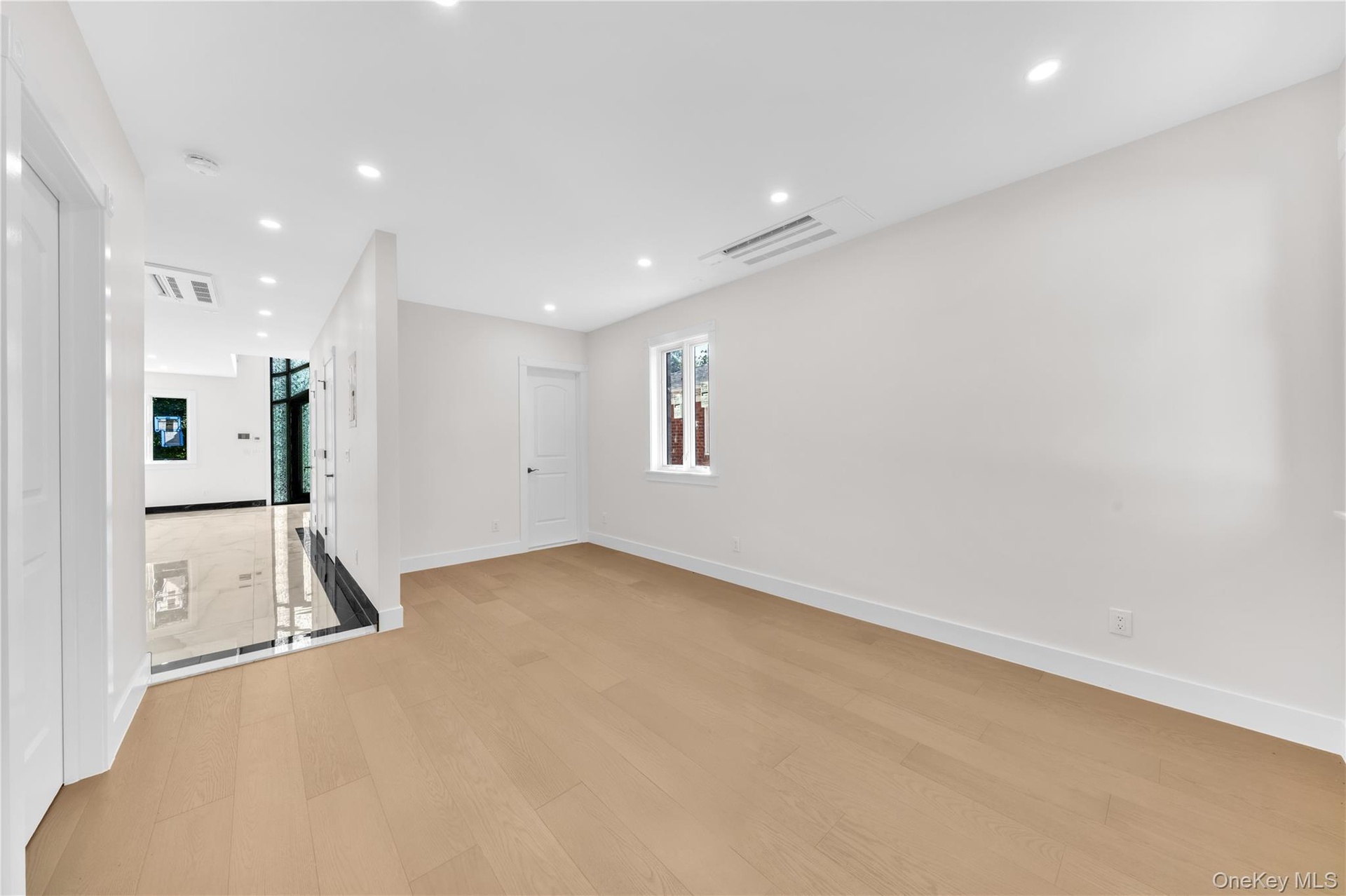 - Empty room featuring recessed lighting and light wood-type flooring