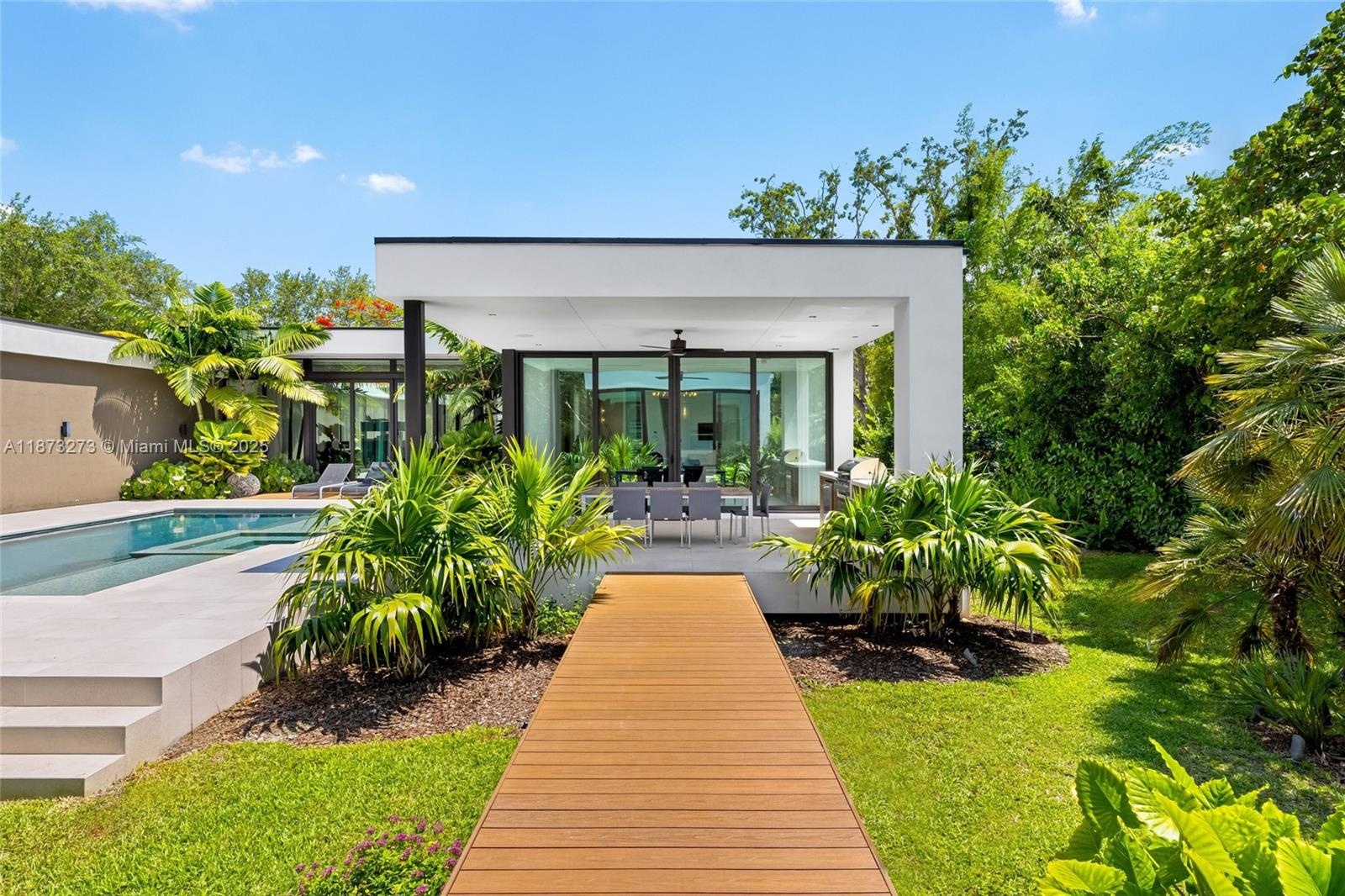 Set on a 39,639 sqft corner lot, this 2023 modern estate offers 5,745 sqft of luxury living. The main home features 6 beds, 6.5 baths, plus a detached 1 bed/1 bath suite. Designed for comfort and entertaining, enjoy a heated saltwater pool, hot tub, outdoor kitchen, putting green, and a two-car garage with EV charger. Premium finishes include Miacuccina millwork, 24x48 porcelain floors, soaring ceilings, a chef’s kitchen with Calacata Quartz, high-end appliances, & a large island. Smart features include a Control4 system, blackout shades, and more. Additional highlights: spa-style baths, walk-in pantry, laundry room, and fruit trees. Ideally located near top Pinecrest schools like Gulliver Prep, Palmetto, Beth Am, and more. Move-in ready in one of Pinecrest’s most desirable neighborhoods!