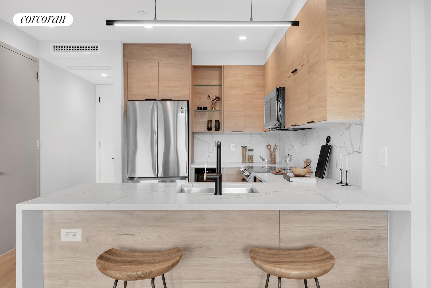 All one-bedroom layouts, the airy interiors are conceived with the most in-demand elements. These include white oak flooring and expansive double-paned dual operation casement windows, which fully immerse each apartment in natural light while providing superior energy efficiency and comfort. Thoughtful construction and attention to detail are the hallmarks of a discerning design aesthetic that creates your own personal haven, enhanced by a soothing muted color palette. Among the luxe features, balconies extend your living space. Also welcome is the convenience of an LG washer/dryer in every residence and the exceptionally efficient climate-controlled central heating/cooling system.