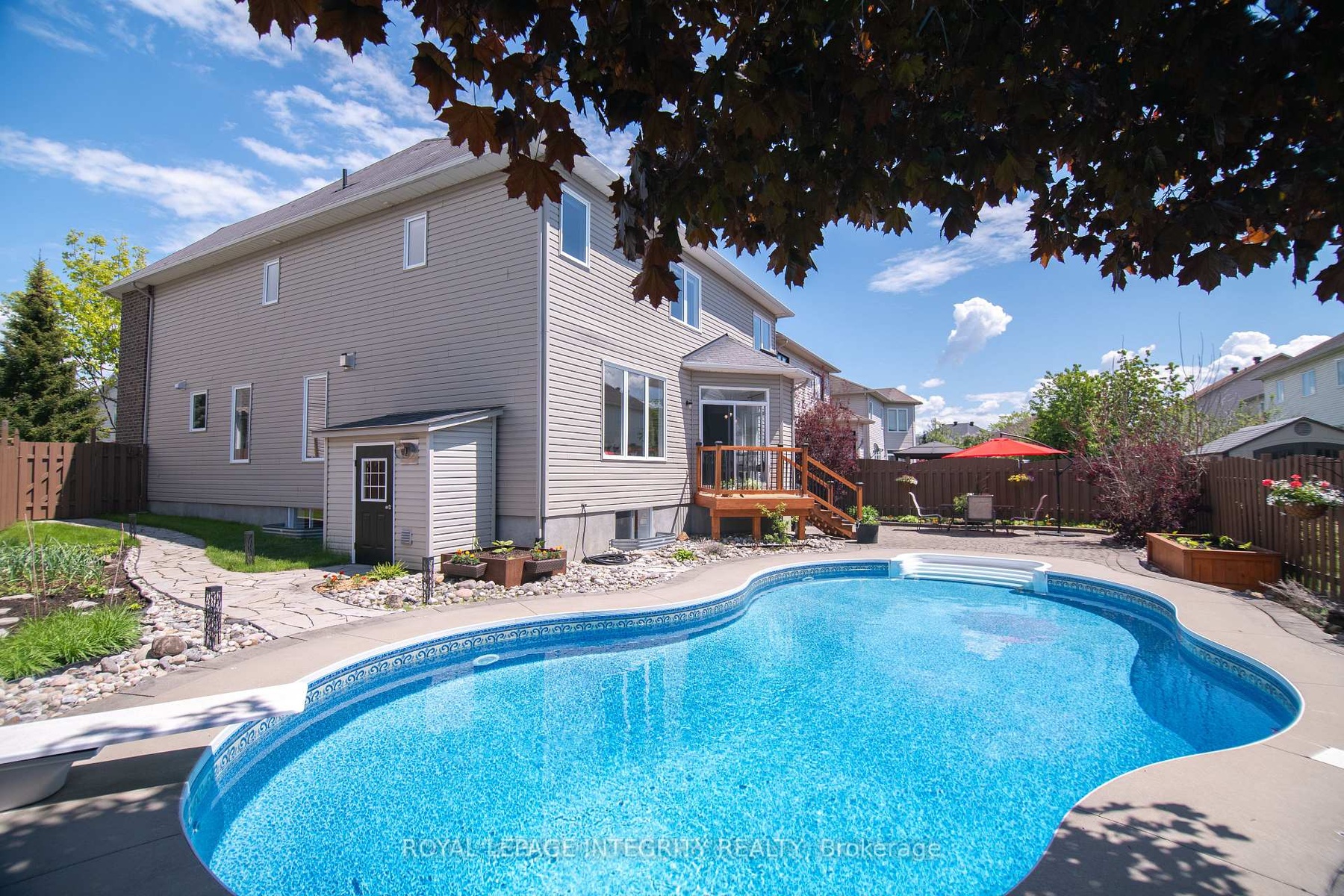 Welcome to 34 Keighley Cir, an exceptional residence in the heart of Morgan's Grant. Perfectly positioned on a premium pie-shaped lot, thisextensively renovated 5-bedroom, 5-bathroom home offers over 4,200 sq.ft. of finished living space ideal for growing families and multigenerational living. From the moment you step inside, you are greeted by a gracious curved staircase and soaring 18-foot ceilings that flood theliving areas with natural light. The main level features a dedicated home office, formal dining room, and an expansive family room centeredaround a striking double-sided fireplace one side enhanced with marble surround and built-in storage, the other finished in stone, offeringwarmth and sophistication in equal measure. The chef-inspired kitchen, fully renovated in 2020, showcases modern cabinetry, quartzcountertops, hexagon marble backsplash, and stainless steel appliances perfect for everything from daily routines to gourmet entertaining. Upstairs, four generously sized bedrooms provide serene retreats, including two ensuite rooms ideal for extended family or guests. Theluxurious primary suite includes a walk-in closet and a spa-like ensuite. All bathrooms throughout the home were redesigned in 2022 withcontemporary fixtures and finishes. The fully finished basement adds incredible versatility, with a recreation area, a renovated bathroom, makingit ideal for a home gym, media lounge, or guest quarters. Step outside to your professionally landscaped backyard oasis, complete with an extralarge, well-designed salted in-ground pool, and a new side stone walkway (2023) lead to the backyard. Whether it's summer fun or eveningrelaxation, the outdoor space is a true highlight. Located on a quiet, family-friendly street, just minutes to top-rated schools, scenic trails, majorshopping centers, and the Kanata high-tech park, this turnkey home delivers an unmatched lifestyle in one of Ottawa's most sought-afterneighborhoods.