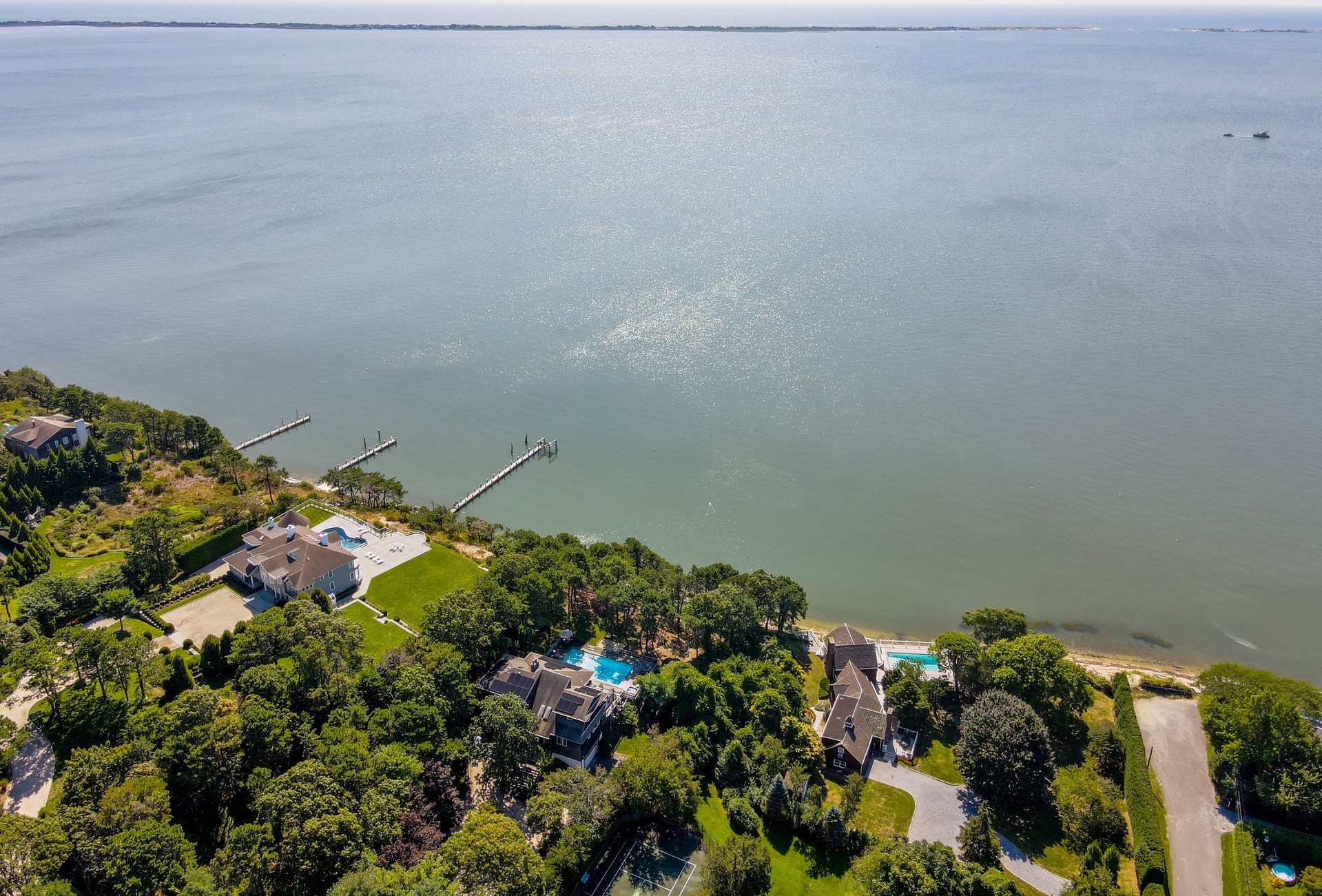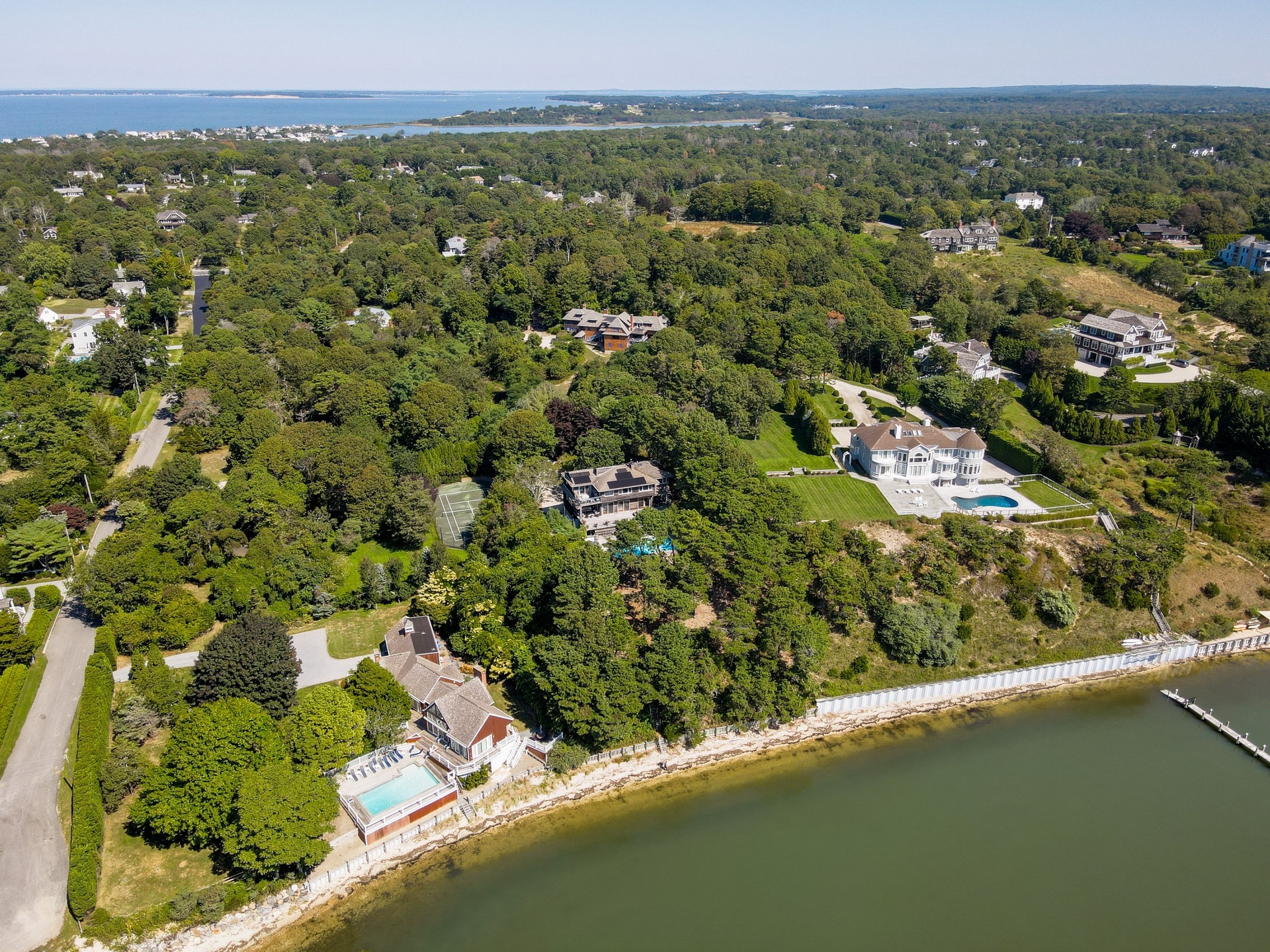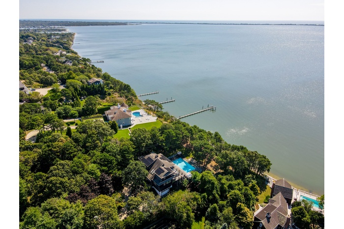 Come relax in this spacious 6 bedroom, 6 1/2 bathroom magnificent 2 acre water front retreat looking over Shinnecock bay, and be assured that this home will deliver both the quiet and peaceful refuge so rightly deserve, while also maintaining the perfect joyous atmosphere needed in order to insure an exciting summer in the Hamptons. Close to Southampton village, this home has everything you need! Tennis court and swimming pool for the athletic, spectacular sunsets from the master bedroom terrace for the hopeless romantics, an immense chefs kitchen for the artistic cook, bay for boating and lots and lots of space to just let go and have fun with your guests.