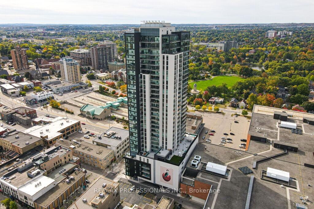 Welcome to fabulous 'Charlie West', one of downtown Kitchener's most sought-after new locations. Fantastically situated at the edge of Victoria Park, and right on the ION line, Charlie West is just steps away from Kitchener's Innovation District. This modern styled unit boasts an open and bright layout, with floor to ceiling windows, a spacious kitchen with peninsula and a breakfast bar, and a cozy living area with walk out to balcony. Building amenities include an entertainment room with catering kitchen, a landscaped BBQ terrace, a fitness area with yoga studio, and more. This unit also comes with a parking space and a storage locker, giving you the comfort of secure parking and extra room for belongings.