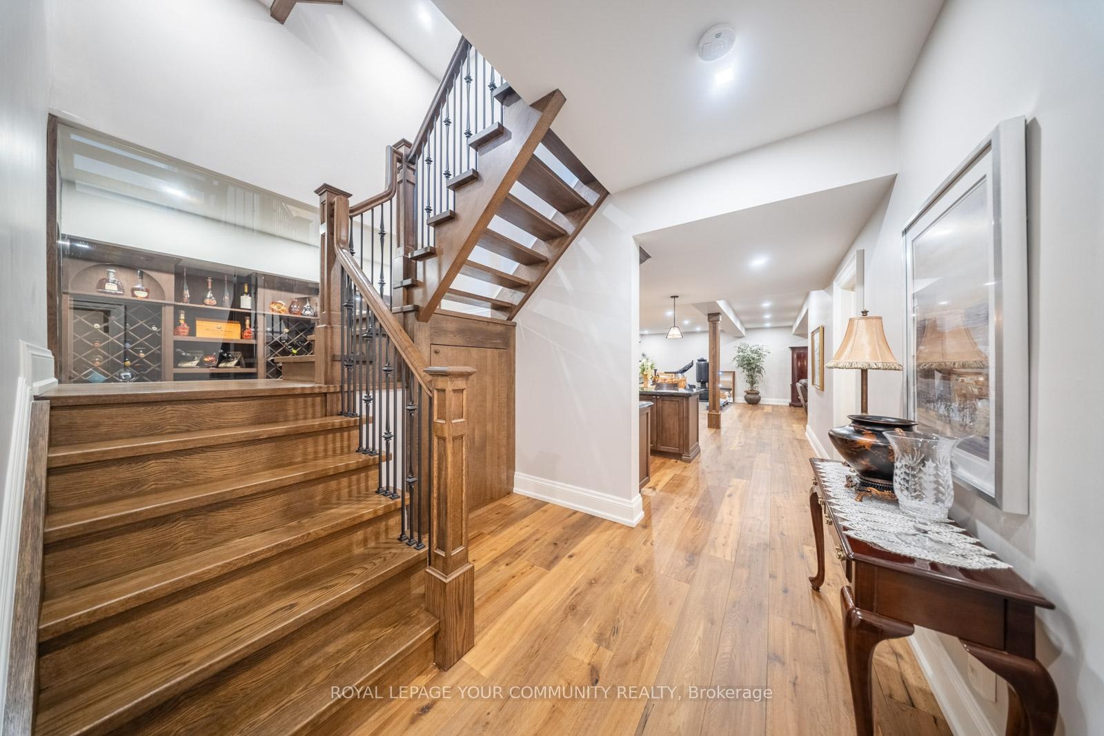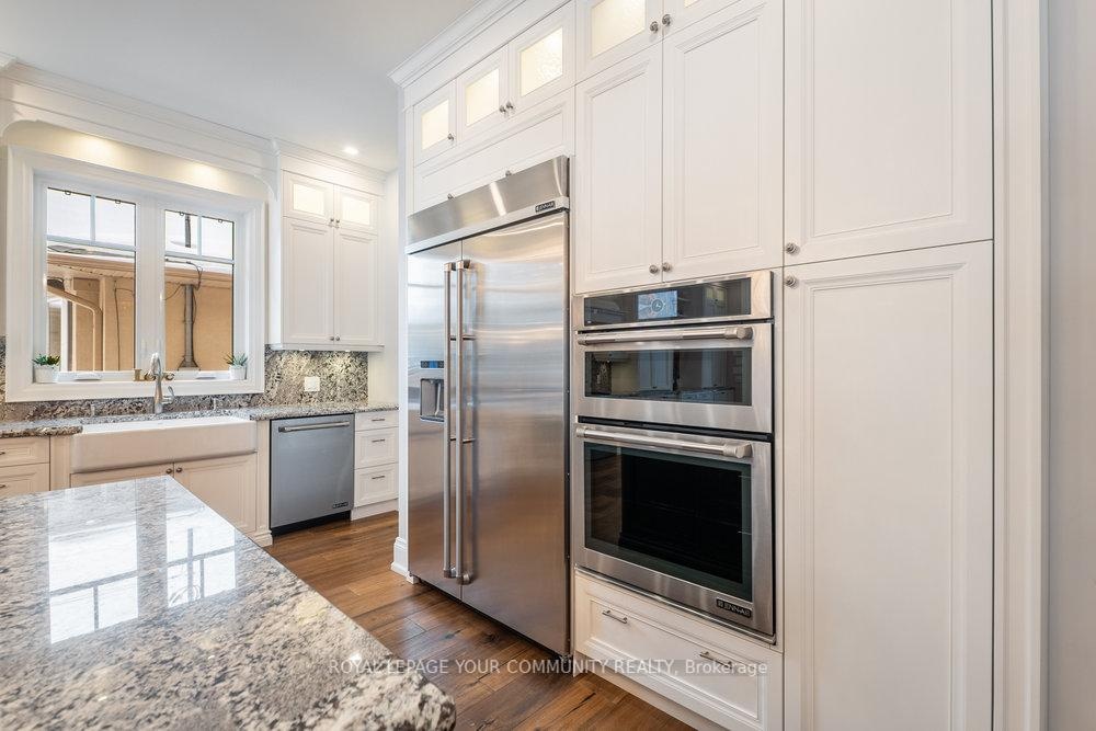 Welcome to 1551 Warland Rd, a stunning custom-built bungaloft in the heart of highly sought-after South Oakville. Nestled just a 5-minute walk from Coronation Park and the serene shores of Lake Ontario, this exceptional residence offers over 5,700 square feet of meticulously finished living space, blending luxury, comfort, and modern convenience. Step inside to discover an inviting main floor where primary rooms exude elegance with coffered ceilings, expansive picture windows flooding the space with natural light, and rich hardwood flooring. The gourmet kitchen is a chefs dream, featuring top-of-the-line JennAir appliances, including dual dishwashers, a gas stove with a custom hoodfan, side-by-side fridge, built-in oven, and microwave. A butlers pantry and servery seamlessly connect the kitchen to the dining room, perfect for effortless entertaining. The bathrooms elevate luxury with quartz countertops, undermount sinks, sleek glass shower enclosures, and heated flooring for year-round comfort. The primary suite, conveniently located on the main level, offers a tranquil retreat with sophisticated finishes and ample space. Downstairs, the lower level impresses with a custom wet bar and wine room, ideal for hosting guests, alongside a dedicated exercise room for your wellness needs. Every detail has been thoughtfully designed to enhance your lifestyle. Step outside to the backyard oasis, where an outdoor patio steals the show with a custom pizza oven, built-in barbecue, and a covered area featuring a cozy fireplace perfect for al fresco dining or relaxing evenings under the stars. Located in one of Oakville's most desirable neighborhoods, this bungaloft combines timeless craftsmanship with modern amenities, all just steps from parks, lakefront trails, and the vibrant South Oakville community.