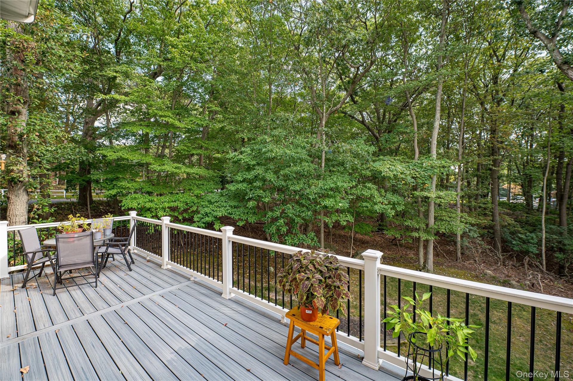 - Wooden deck with outdoor dining space