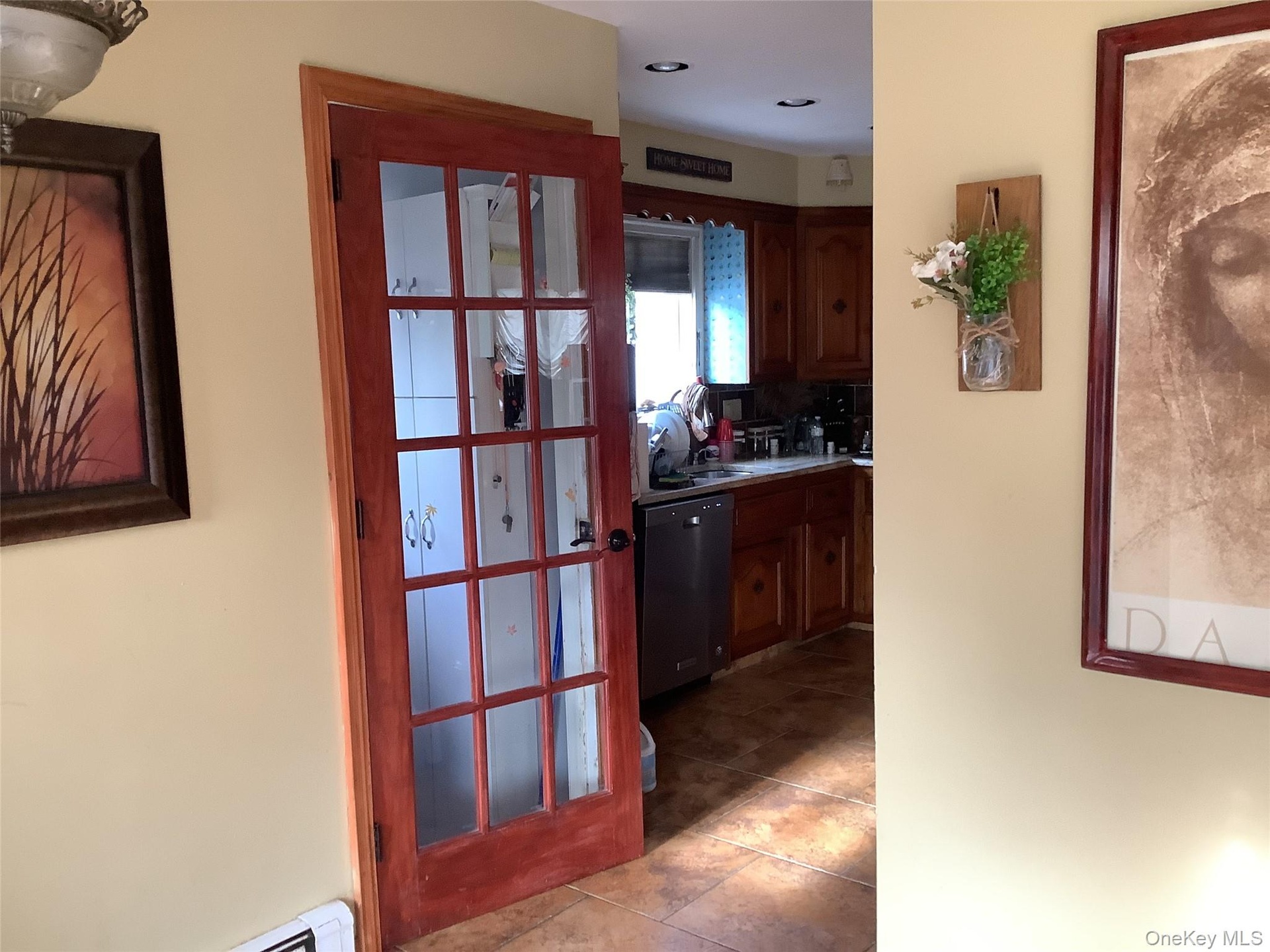 - Kitchen featuring stainless steel dishwasher, a baseboard heating unit, and light tile patterned floors