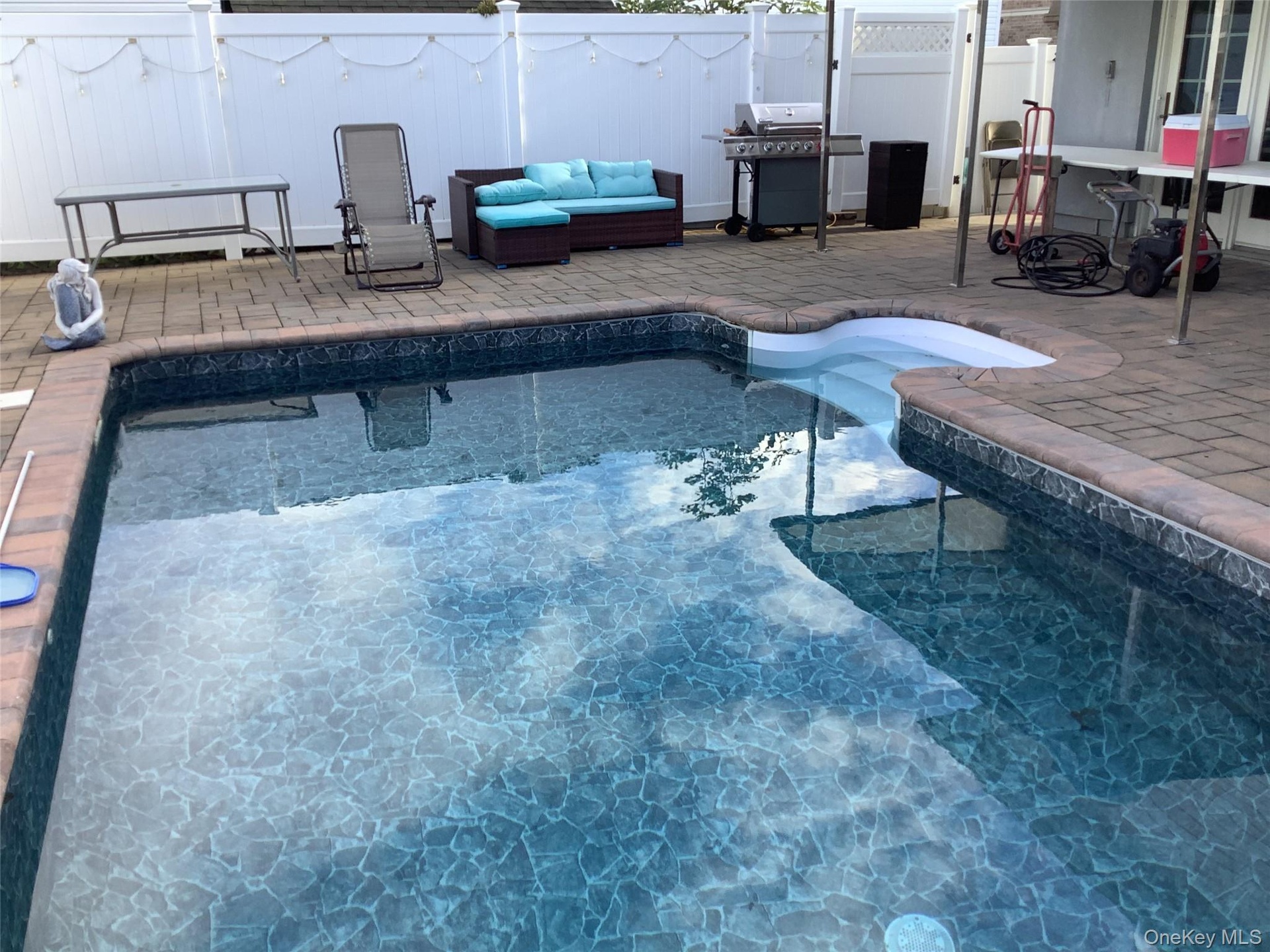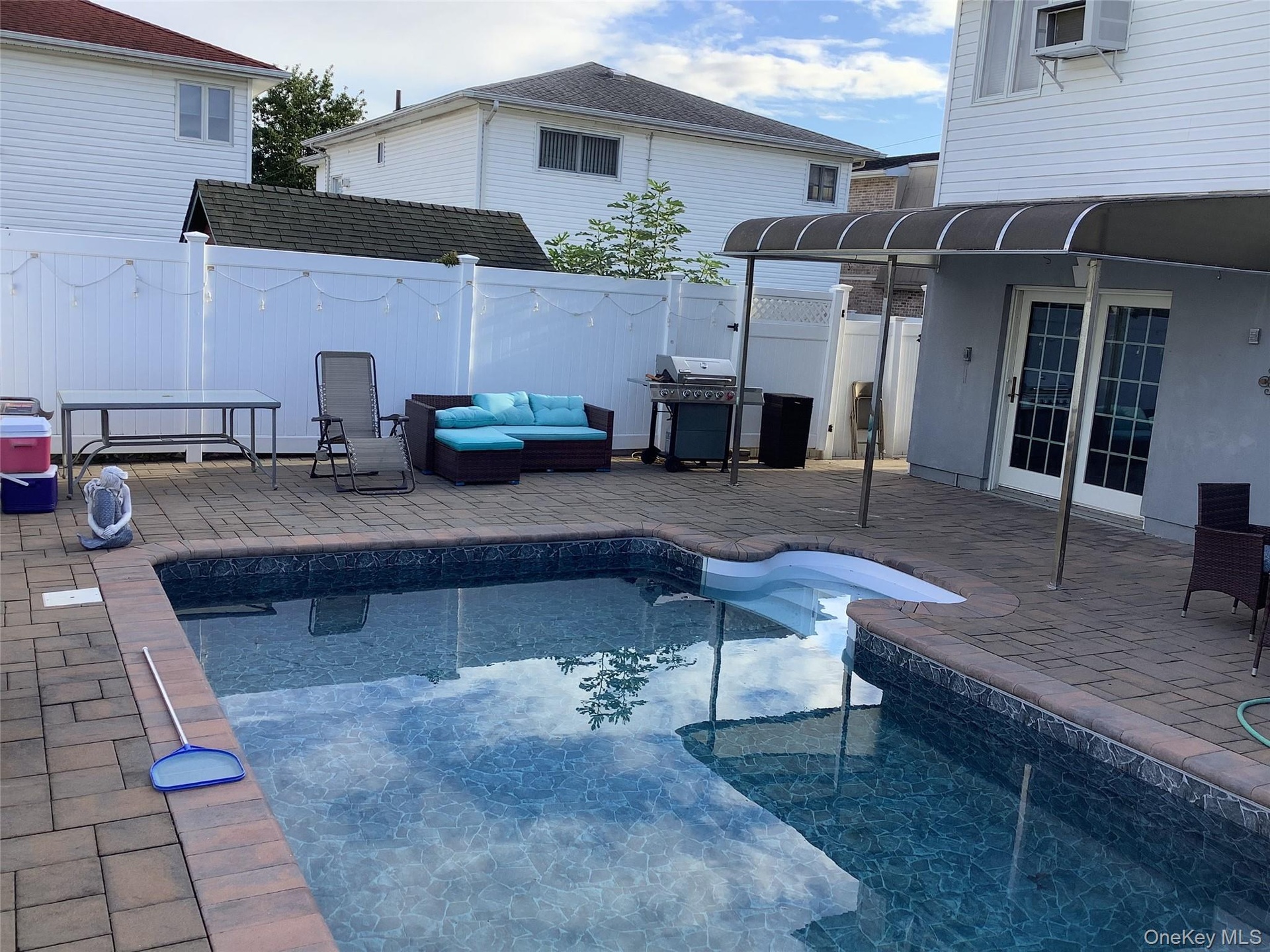 ALONG WITH WASHER AND DRYER. BACK YARD FEATURES A LOVELY RELAXING OASIS..ALONG WITH A BEAUTIFUL SALT WATER HEATED POOL...