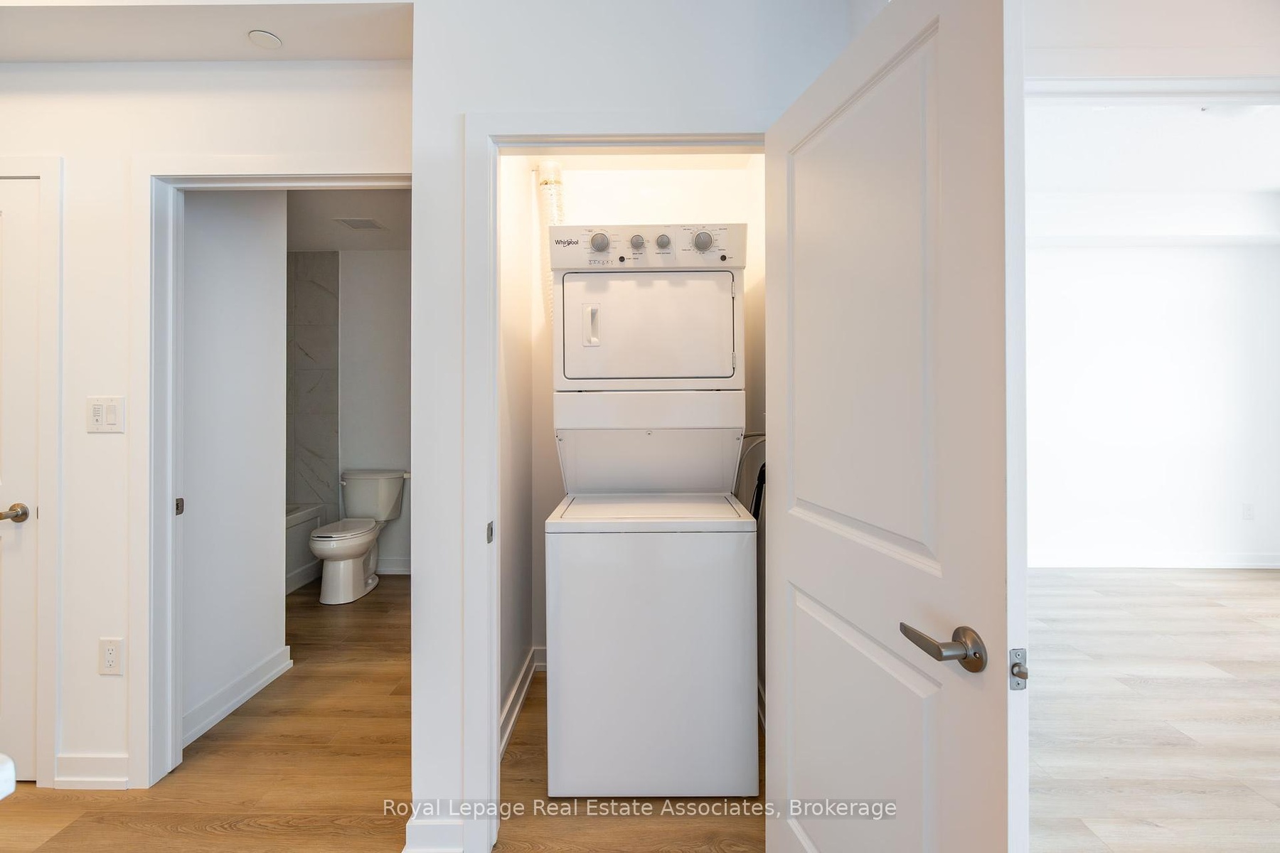 Check out this incredible modern 1+1 unit that is brand new and move-in ready! Underground parking space included. The kitchen offers beautiful finishings throughout, provides a sit-up breakfast bar, and overlooks the great room. Located off the living space is the spacious balcony. Your bedroom retreat features a large walk-in closet and picture window. A great and spacious den space can be used as a home office or additional bedroom space. The convenience of in-suite laundry. Building amenities include; party rooms, bike storage, fitness room with a yoga studio, rooftop patios. Just a short walk to friendly Waterdown village that offers boutique shopping, parks, restaurants, and trails. Located close to GO stations and public transit, makes this great for commuters. Available immediately.