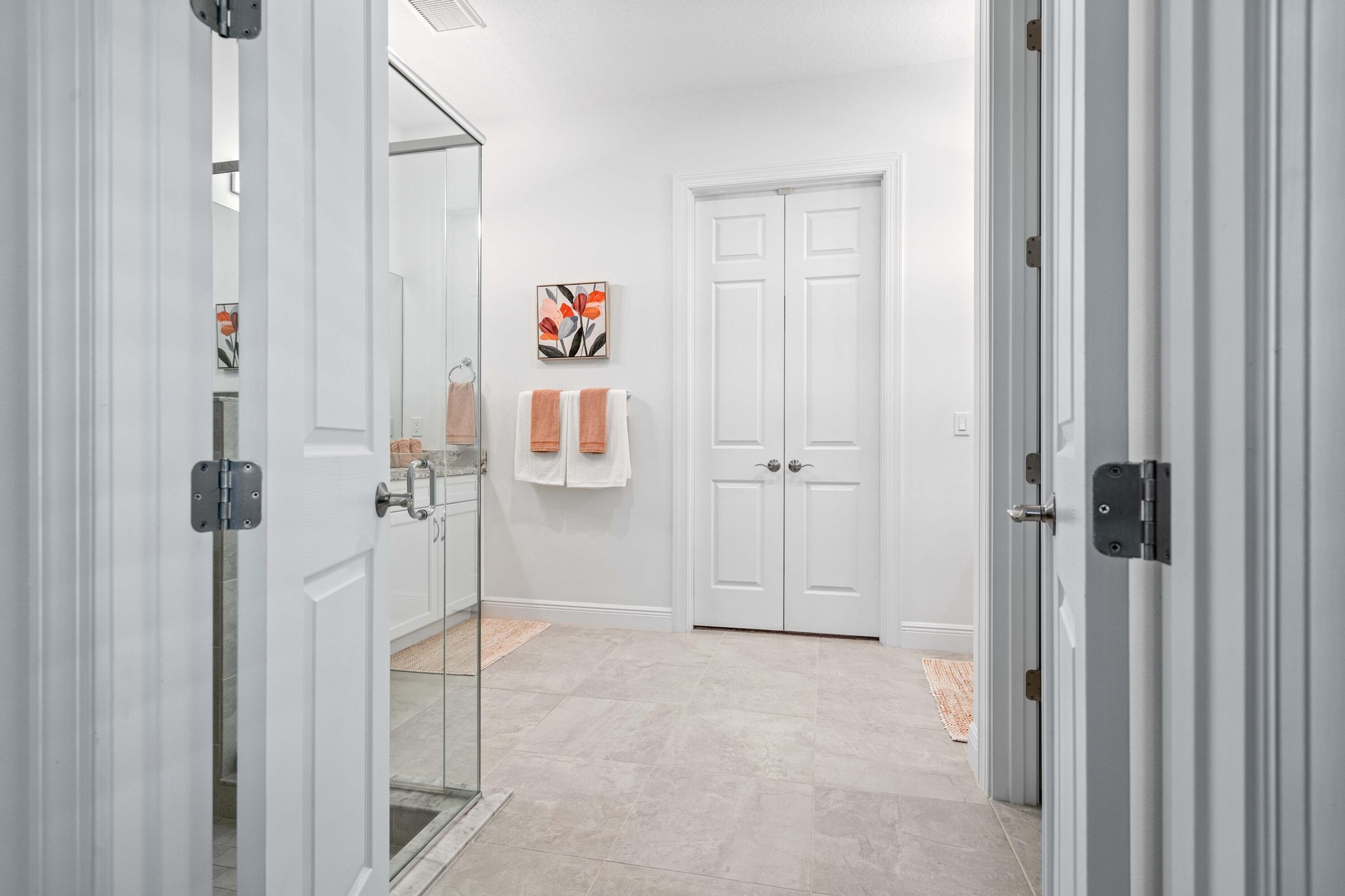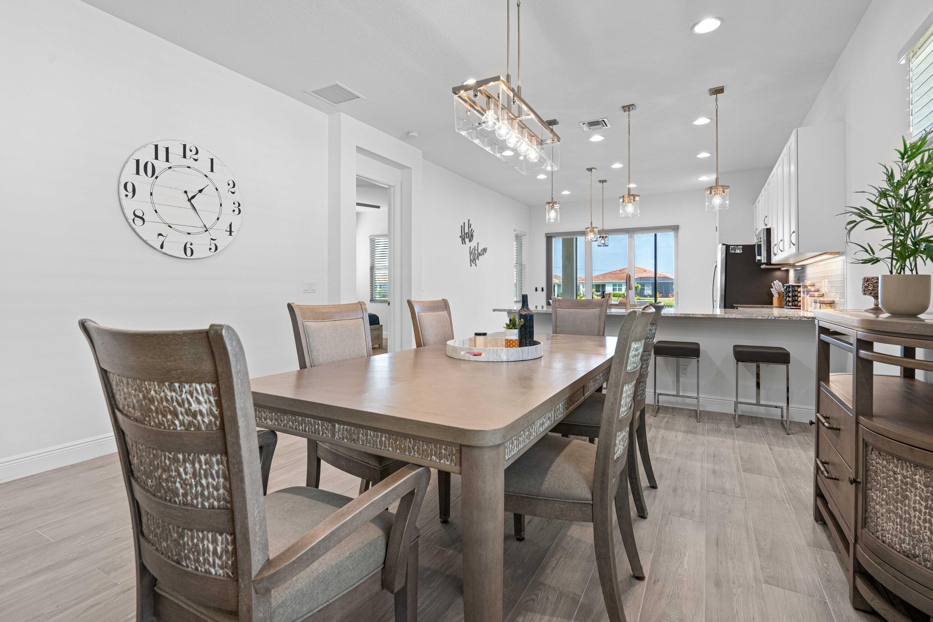 Waterfront 'Casita' Model in Verano PGA Village. Discover lakefront living in this well maintained 2 BR's, 2 BA's, plus large den/office & 2 car garage with epoxy flooring. Laundry room featuring cabinets and utility sink. Built with CBS construction, Barrel tile roof, hurricane impact windows and doors. Volume ceilings & tile in main areas. The open kitchen is a chef's dream, showcasing quartz countertops, a glass backsplash, stainless steel appliances (new refrigerator), 42'' soft-close cabinets, a breakfast bar, island & pantry. The spacious master suite includes a walk-in closet, dual sinks and a seamless glass shower, while the split floor plan ensures privacy. Beautiful Tranquil lake views includes screen enclosed lanai & spacious fenced backyard. ONE YEAR HOME WARRANTY INCLUDED!!