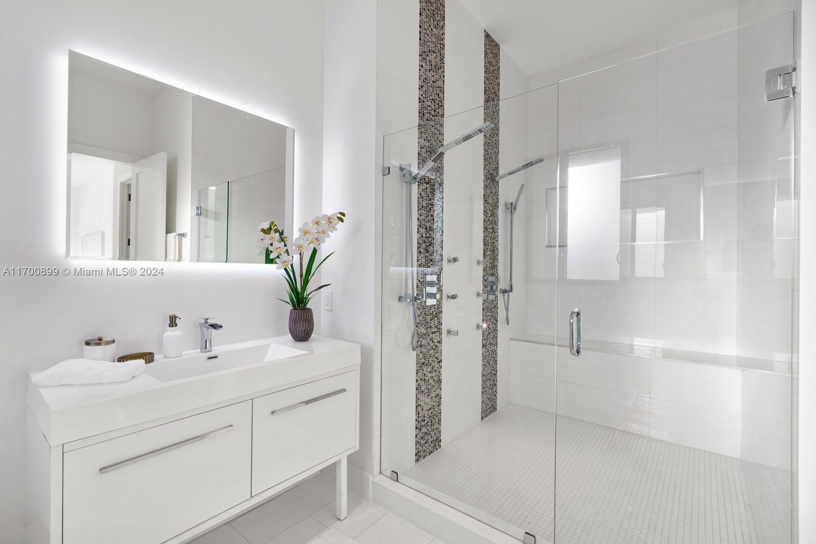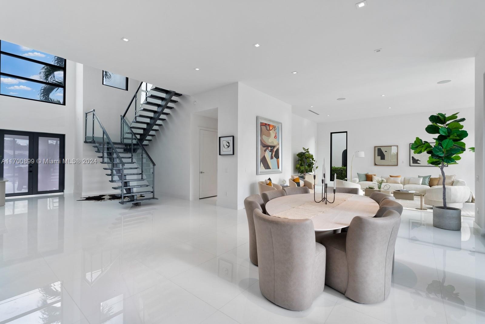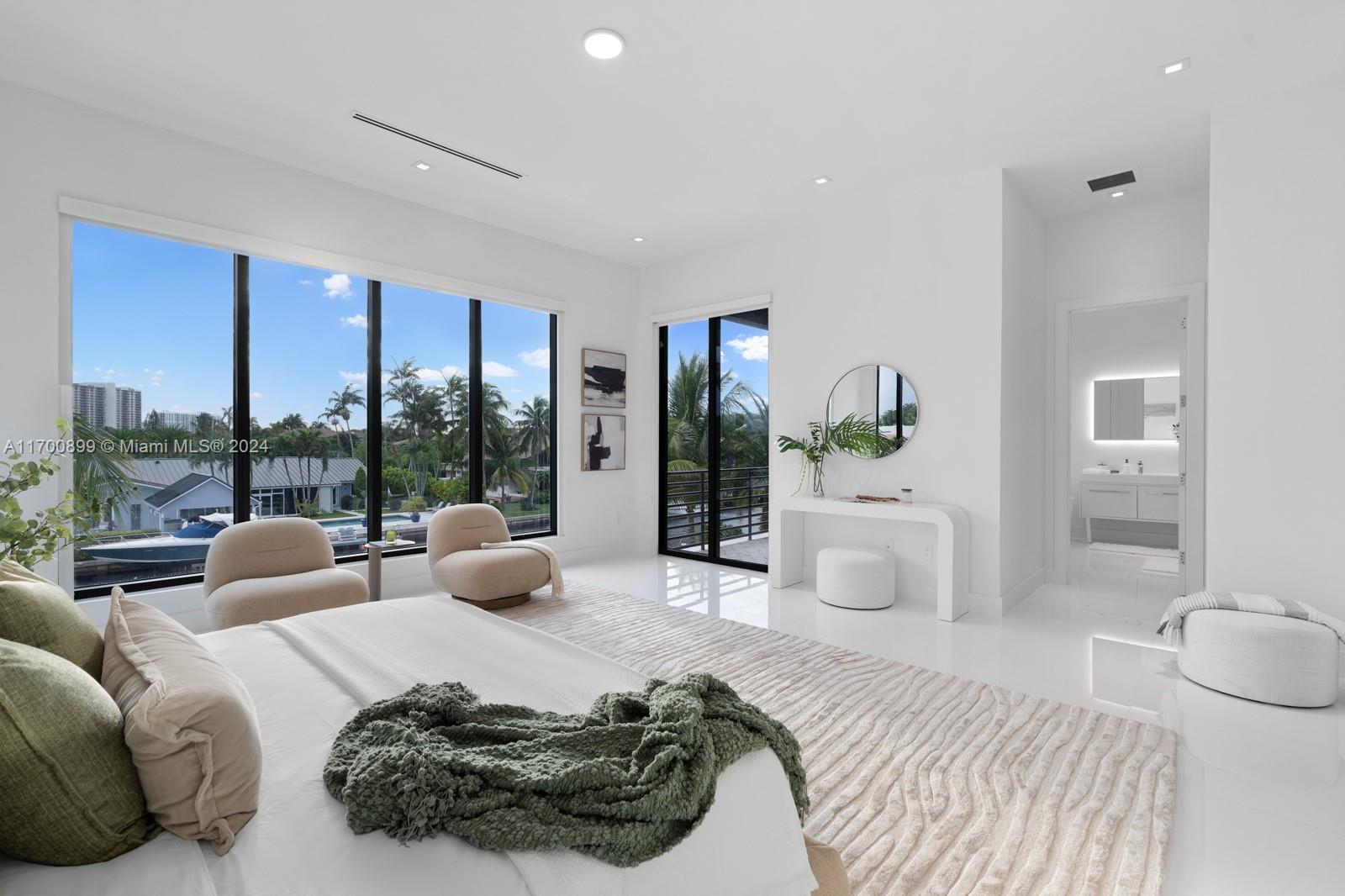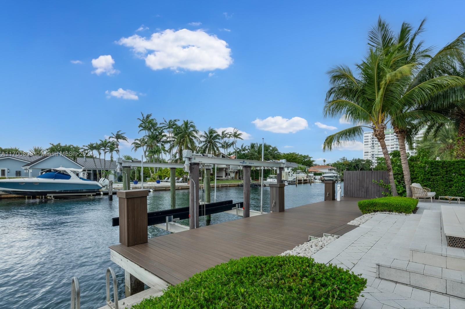 Introducing this stunning two-story waterfront home in the exclusive, guard-gated San Souci Estates. Built in 2016, this 4,800+ SQFT luxury residence boasts 12+ ft high ceilings, an open floor plan, grand entrance w/ double height ceilings, 6 bedrooms, a den/office, and 7 bathrooms. Enjoy 75+ ft of WF with direct bay/ocean access, no fixed bridges, a saltwater pool, jacuzzi, private dock, and boat lift. The chef’s kitchen features a Wolf gas cooktop, Sub-Zero fridge/wine cooler, ample seating space all w/ breathtaking water views. The expansive master suite offers dual walk-in closets, a large shower with tub, separate sinks, + a private balcony. Park your cars in a two-car garage, 4 car driveway! 24/7 security as well