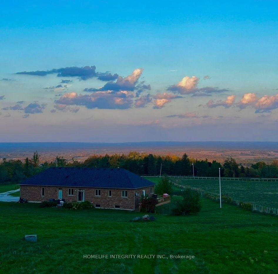 Experience the beauty of country living in this 2015 custom-built home, nestled on 13.38 acres of rolling scenic hills in Mulmur. Just an hour from the GTA, this 3+4 bedroom w/ 3 Full Baths residence offers breathtaking views from sunrise to sunset - perfect for enjoying your morning coffee on the deck. Enjoy Mulmur's breathtaking night skies from your backyard. Enjoy the privacy, the acreage, while being 55 Min drive from Brampton, 30-40 Min from Blue Mountains Resort, Wasaga Beach + More! Featuring a beautiful cathedral ceiling in the living room, an open concept main floor. Get the help you need in the kitchen with 2 separate sinks! Beautiful Hardwood floors. Walkout to a large deck and a large patio. Enjoy some more privacy way out in a cabin a few feet into the scenic greenery. Property extends beyond Cabin into Forestry. The basement is a perfect in-law suite w/out sep/entrance a living room + a den. Boasting with 4 bedrooms, 1 transformed into cozy movie theatres, another into a luxury closet, another into your own fitness studio and finally the 4th is a bedroom.Heated floors throughout basement!! All can be easily converted back to bedrooms. The expansive acreage provides endless possibilities-build your dream pool, tennis court, walking trails, outdoor sauna!!! Please check out the views from the cabin, best for camp fires or relaxing in privacy conveniently sitting at the top of the hill with Panoramic views of New Tecumseth, Shelburne and parts of Barrie .Please see virtual tour!!!