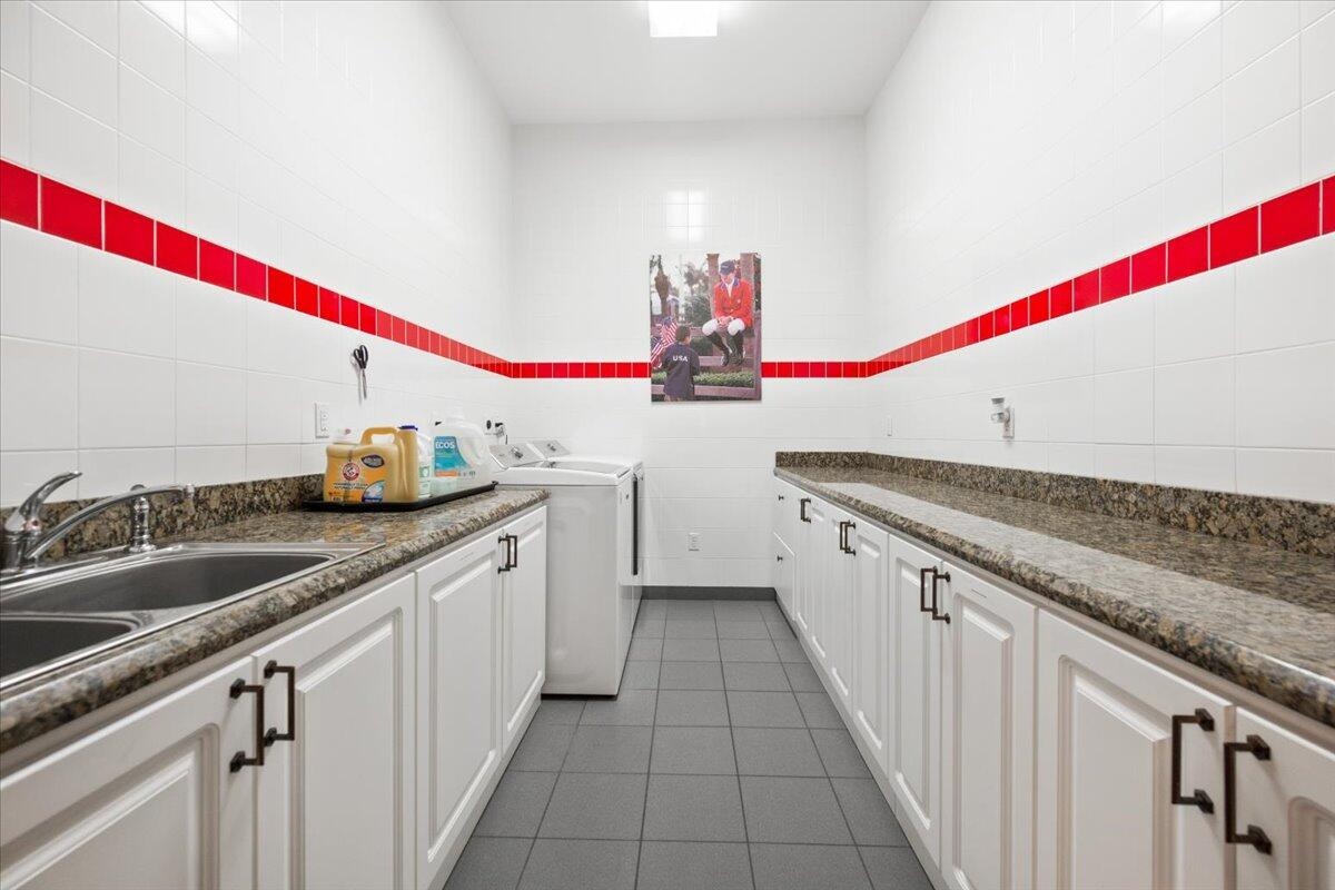 Situated within the gates of Grand Prix Village this 20 stall stable was designed and maintained by a top equestrian professional. Enter into this stunning stable you will be impressed with the beautiful tongue and groove ceilings, brick front stalls and wide aisles. The stable is fully rubber matted, including the stalls. The interior features include; an office with a full bathroom, a large tack room with a kitchen, a second office, separate farrier and veterinary areas, wash and grooming areas, laundry room and secure med room. There are 3 enclosed garages and a flexible space with a full bath that could easily be converted to living quarters. Outside you will discover the 130X240 COVERED ARENA with GGT footing and multiple paddocks. Please see documents for a full list of amenities.