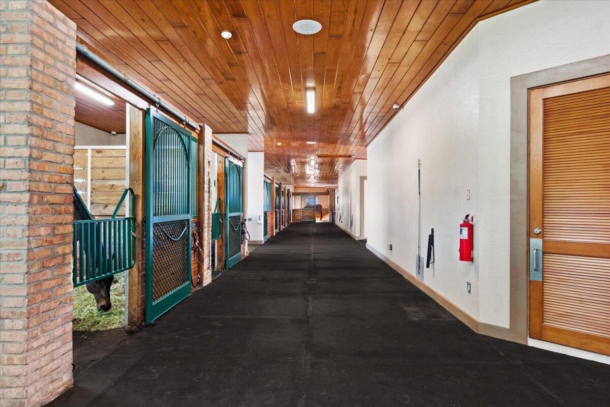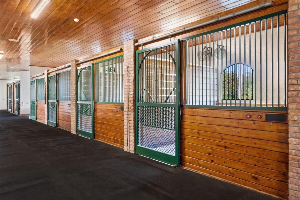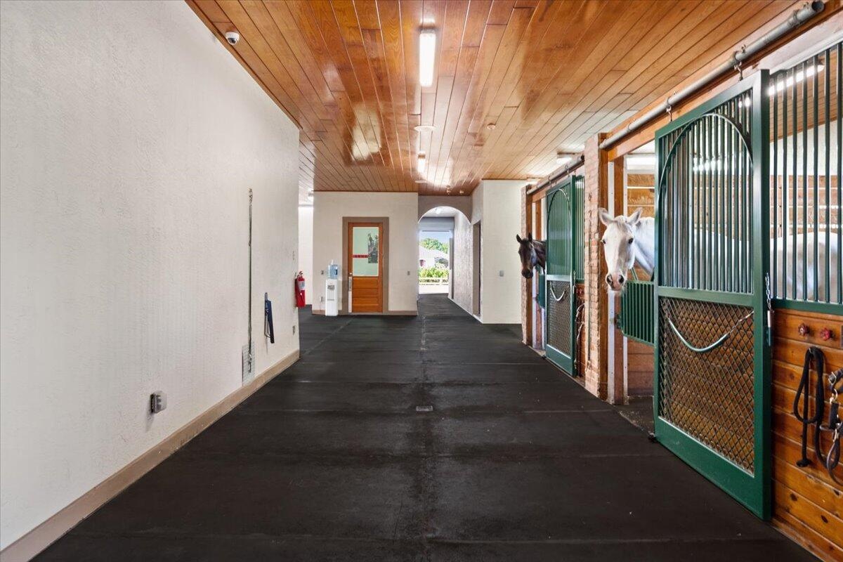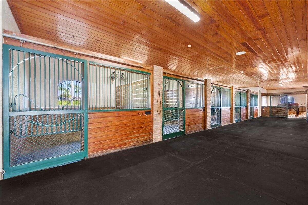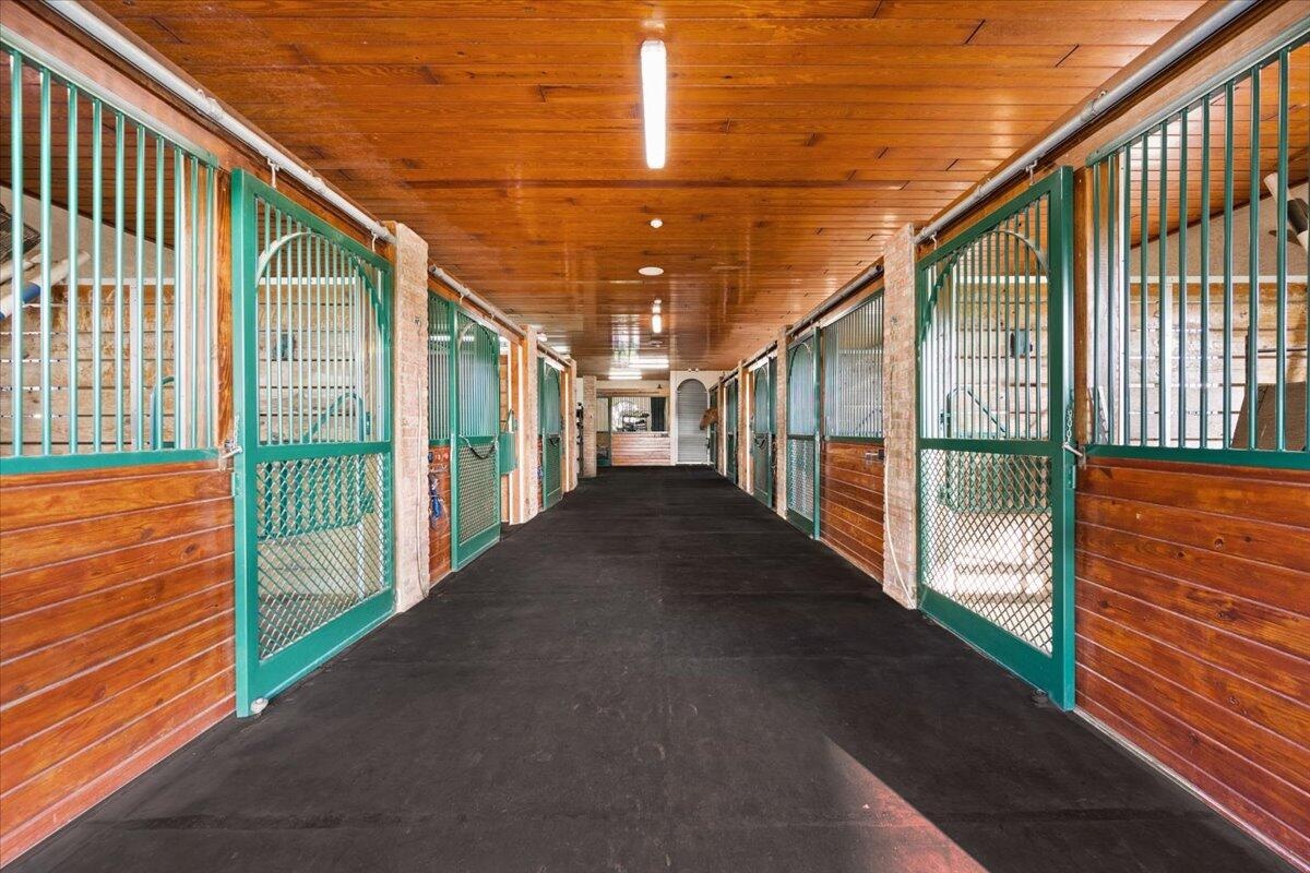 DescriptionSituated within the gates of Grand Prix Village this 20 stall stable was designed and maintained by a top equestrian professional. Enter into this stunning stable you will be impressed with the beautiful tongue and groove ceilings, brick front stalls and wide aisles. The stable is fully rubber matted, including the stalls. The interior features include; an office with a full bathroom, a large tack room with a kitchen, a second office, separate farrier and veterinary areas, wash and grooming areas, laundry room and secure med room. There are 3 enclosed garages and a flexible space with a full bath that could easily be converted to living quarters. Outside you will discover the 130X240 COVERED ARENA with GGT footing and multiple paddocks. Please see documents for a full list of amenities.Amenities- Attic