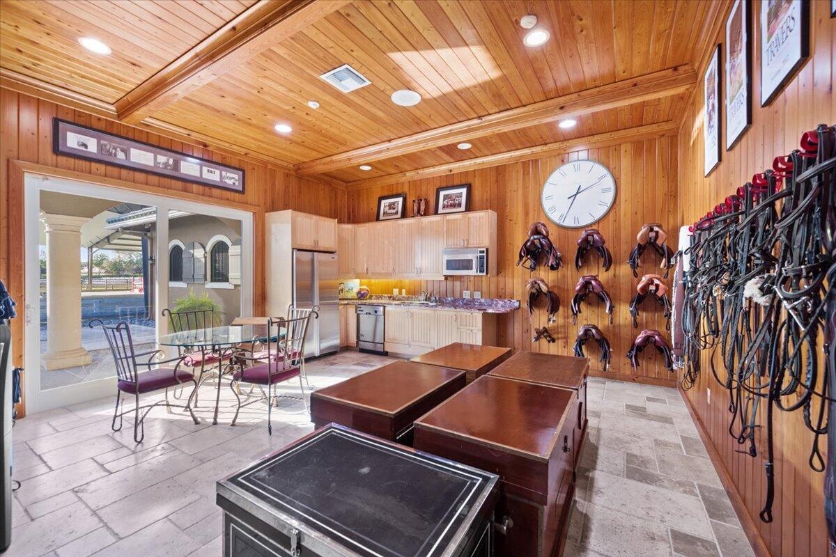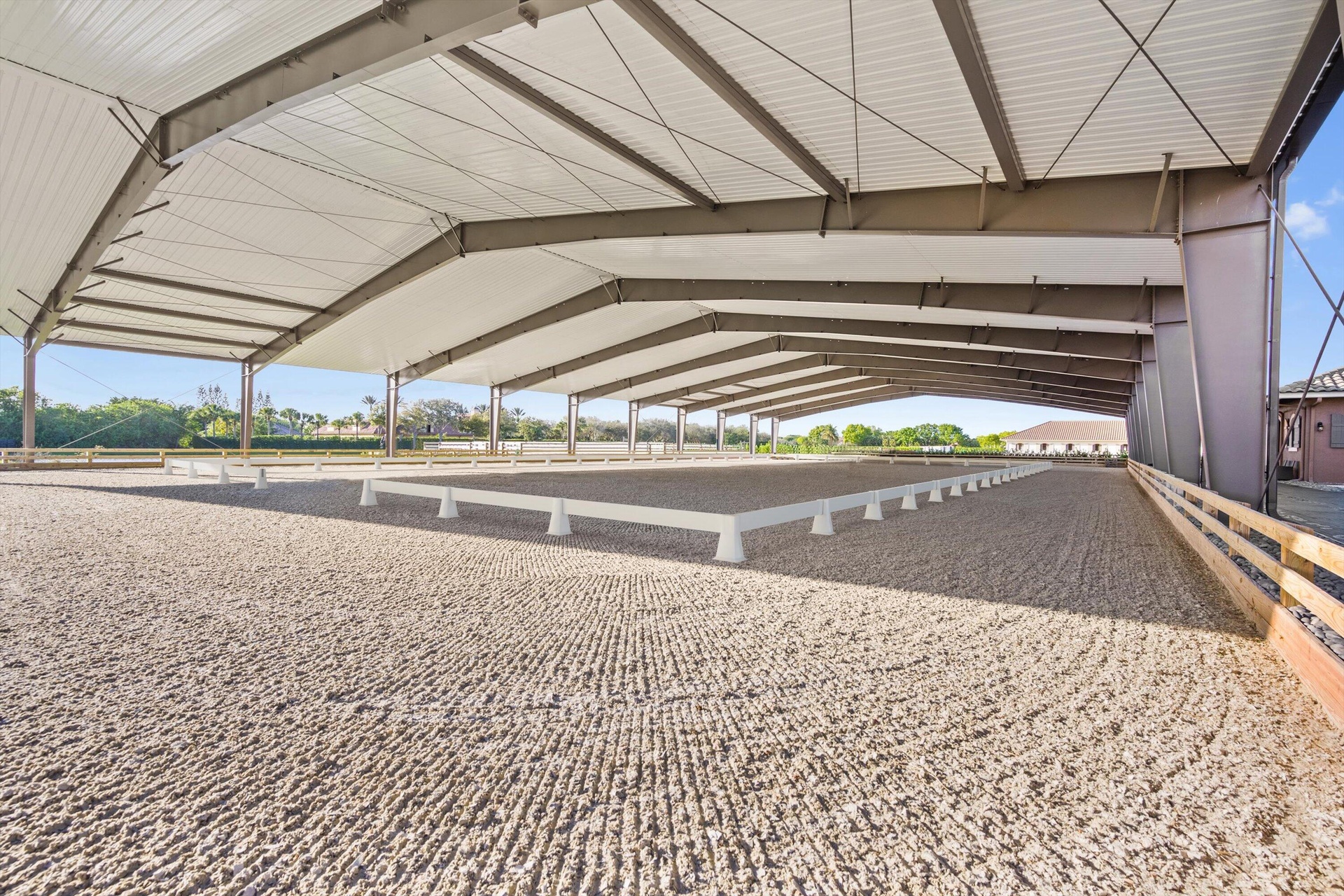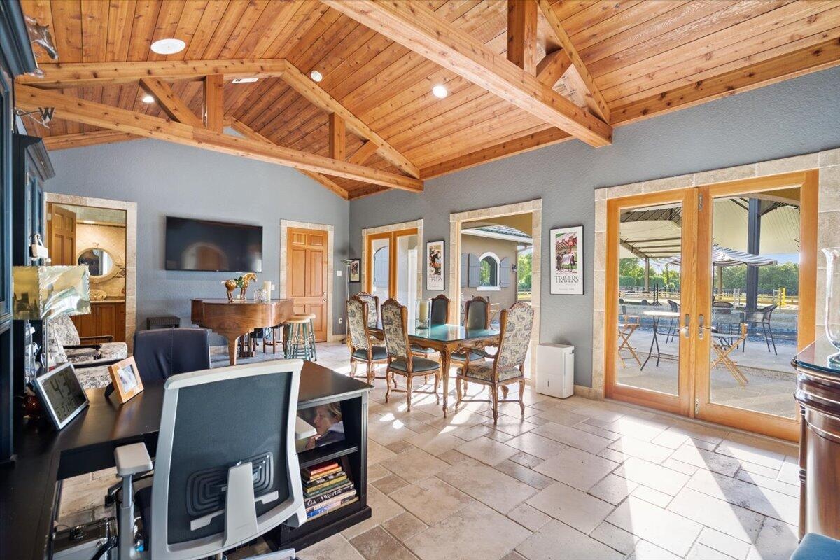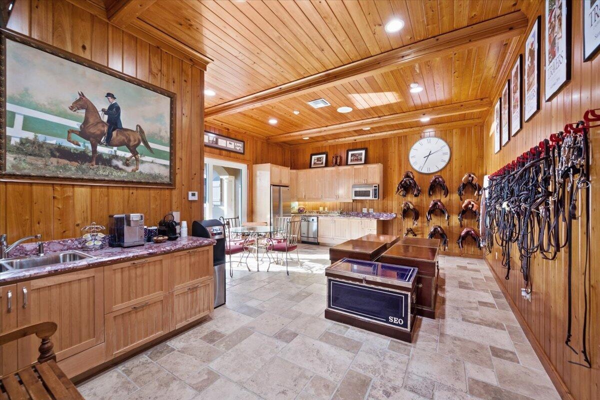 DescriptionSituated within the gates of Grand Prix Village this 20 stall stable was designed and maintained by a top equestrian professional. Enter into this stunning stable you will be impressed with the beautiful tongue and groove ceilings, brick front stalls and wide aisles. The stable is fully rubber matted, including the stalls. The interior features include; an office with a full bathroom, a large tack room with a kitchen, a second office, separate farrier and veterinary areas, wash and grooming areas, laundry room and secure med room. There are 3 enclosed garages and a flexible space with a full bath that could easily be converted to living quarters. Outside you will discover the 130X240 COVERED ARENA with GGT footing and multiple paddocks. Please see documents for a full list of amenities.Amenities- Attic