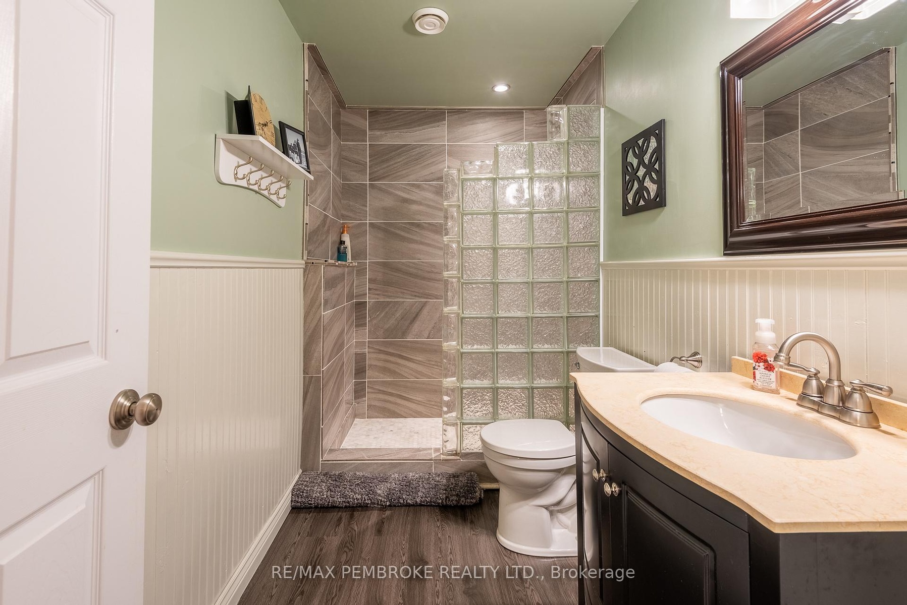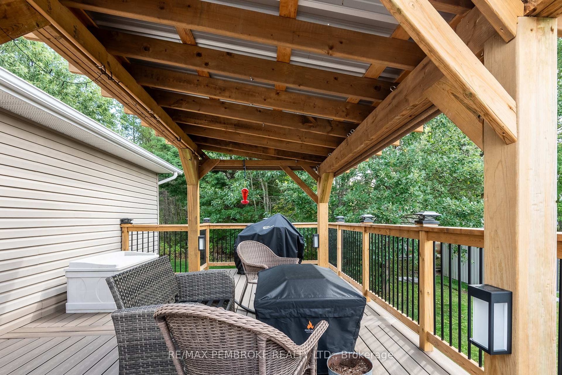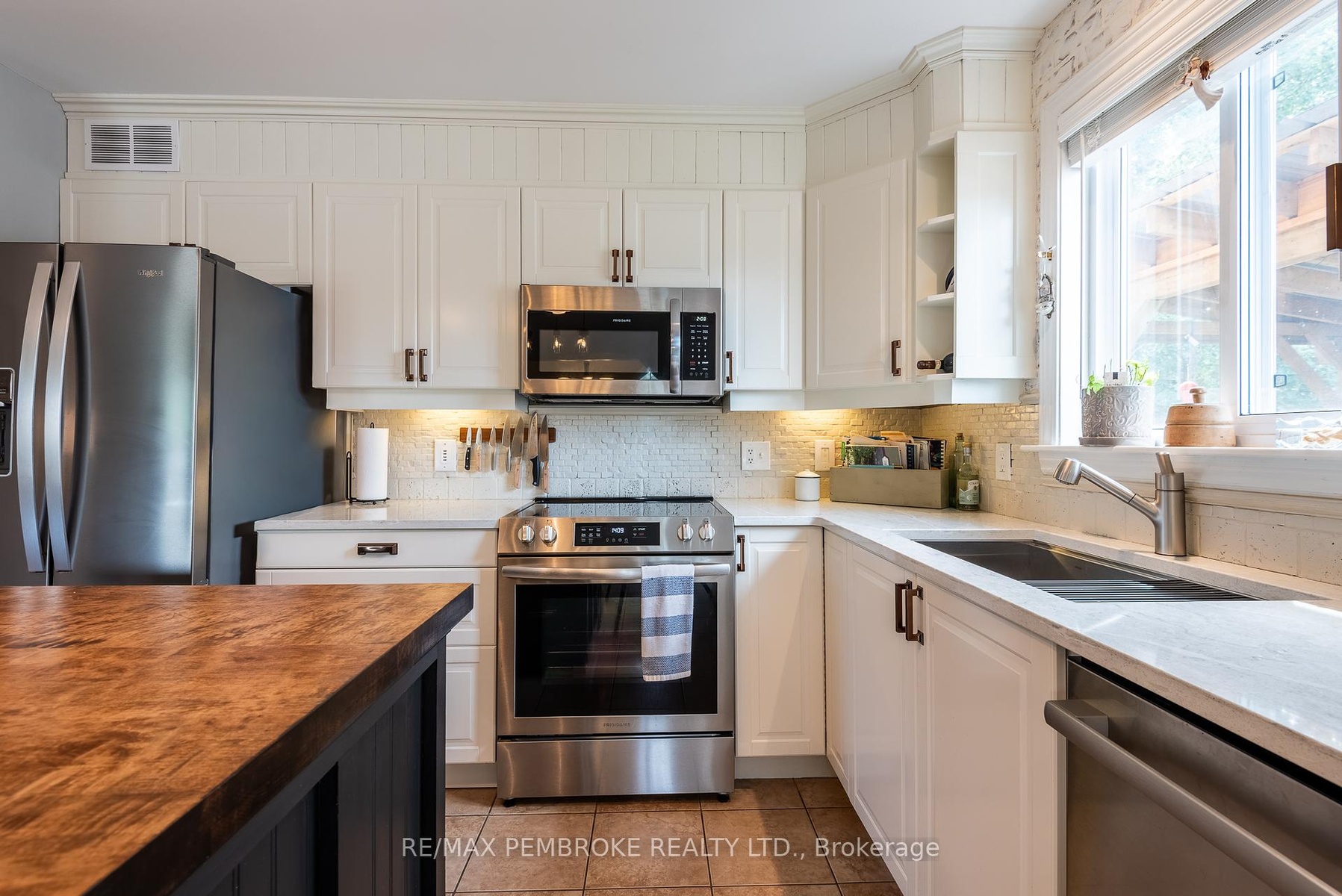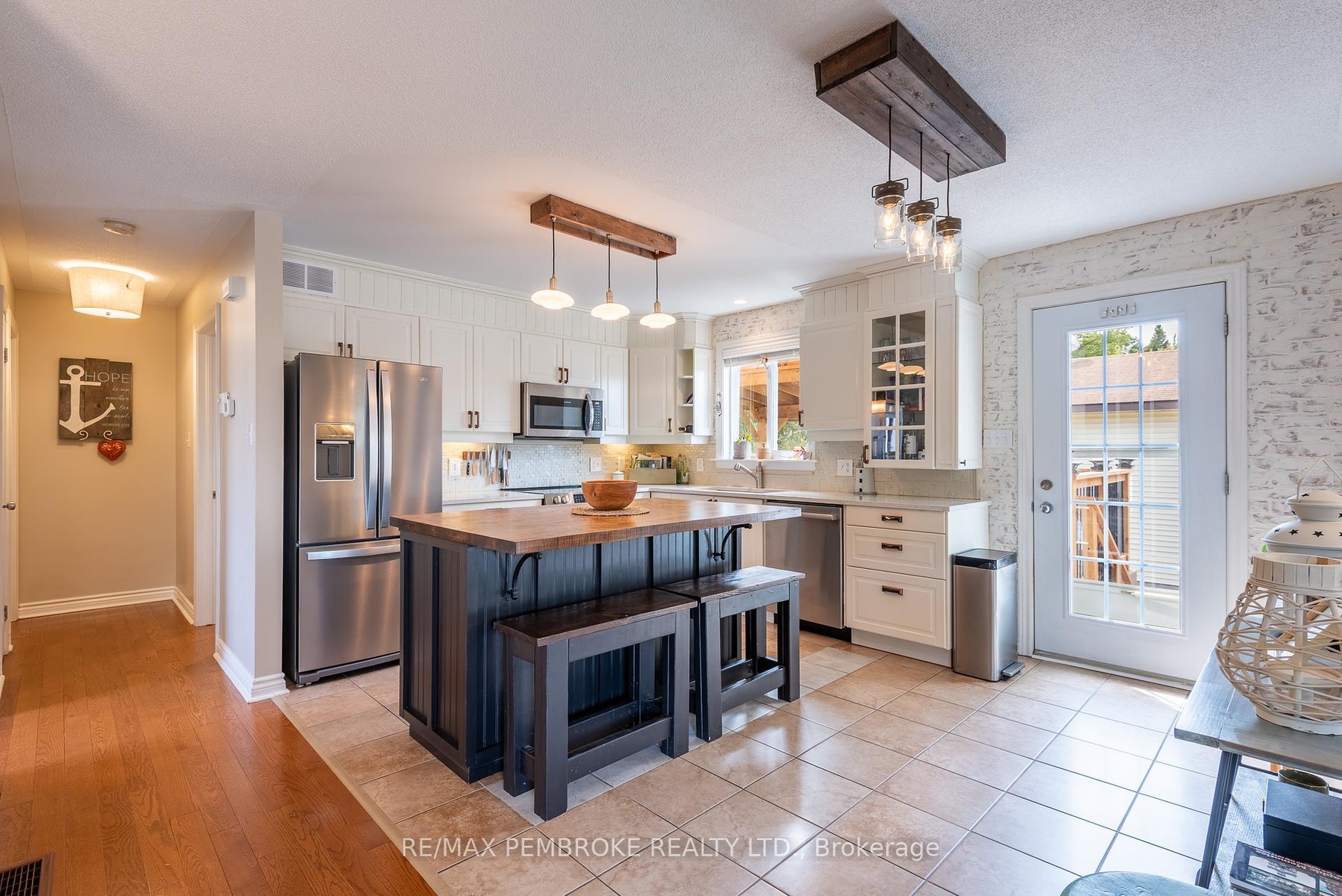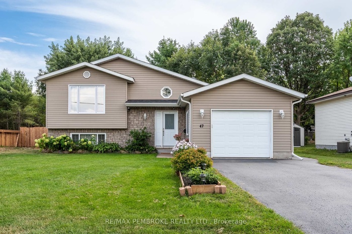 DescriptionStep into this beautifully updated and meticulously maintained split-entry home in the heart of Petawawa. This home is in the perfect location; walkable to Centennial Park, restaurants and just a few minutes to Petawawa Point Beach, Garrison Petawawa and 15 minutes to CNL/AECL. The outdoor space surrounding this home will entice you to spend your autumn and summer evenings on the deck under the pergola, overlooking your own forest. Inside, the main level offers an open-concept eat-in kitchen with access to the deck. The kitchen features modern cabinetry with soft-close hardware, quartz countertops, newer stainless steel appliances, and a stunning custom-built island with a maple top. A bright living room, a full bathroom with a double vanity, and two large bedrooms complete this level. The lower level awaits with a cozy family room, a convenient office with a sliding frosted door and built-in cabinetry for additional storage, a den and a third bedroom. The den and office could also host a home gym or kids' playroom. The lower-level bathroom was recently renovated and has a custom shower with a stylish glass block wall. In addition to many new appliances, other recent updates to the property include: shingles (2023), upper bedroom, bathroom and living room windows (2023), efficient gas furnace (2024), and composite decking (2024). This home is truly move-in ready and awaits its new owners. 24 Hour Irrevocable on any written Offer.Amenities- Air Exchanger