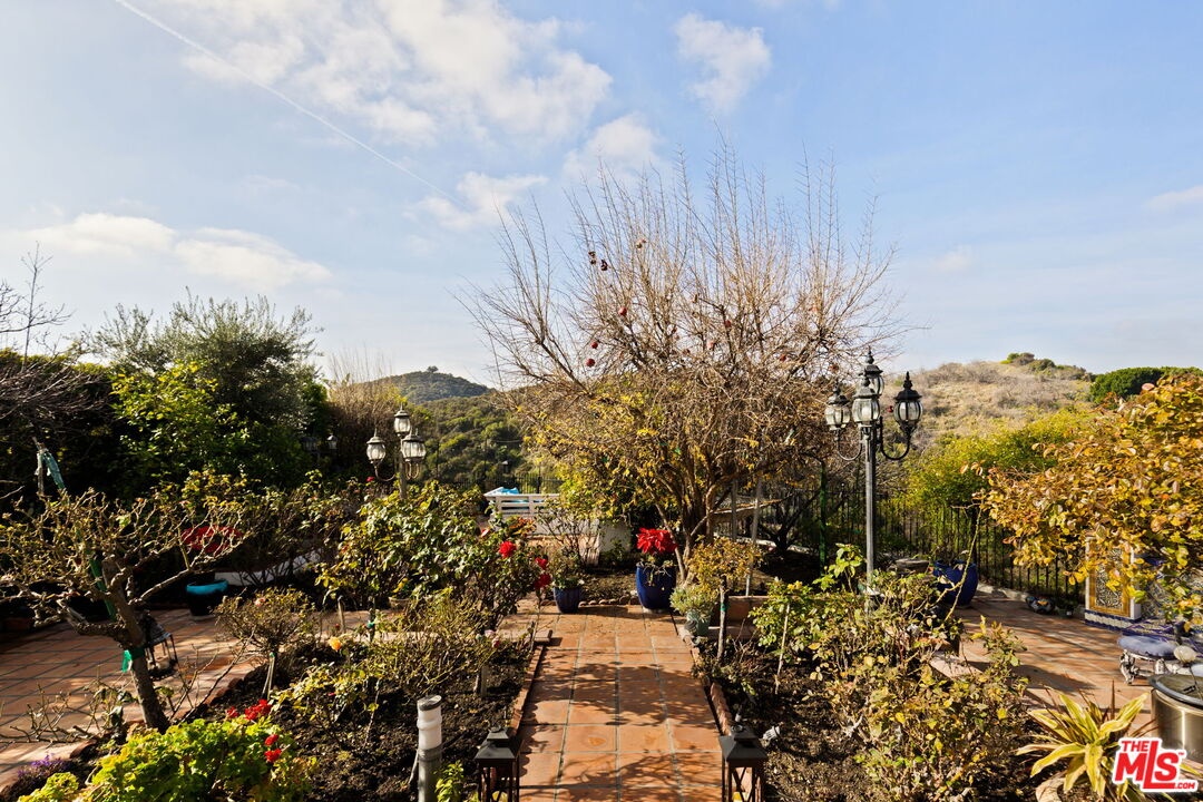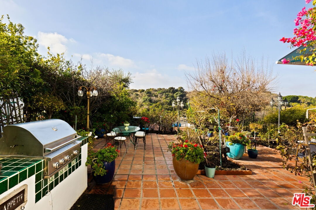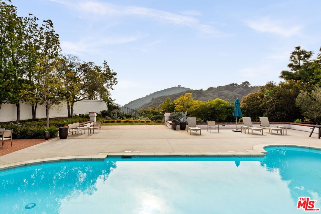 Welcome to your very own Mediterranean mountaintop retreat, behind gates in Brentwood's sought-after Mountaingate community. Wrapped with lush gardens and fruit trees, the home seamlessly blends old-world charm with modern upgrades and amenities. Enjoy canyon, city and ocean views, from the plush cabana, spa tub, various balconies and large windows across the 5,000 square foot residence. On the main level, a newly-built illuminated onyx wet bar connects the foyer with the living and dining rooms, serving as the ideal space for entertaining a large gathering, all crowned with exquisite Baccarat crystal chandeliers. A chef's kitchen with new appliances, expansive center island and abundant storage, spills out to the garden through French doors. A grand staircase leads to a hotel style primary suite complete with a sitting area, private balcony with ocean views, newly renovated spa-like bathroom with freestanding tub and large walk-in closet. Other amenities include an outdoor kitchen with grill and sink, massage room, exercise room, three-car garage, new hardwood floors, and over $600k in recent upgrades throughout. All this, behind gates with 24/7 security and easy access to the golf club, hiking trails, 405 freeway, and the world class dining and shopping of Brentwood and Santa Monica.
