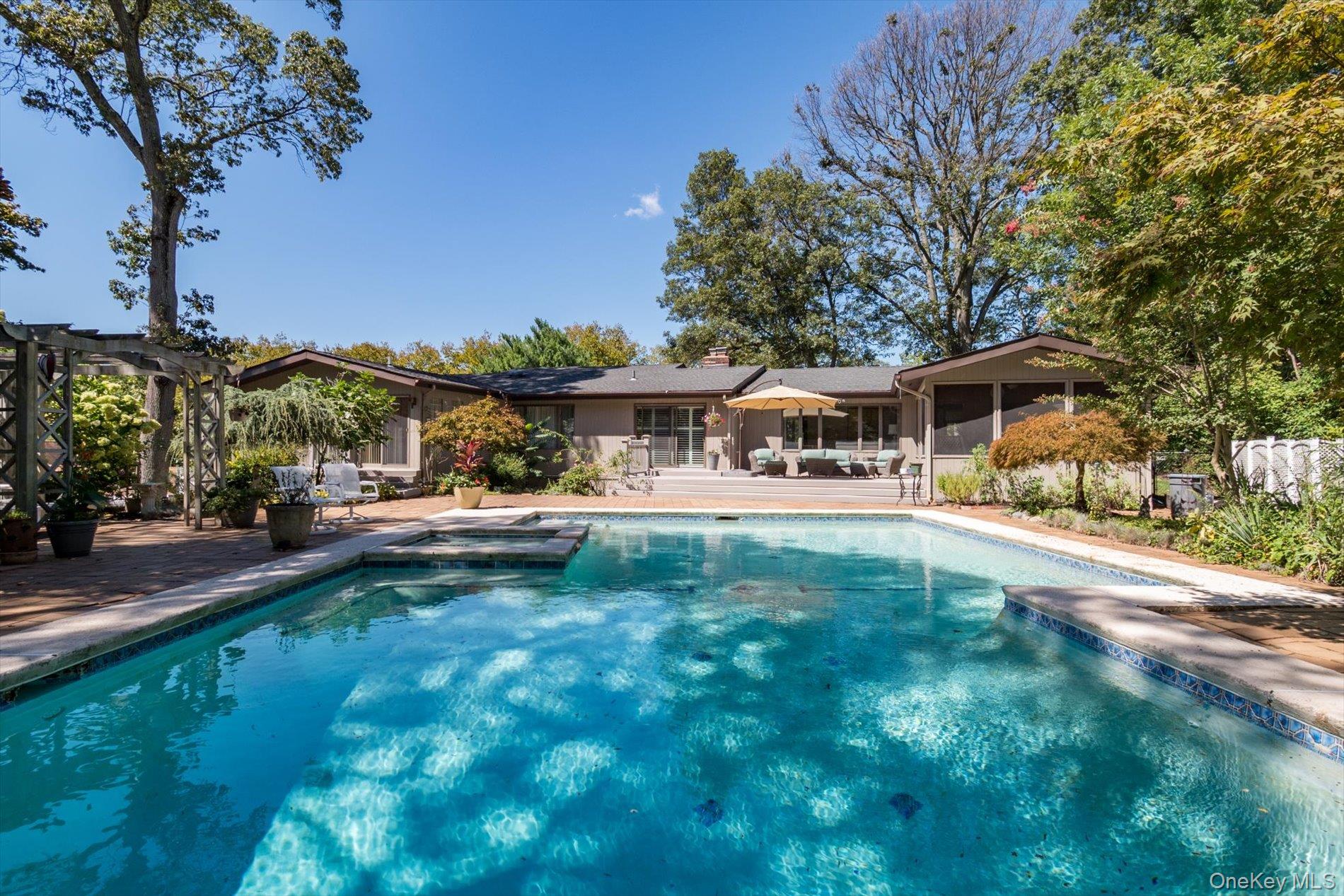 Step outside to your very own backyard oasis. The stunningly landscaped grounds feature lush, pristine gardens and a sparkling pool, perfect for entertaining or simply relaxing in total privacy.