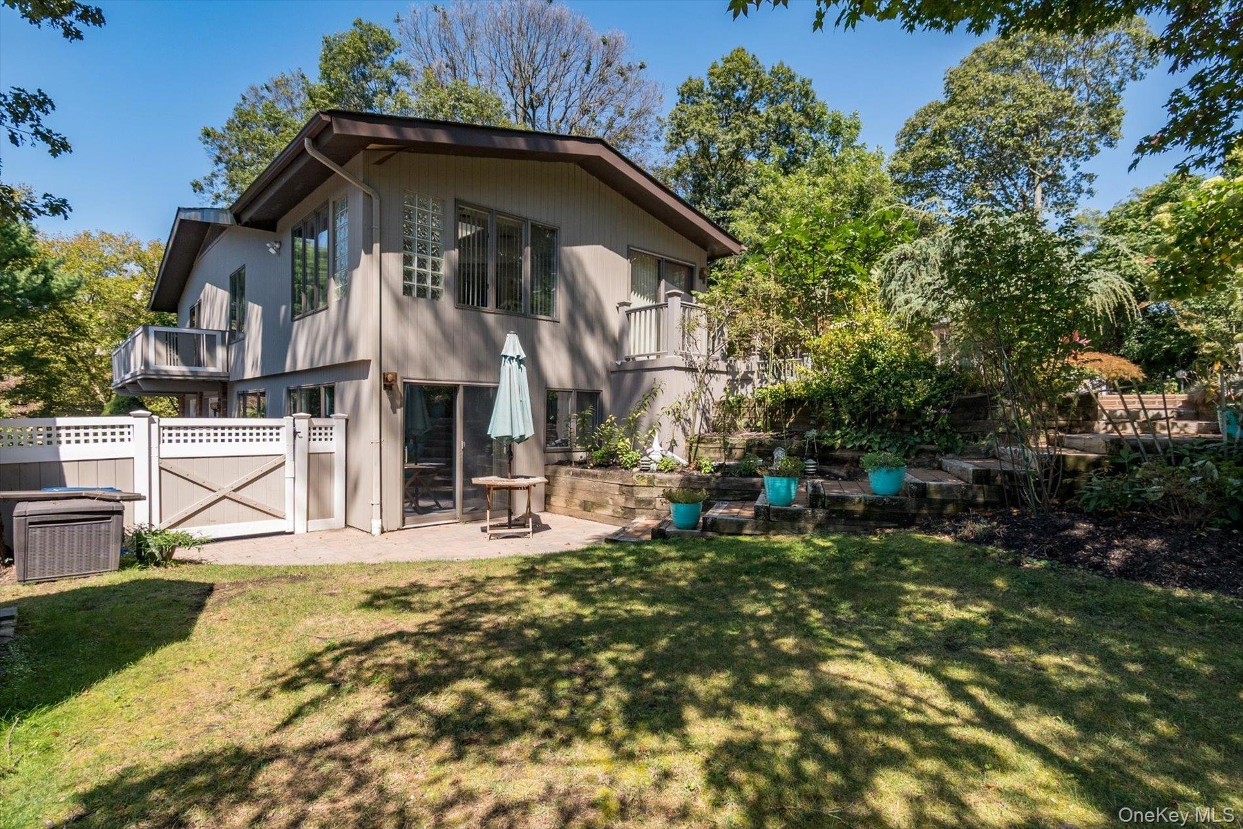 - Rear view of house featuring a balcony, a gate, and a patio