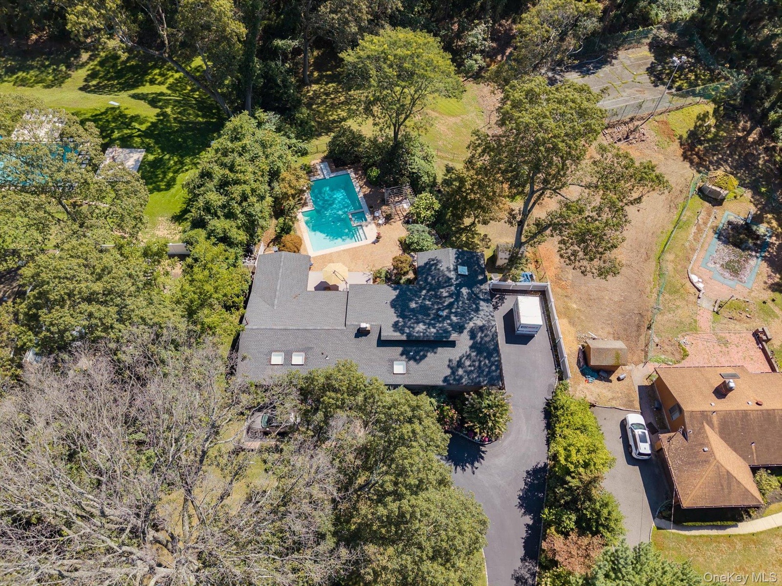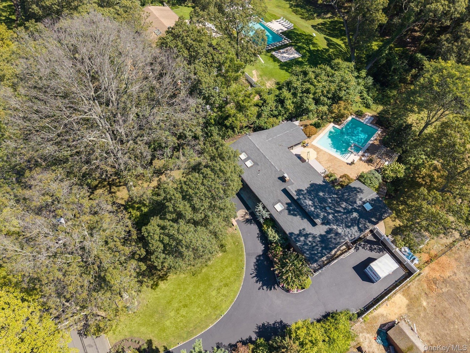 - Aerial view of a pool