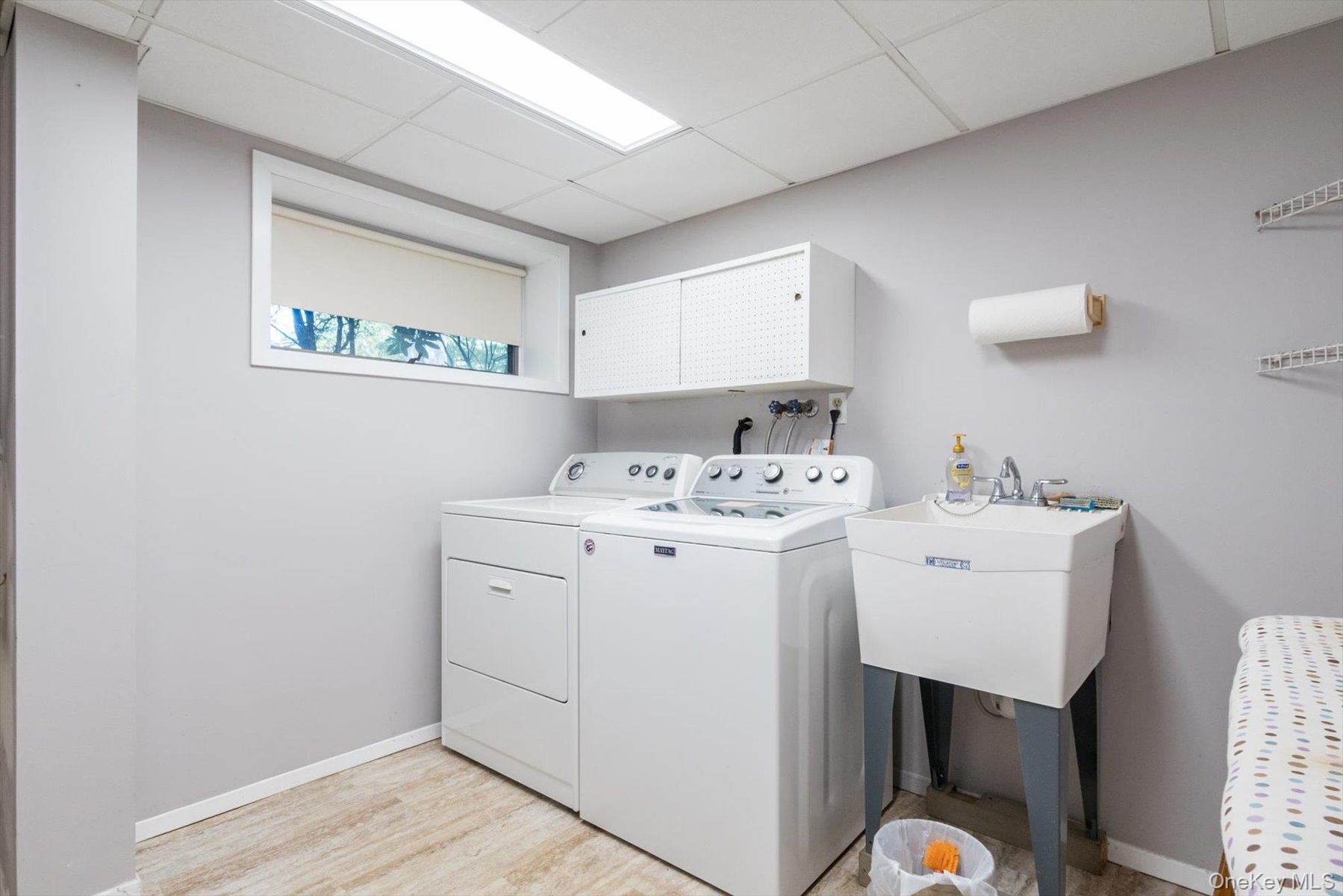 - Laundry area with separate washer and dryer and light wood-style floors