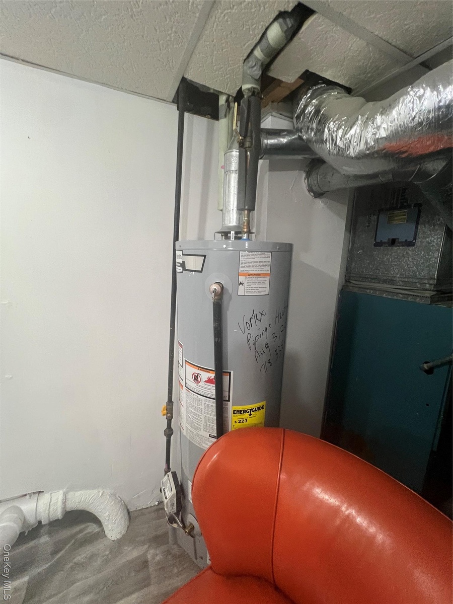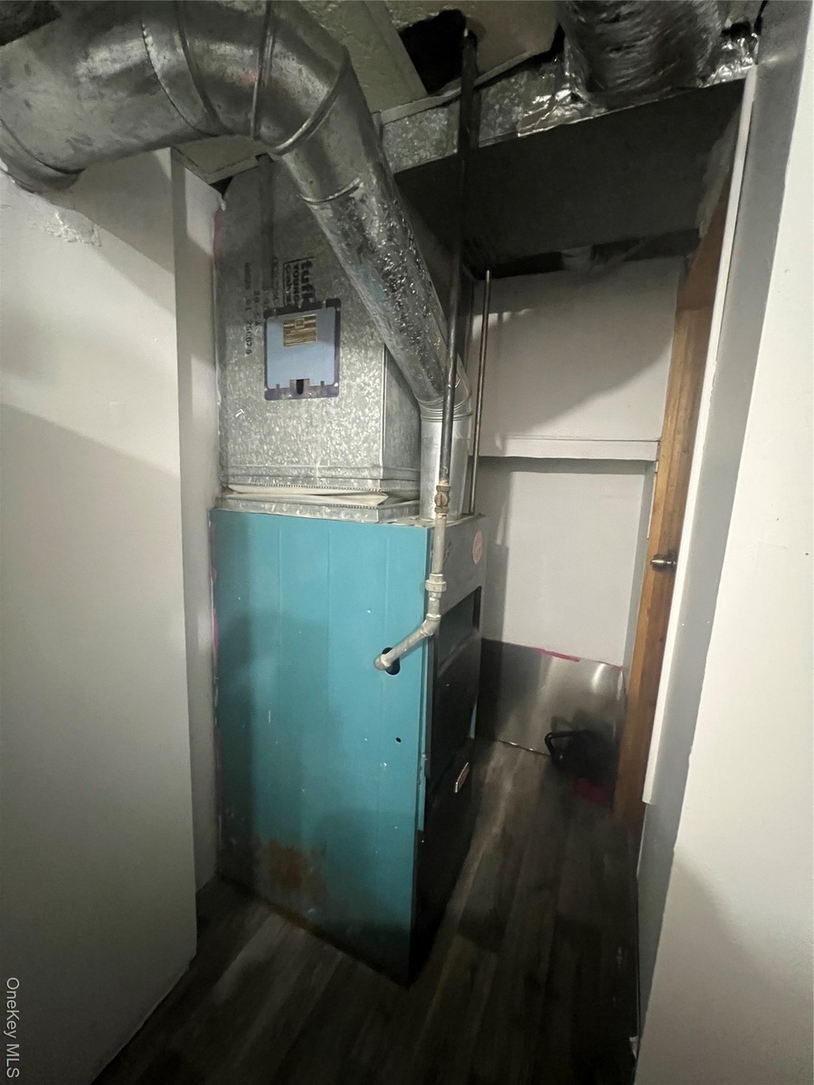 - Laundry area featuring dark wood finished floors, separate washer and dryer, and water heater