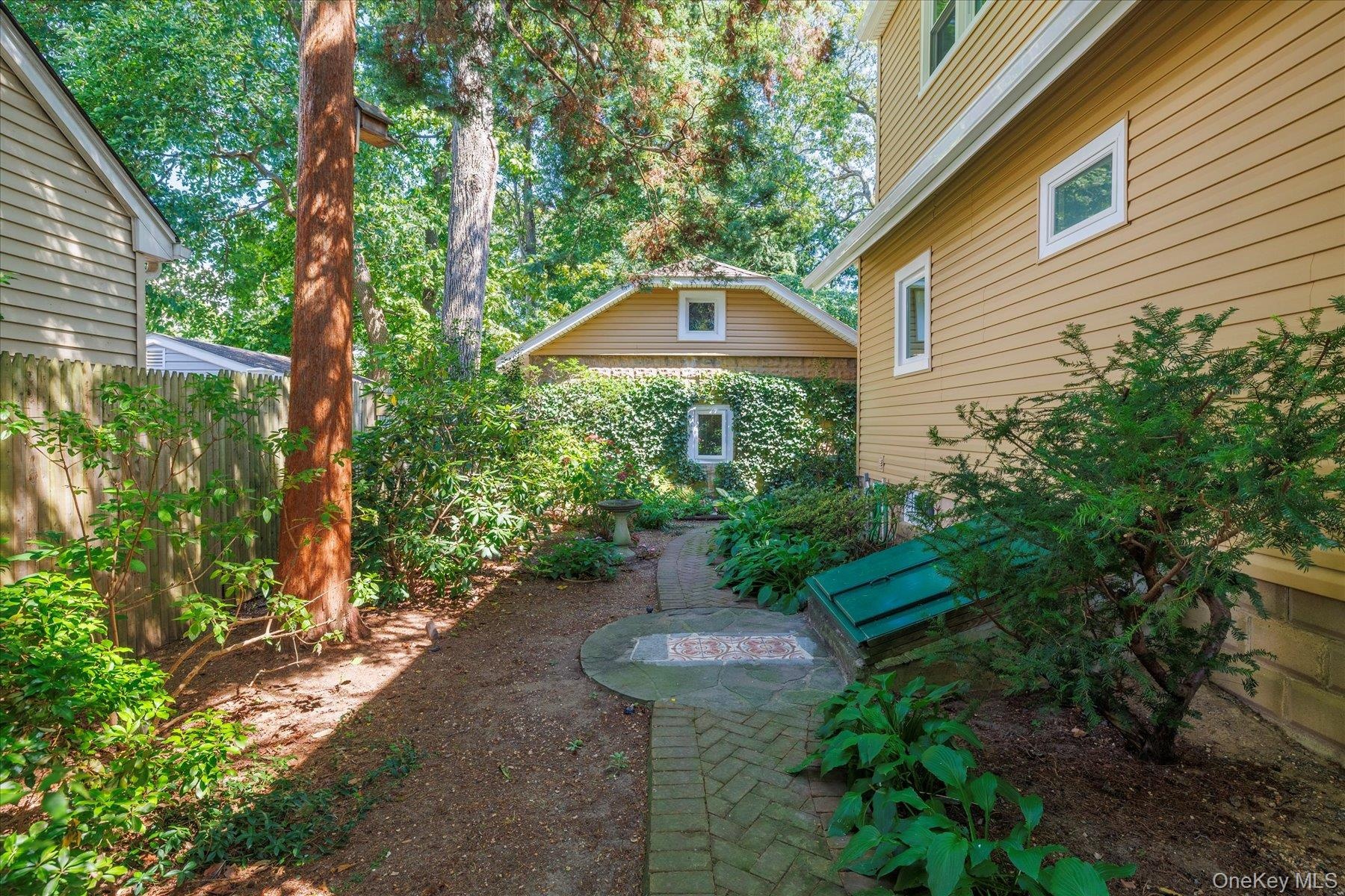 CALLING ALL GARDEN ENTHUSIAST's! Welcome to this enchanting 3/4 Bd home nestled in the heart of Baldwin. If you have ever dreamed of a truly unique house like no other, this is it! Tucked away on an oversize 150 deep lot, you feel as if you are upstate yet you are actually only blocks from the LIRR, Schools, and Shops. The yard contains gorgeous specimen's of tree's, flowers, vegetable's, fruit's, and herb's. Featuring a beautiful courtyard that offers tranquility and perfect space for entertaining. A Car Charging Station and Outdoor Shower w/hot and cold water also included. The charming cottage like garage would also be a wonderful Art Studio/