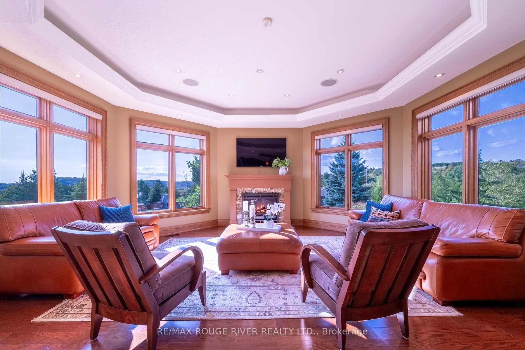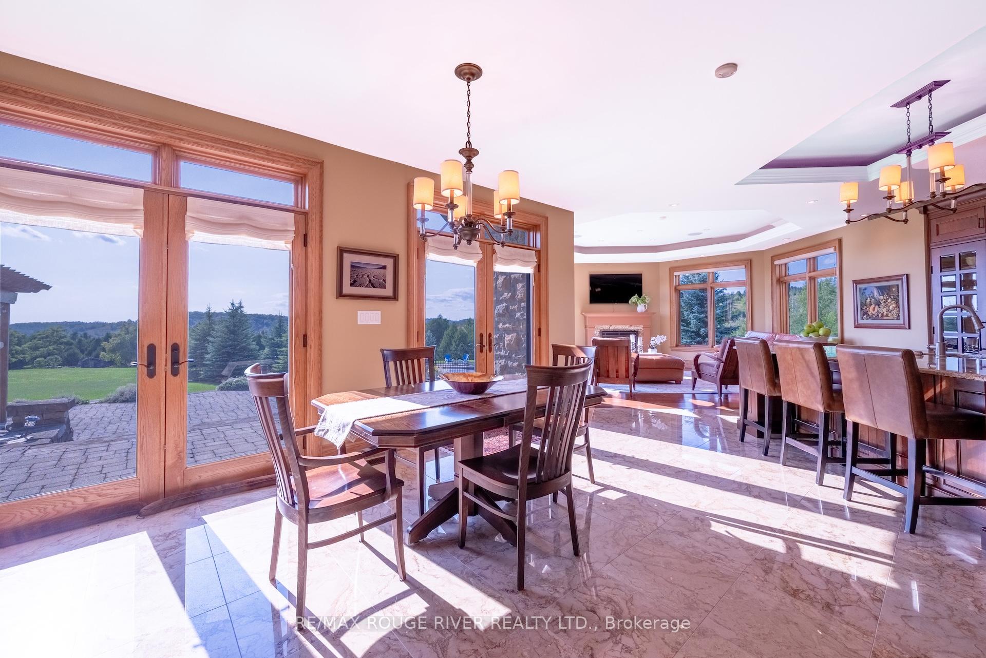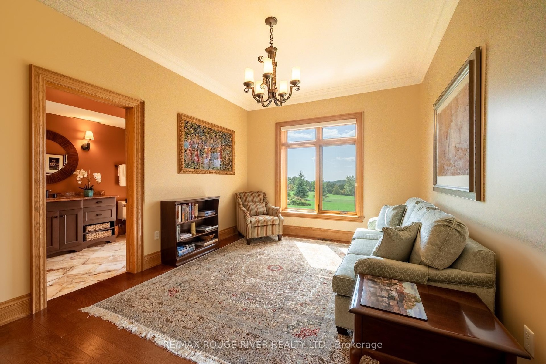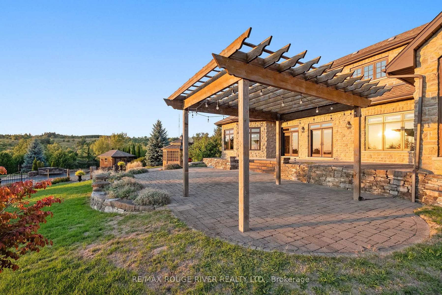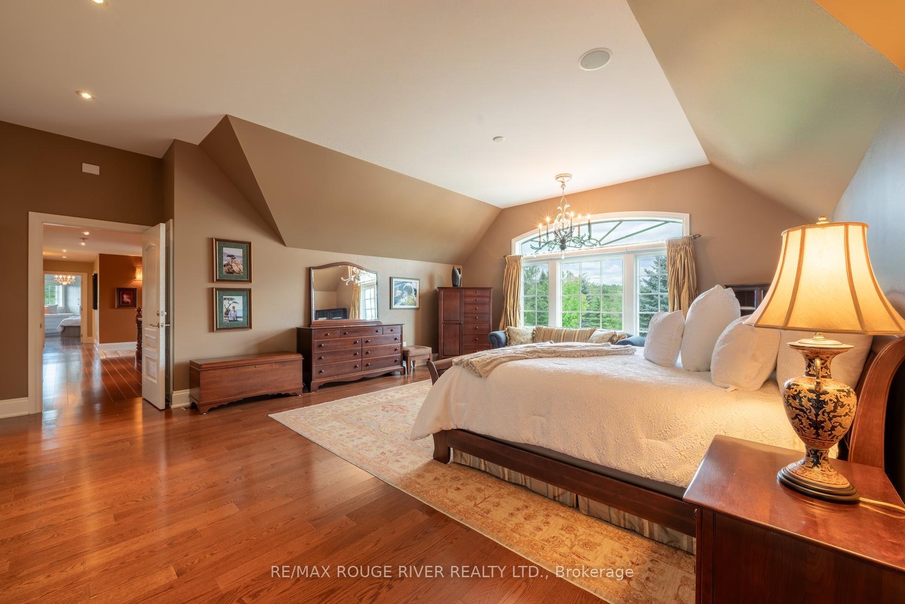 The Finest Country Estate in Northumberland County. Commanding 24 acres of rolling countryside with sweeping 360-degree views, this estate offers a rare combination of architectural mastery and natural beauty, just minutes north of Cobourg. Built with uncompromising craftsmanship, the 11,000 sq. ft. residence (7,500 sq. ft. above grade) blends timeless elegance with modern refinement. From the moment you arrive, the landscape sets the stage with meticulously groomed lawns, orchards, and stone installations by celebrated artisan John Shaw-Rimmington that create a sculpted canvas for outdoor living. At its heart, a resort-style pool framed by expansive stone terraces invites both grand entertaining and quiet retreat, while a private trail system winds through forested grounds to a hilltop lookout with panoramic views of Lake Ontario. Indoors, the residence impresses with a soaring great room 16-foot ceilings, marble columns, and a dramatic fireplace balanced by intimate spaces for everyday living. A Downsview-designed chefs kitchen, butlers pantry, and family room elevate both function and comfort. Seven bedrooms and six baths include a private 2-bedroom suite with it's own garage, while the primary retreat offers a dressing room, spa-inspired ensuite with heated floors, and sauna. Geothermal heating/cooling, an attached 3 car heated garage, a detached 2 car garage/shop and curated designer finishes complete this one-of-a-kind sanctuary. A true estate where architecture, landscape, and lifestyle converge at the highest level.