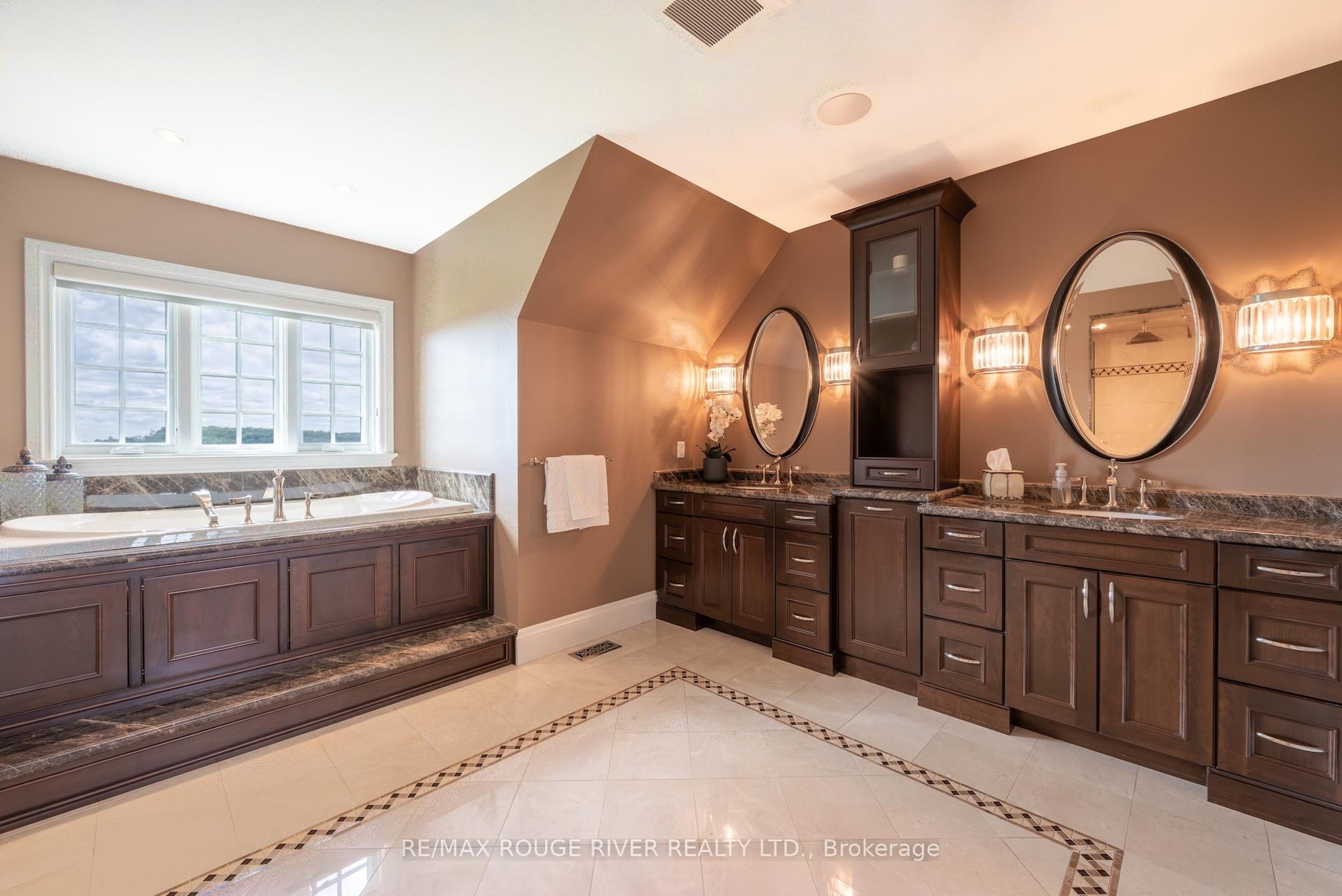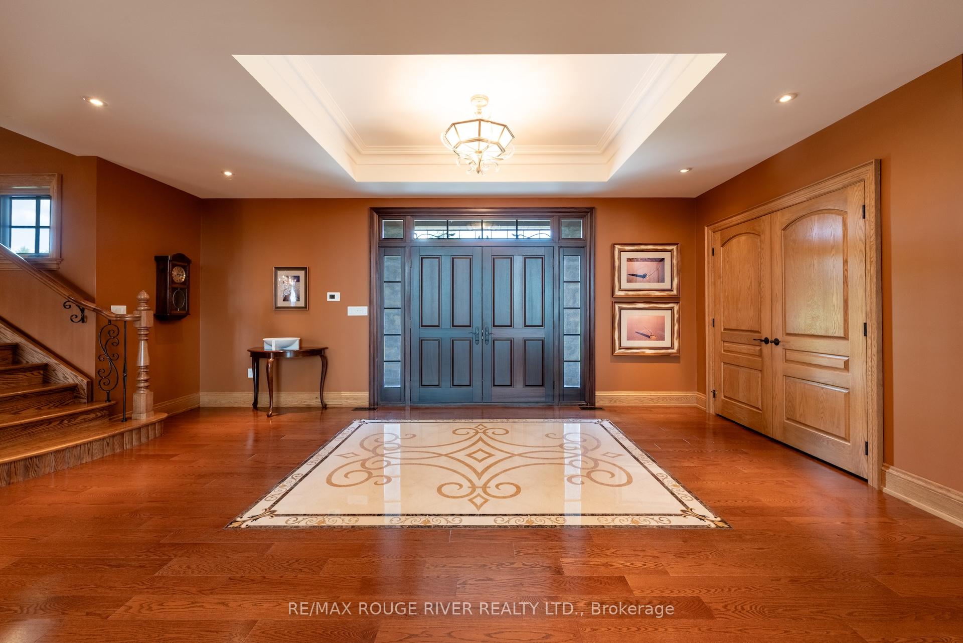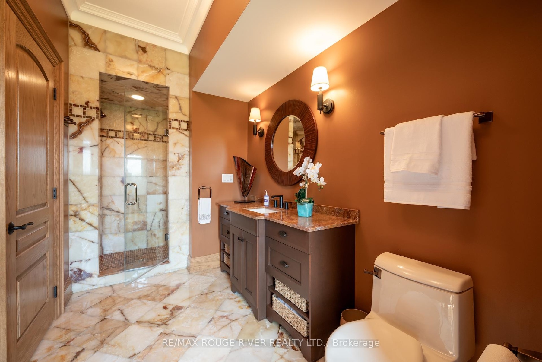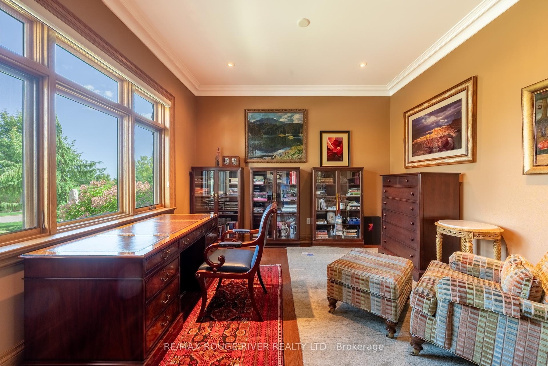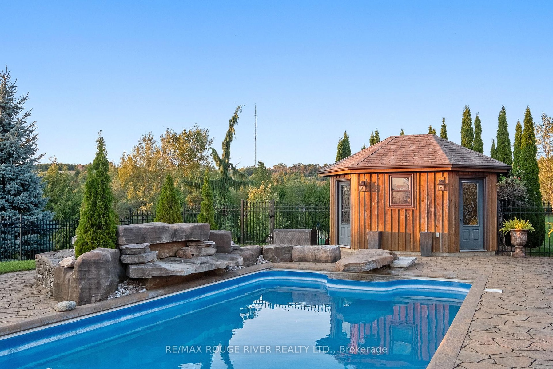 The Finest Country Estate in Northumberland County. Commanding 24 acres of rolling countryside with sweeping 360-degree views, this estate offers a rare combination of architectural mastery and natural beauty, just minutes north of Cobourg. Built with uncompromising craftsmanship, the 11,000 sq. ft. residence (7,500 sq. ft. above grade) blends timeless elegance with modern refinement. From the moment you arrive, the landscape sets the stage with meticulously groomed lawns, orchards, and stone installations by celebrated artisan John Shaw-Rimmington that create a sculpted canvas for outdoor living. At its heart, a resort-style pool framed by expansive stone terraces invites both grand entertaining and quiet retreat, while a private trail system winds through forested grounds to a hilltop lookout with panoramic views of Lake Ontario. Indoors, the residence impresses with a soaring great room 16-foot ceilings, marble columns, and a dramatic fireplace balanced by intimate spaces for everyday living. A Downsview-designed chefs kitchen, butlers pantry, and family room elevate both function and comfort. Seven bedrooms and six baths include a private 2-bedroom suite with it's own garage, while the primary retreat offers a dressing room, spa-inspired ensuite with heated floors, and sauna. Geothermal heating/cooling, an attached 3 car heated garage, a detached 2 car garage/shop and curated designer finishes complete this one-of-a-kind sanctuary. A true estate where architecture, landscape, and lifestyle converge at the highest level.