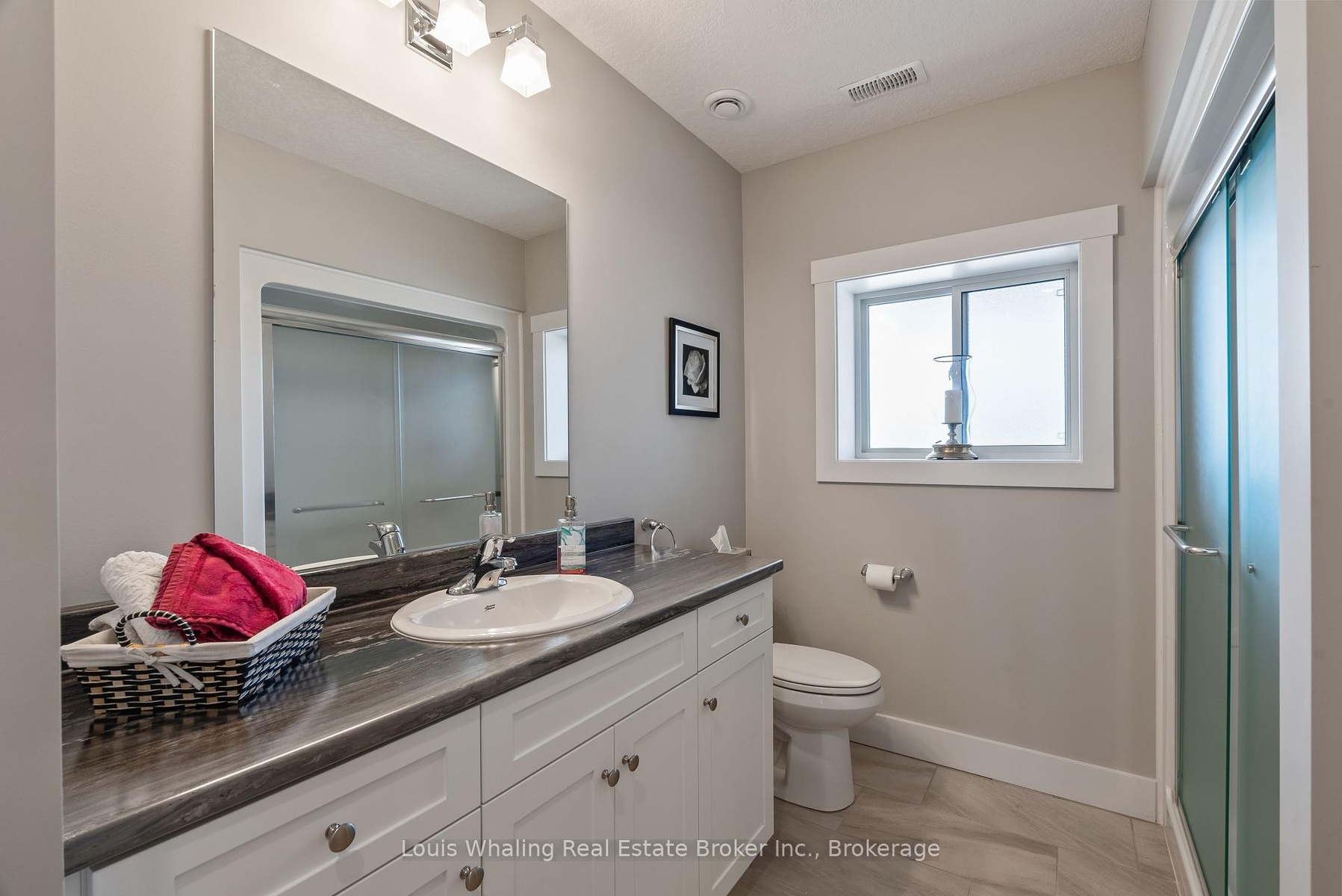 This beautiful 4 year old raised bungalow is located in one of Port Elgin's newer areas and has everything you could want in a home. The open concept main floor has 9' ceilings, kitchen with quartz counter tops and center island, living room with gas fireplace, dining area with patio doors to the rear deck, 2 bedrooms, 2 full bathrooms & primary bedroom has an ensuite and walk in closet. The lower level consists of a large bright rec room, 2 additional bedrooms, 3rd full bath, entrance from the garage to the basement and a laundry area. The home is nicely landscaped, has a covered deck and the rear yard has a garden shed, fire pit, large stone patio and is fully fenced.