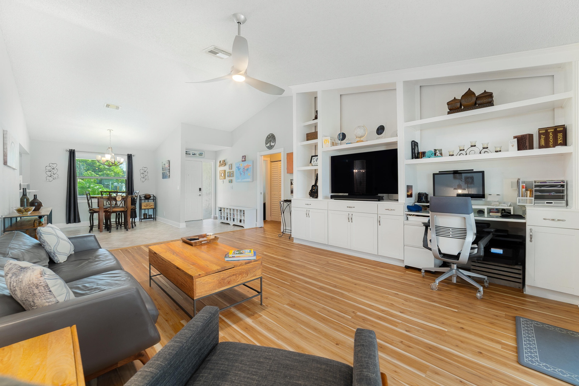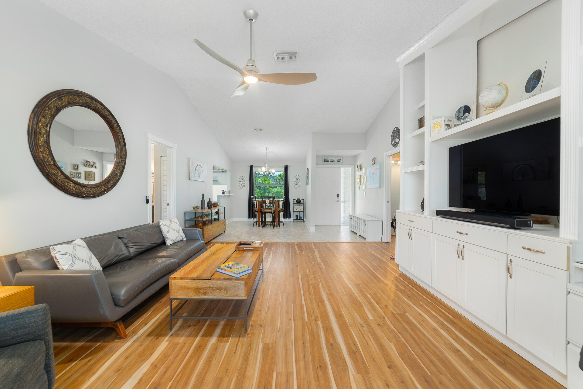 DescriptionWelcome home to this immaculate 2-bedroom 2-bathroom opportunity located in the highly sought-after, low HOA community of Jupiter Village. As soon as you enter, you immediately notice the soaring vaulted ceilings, abundant natural light and expansive lake views. ROOF 2020 and A/C 2023! The home boasts an updated kitchen (2022) with stainless steel appliances, modern white cabinetry, a wine fridge, and quartz countertops. The property also features tile flooring in the kitchen and dining areas, with wood-themed flooring in the living room and bedrooms. The primary suite offers tons of space, high ceilings, lake views with an updated on suite bath with dual sinks, subway tile finishes, and mosaic tiling. The secondary bedroom also offers a great view of the lake and is adjacent to the